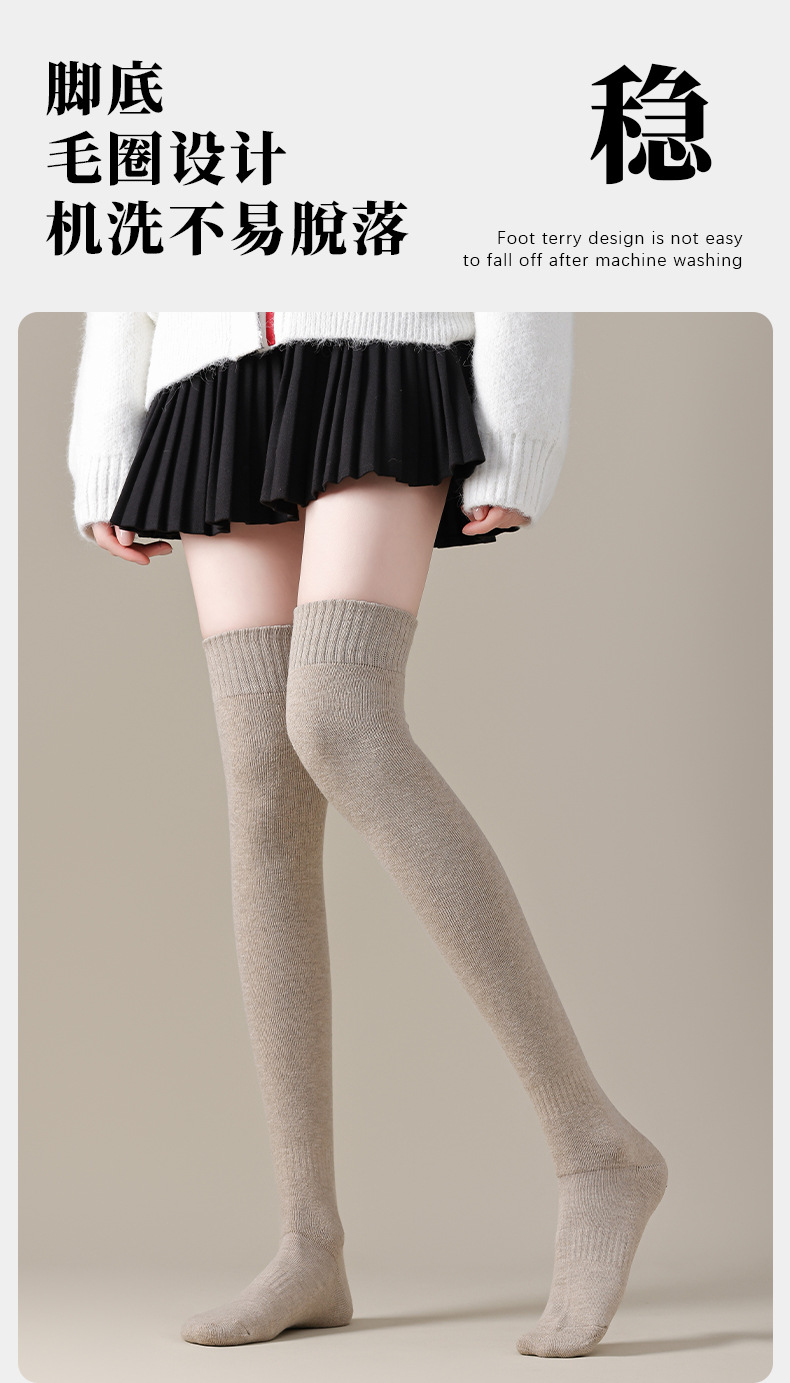 【买一送一】大腿过膝袜子女秋冬季加绒加厚保暖护膝长袜子纯棉长筒袜
