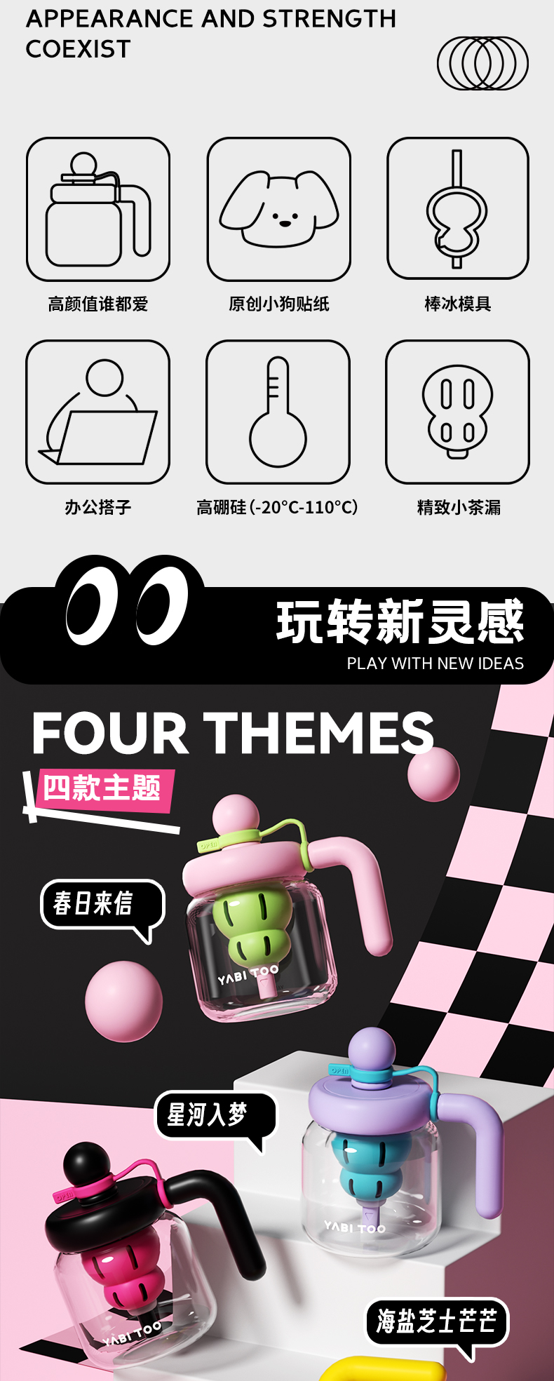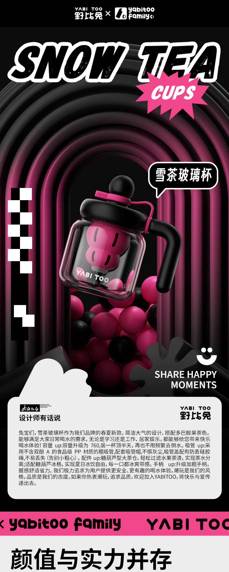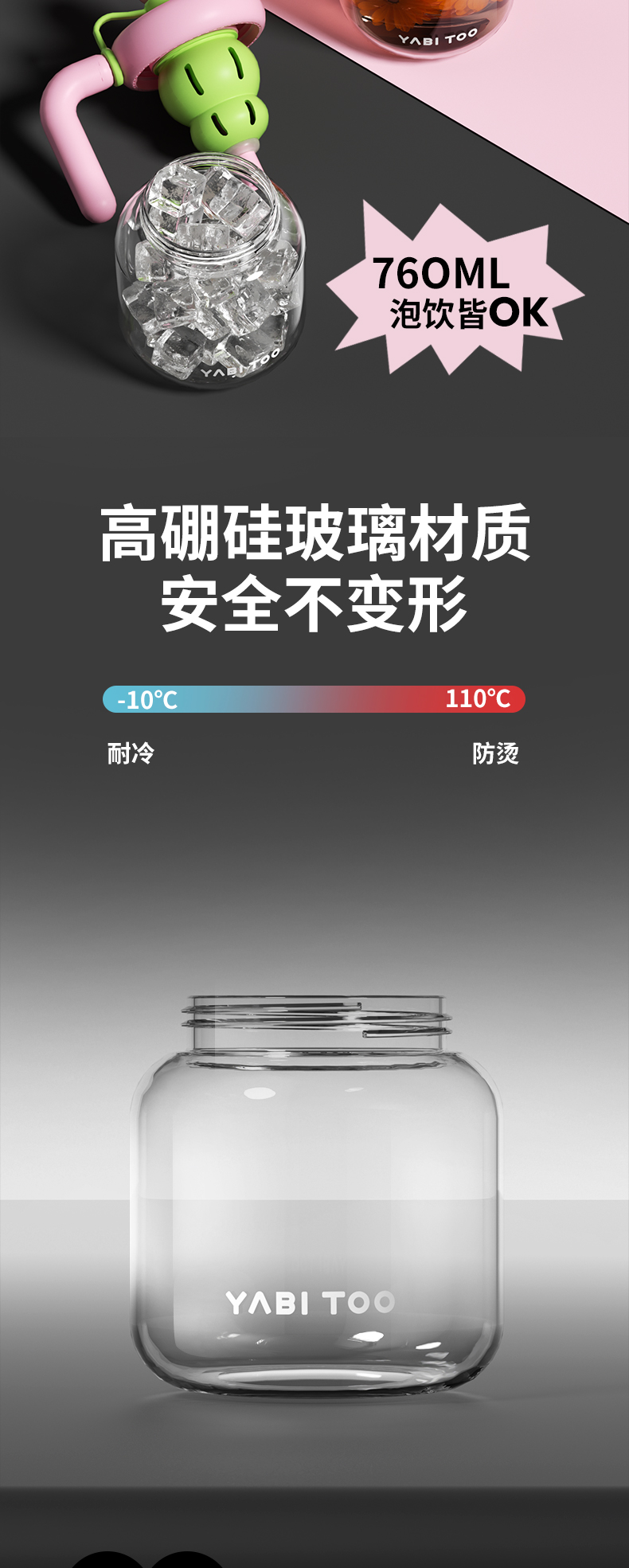 A-YBT-092/093/095 野比兔 雪茶 高硼硅玻璃杯760ML