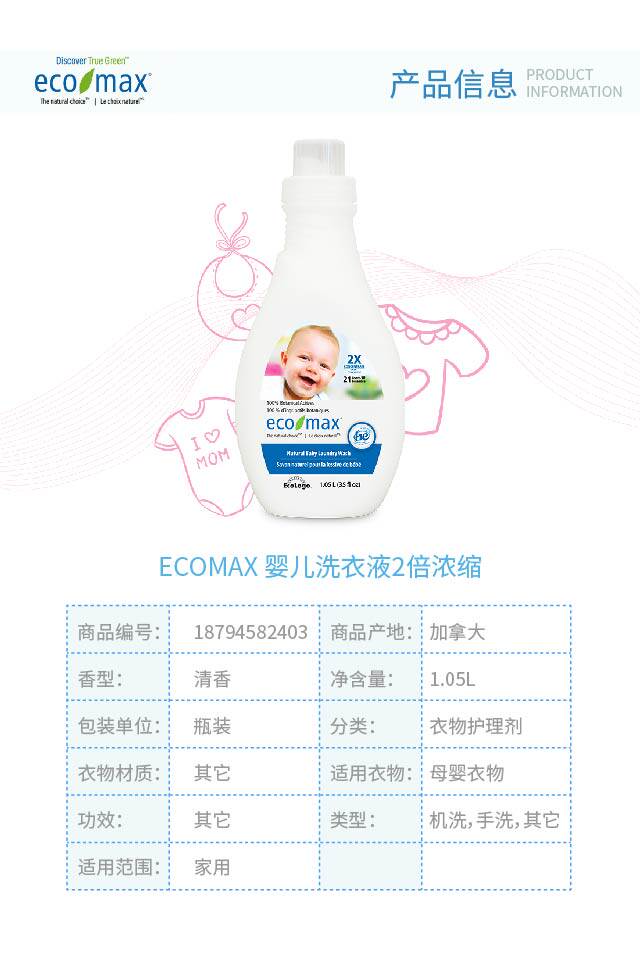 ECOMAX 天然婴儿洗衣液(2倍浓缩) 1.05L-柔和抗敏