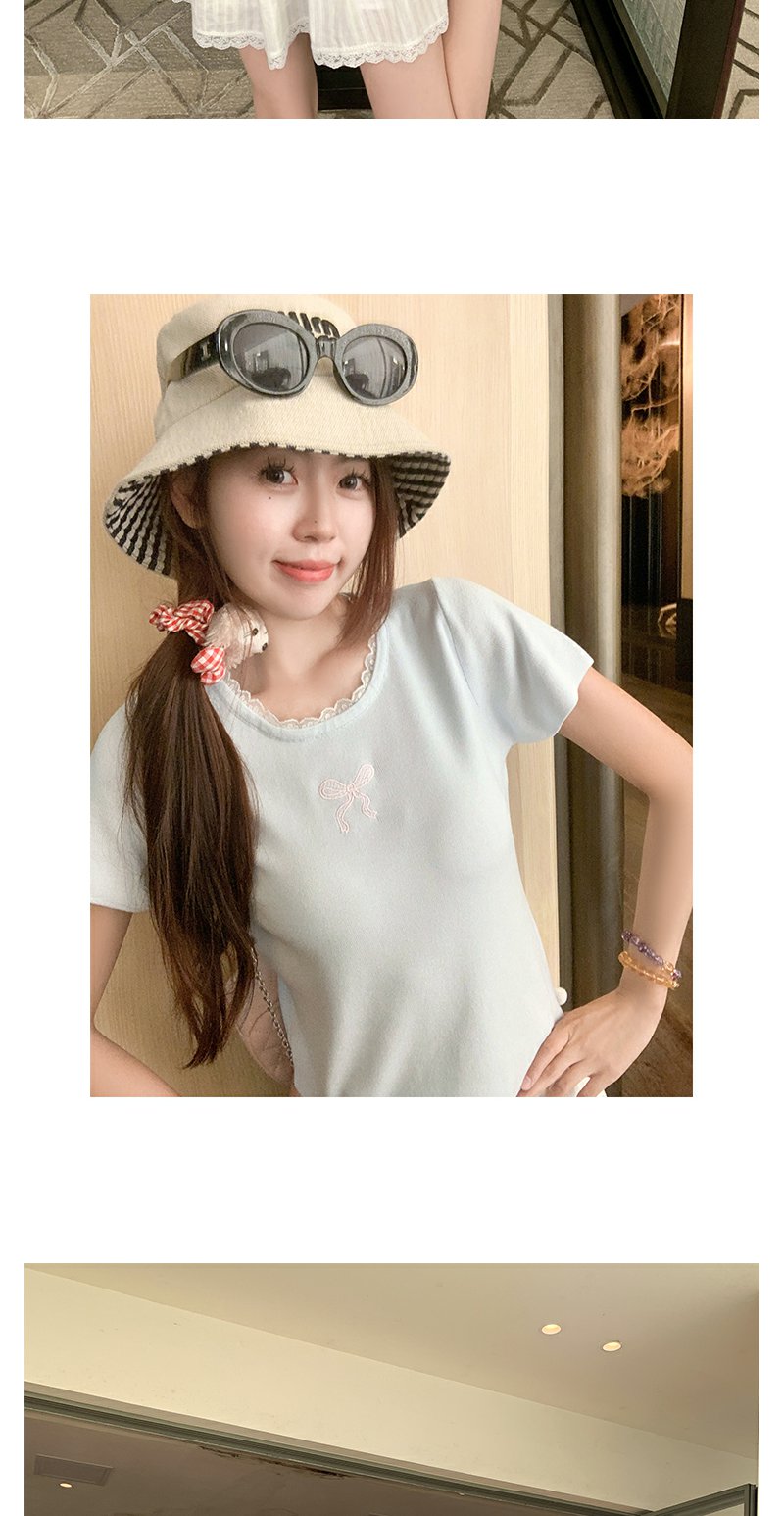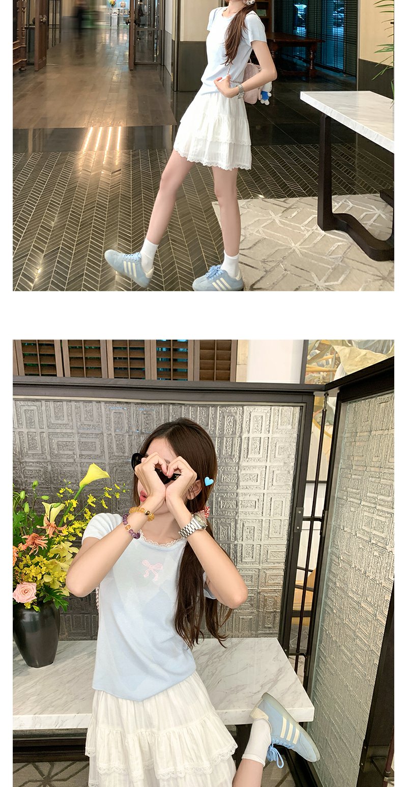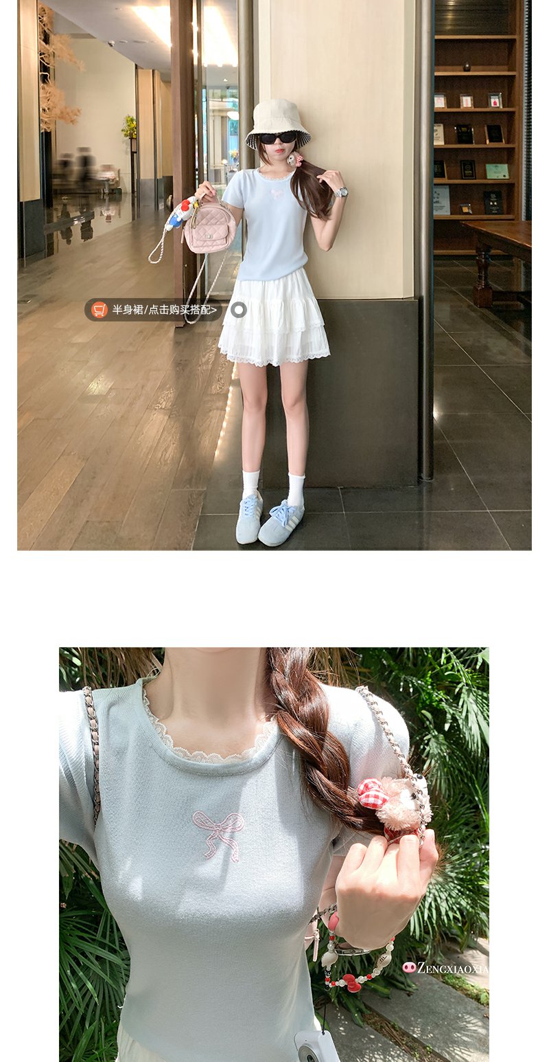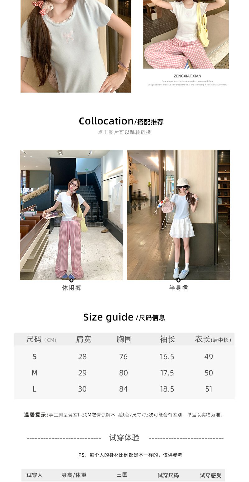 <曾小咸推荐>韩版甜美蕾丝花边蝴蝶结短袖T恤