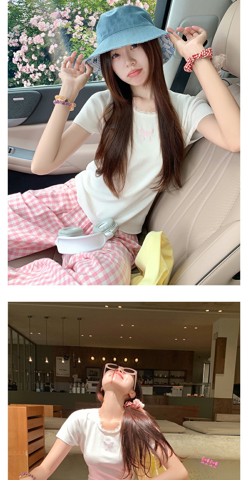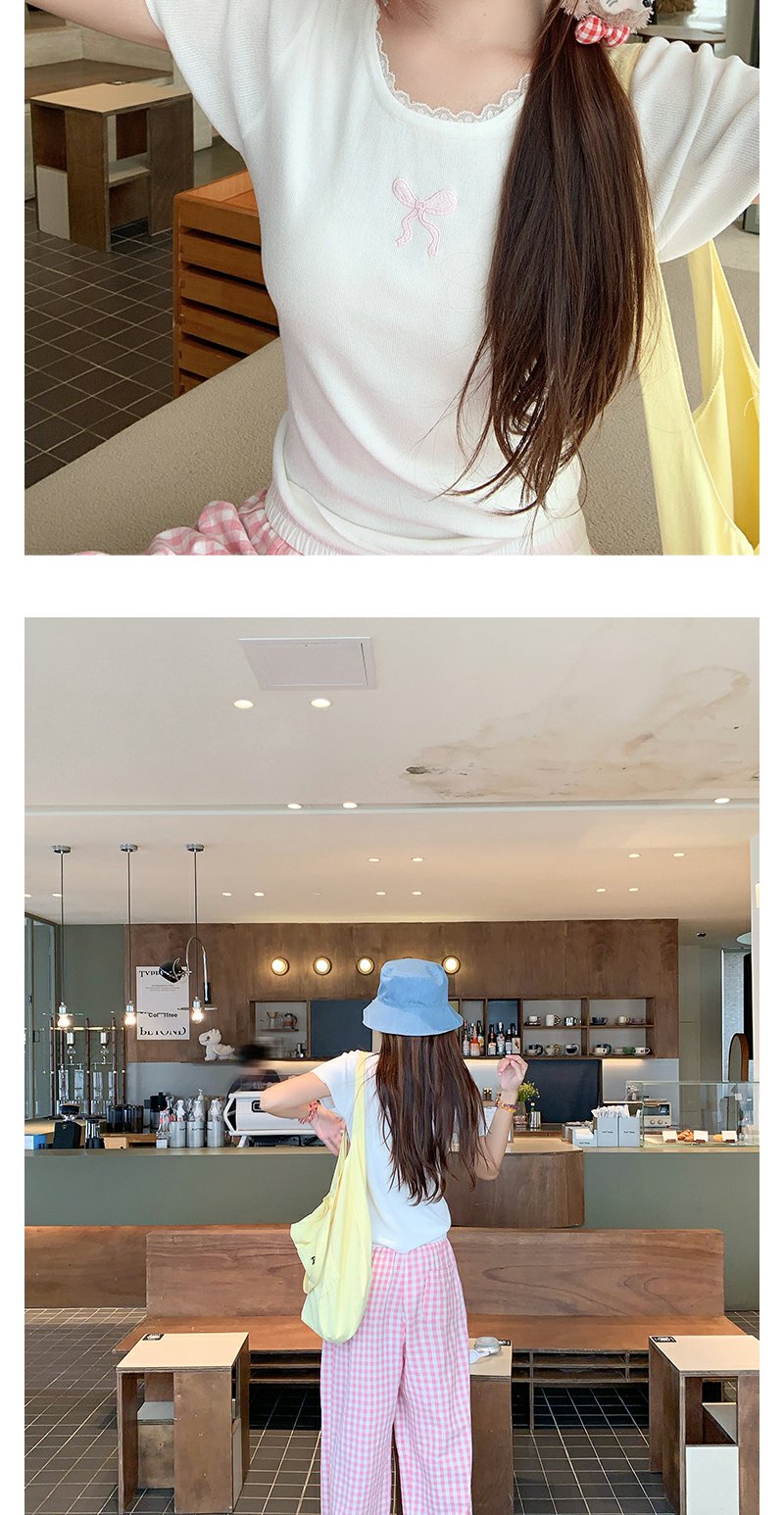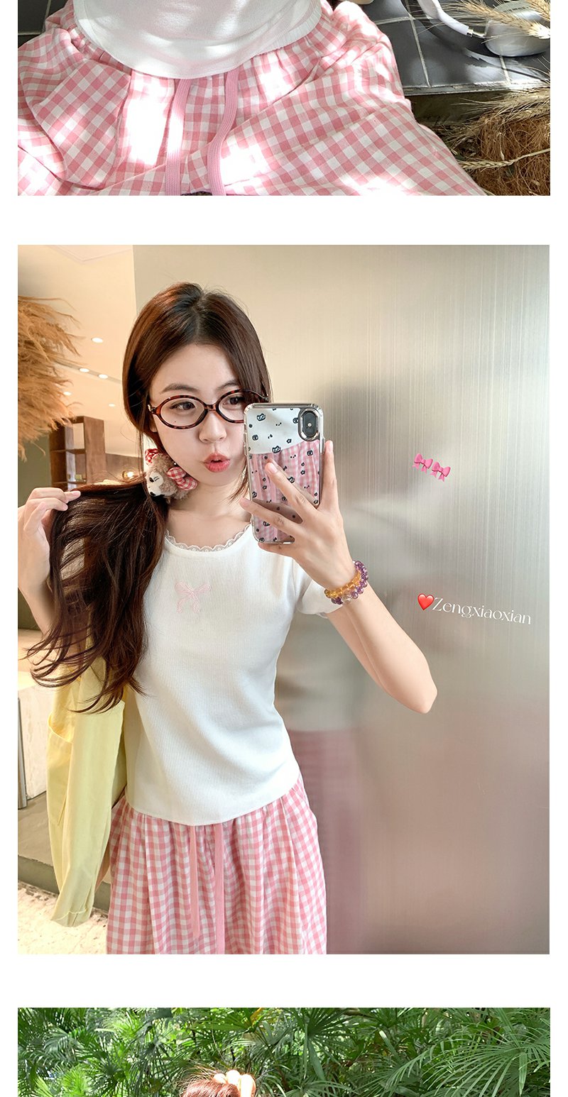 <曾小咸推荐>韩版甜美蕾丝花边蝴蝶结短袖T恤