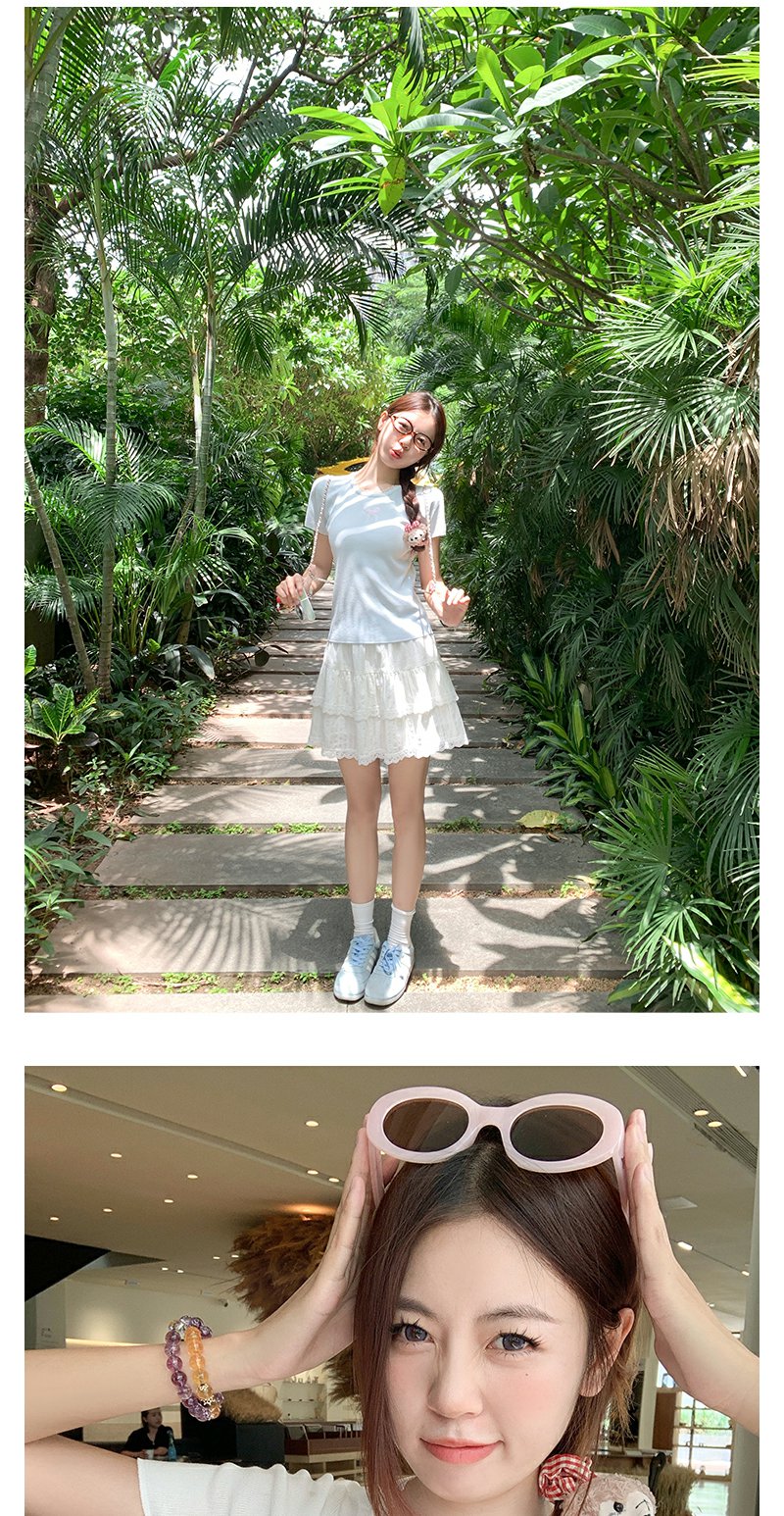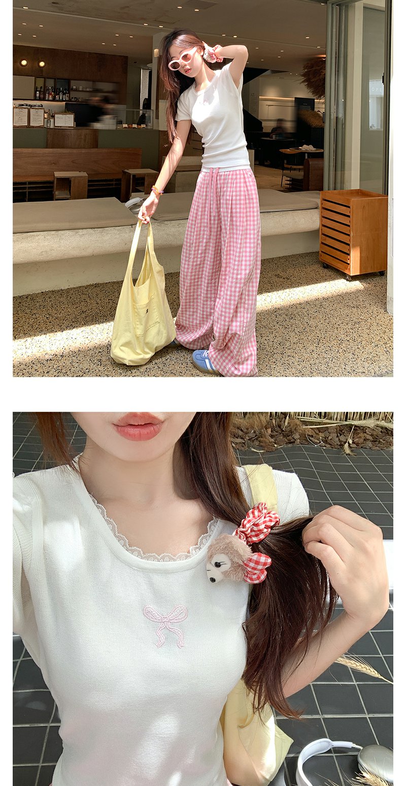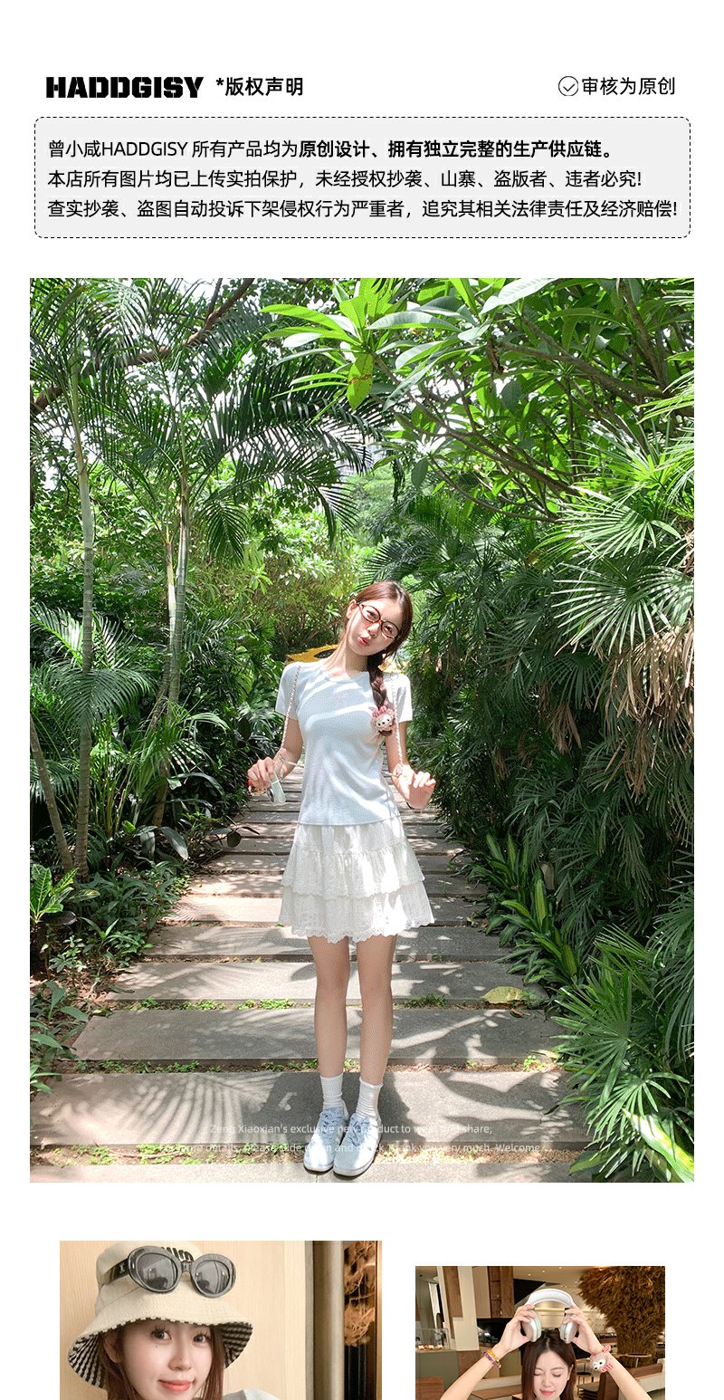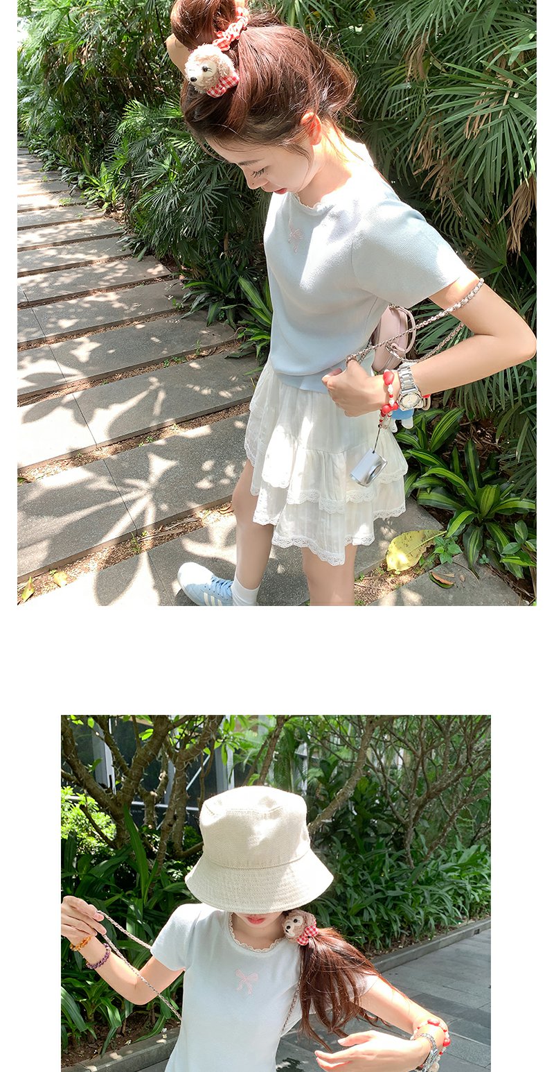 <曾小咸推荐>韩版甜美蕾丝花边蝴蝶结短袖T恤