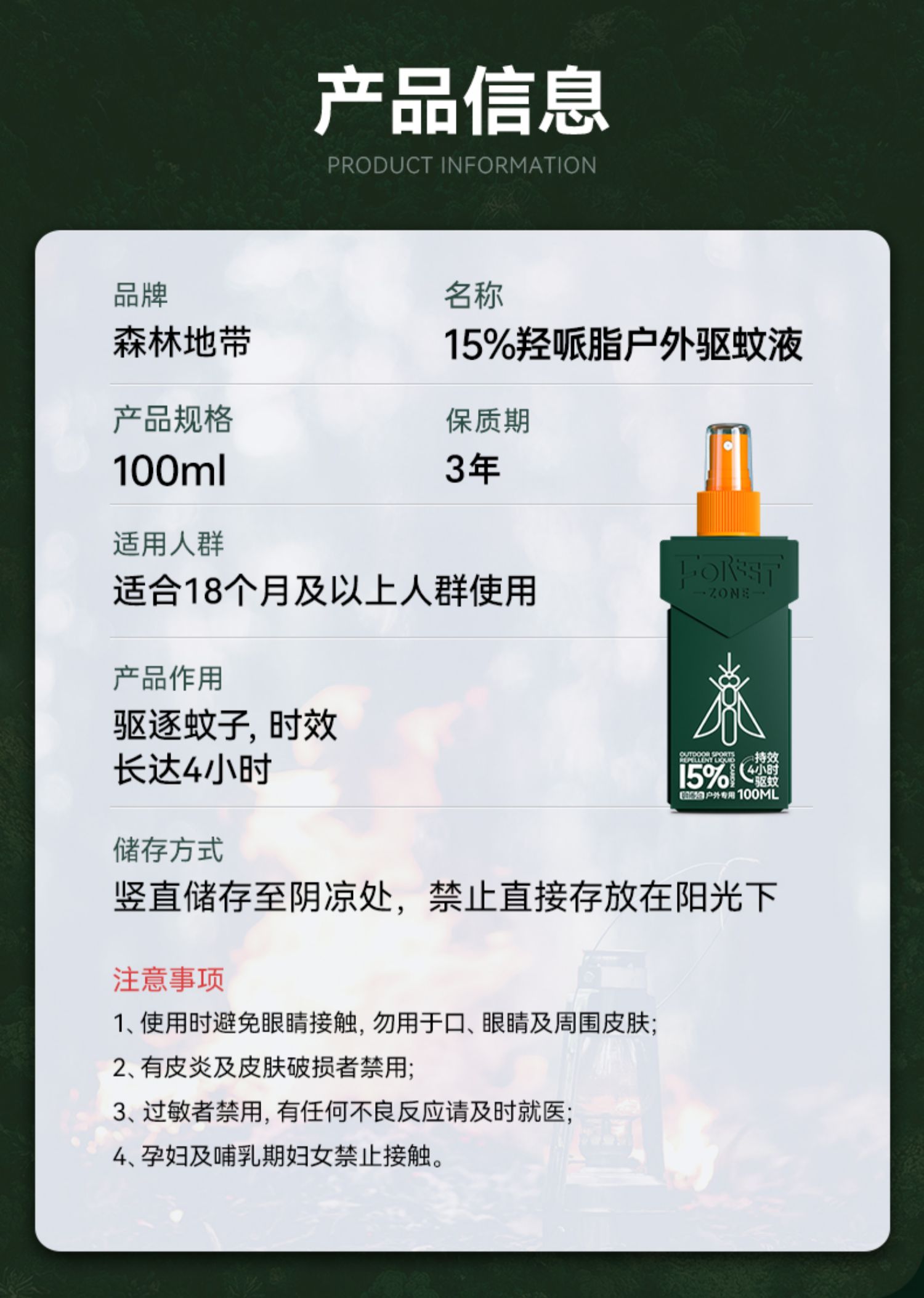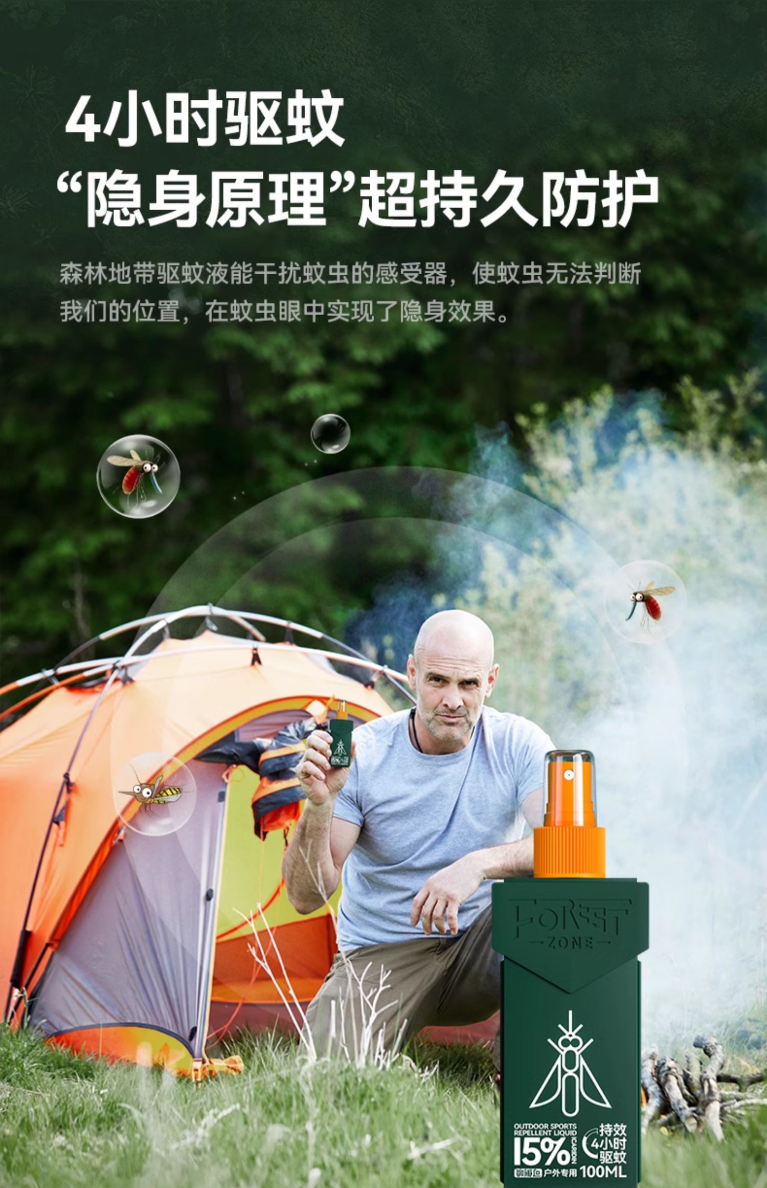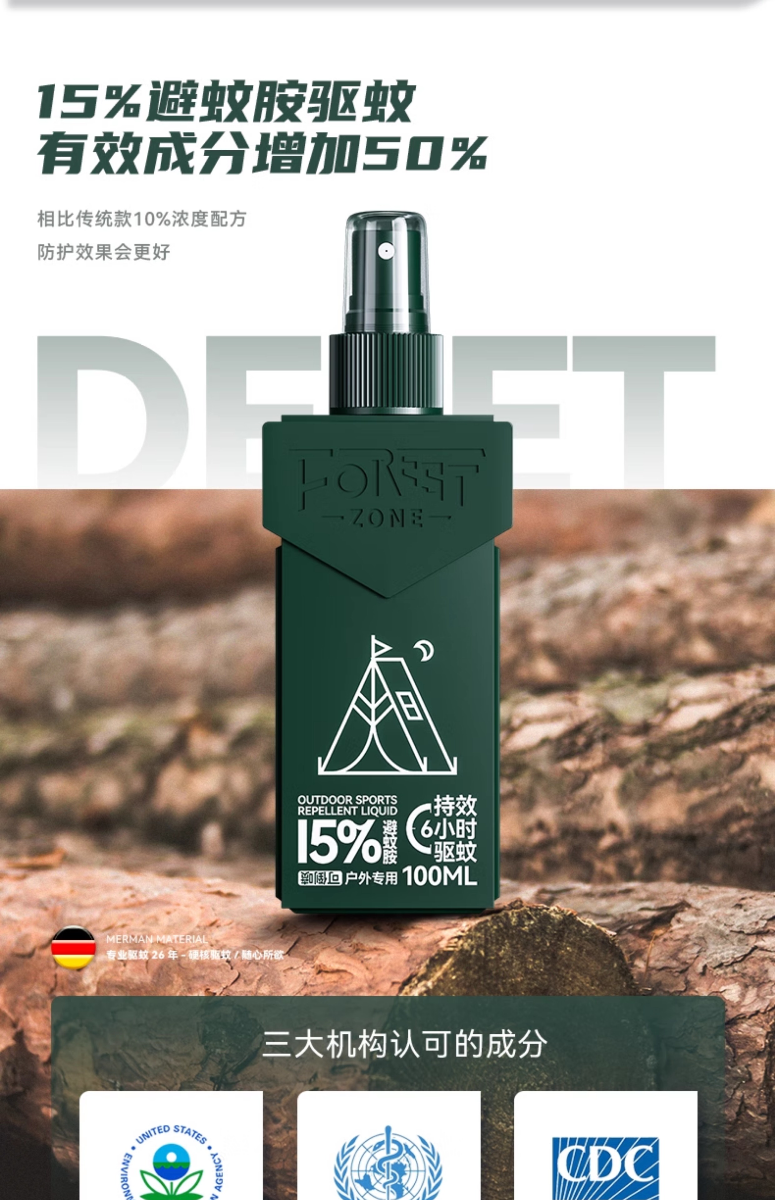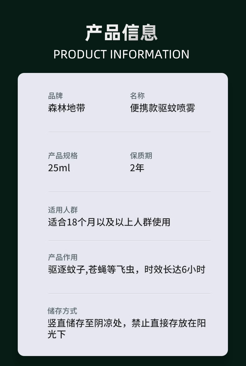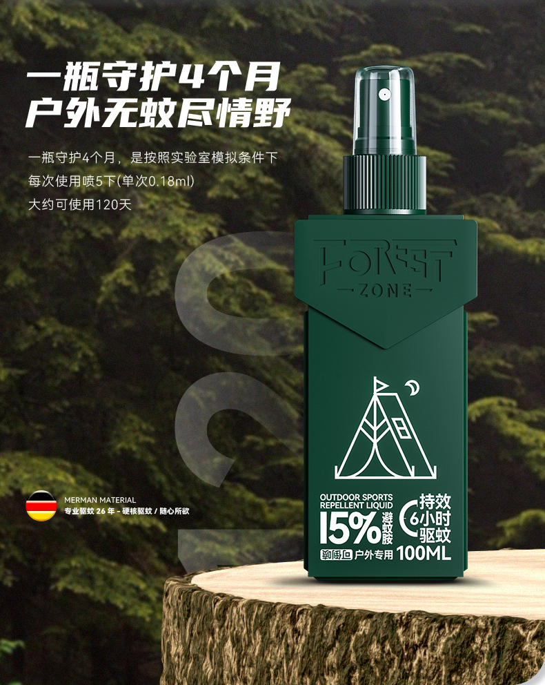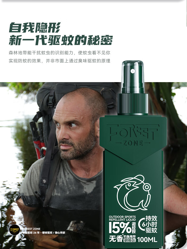 【森林地带 驱蚊喷雾】“德爷”在亚马逊雨林亲测 硬核驱蚊随心所欲 可直接喷涂在皮肤上 长效驱蚊 对皮肤没有刺激性