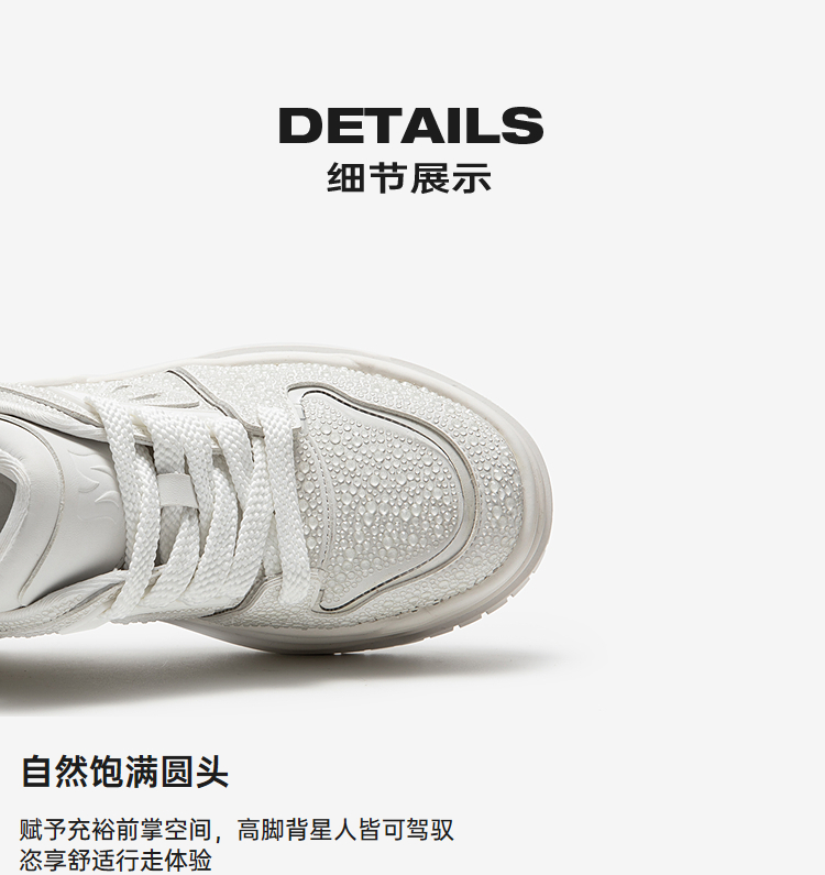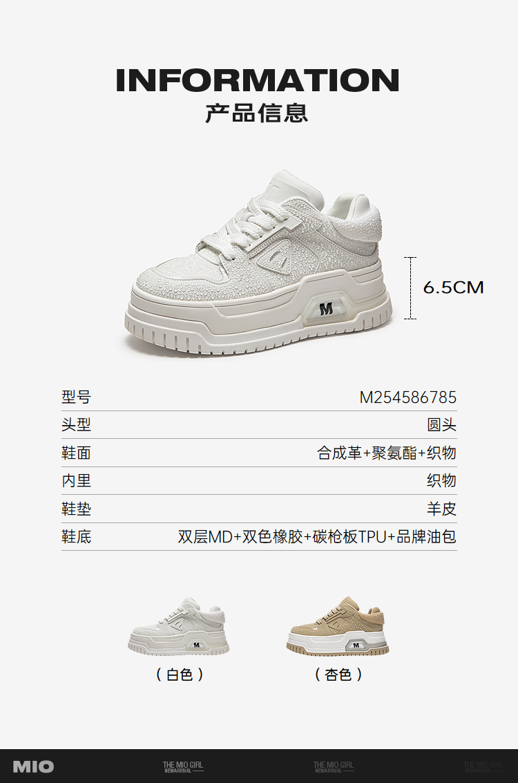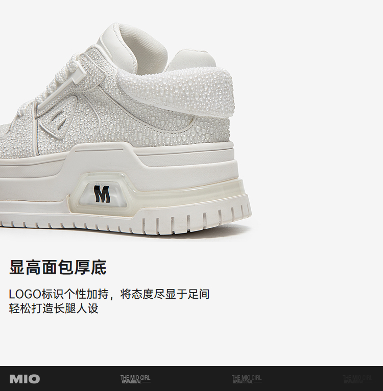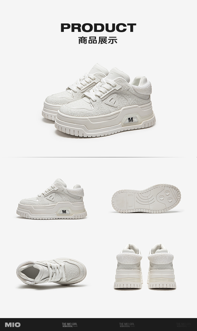 MIO米奥休闲板鞋女水滴设计厚底增高6.5松糕小白鞋M254586785