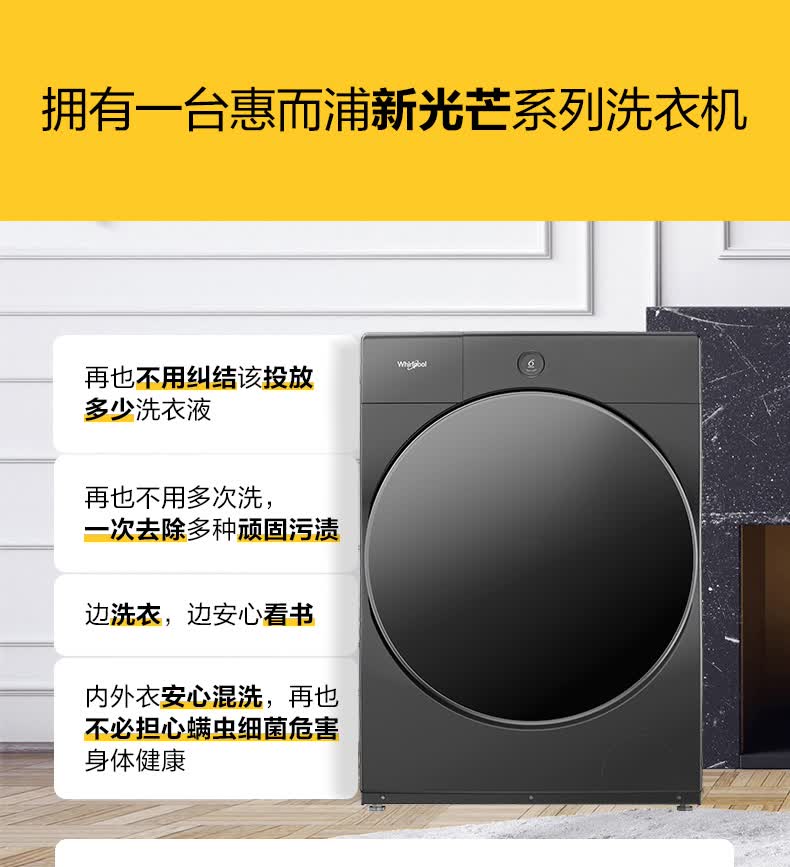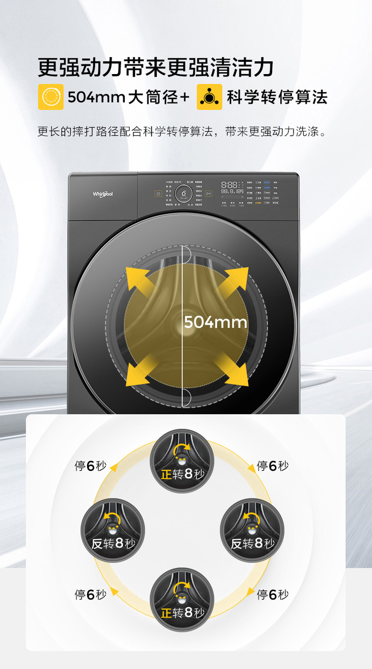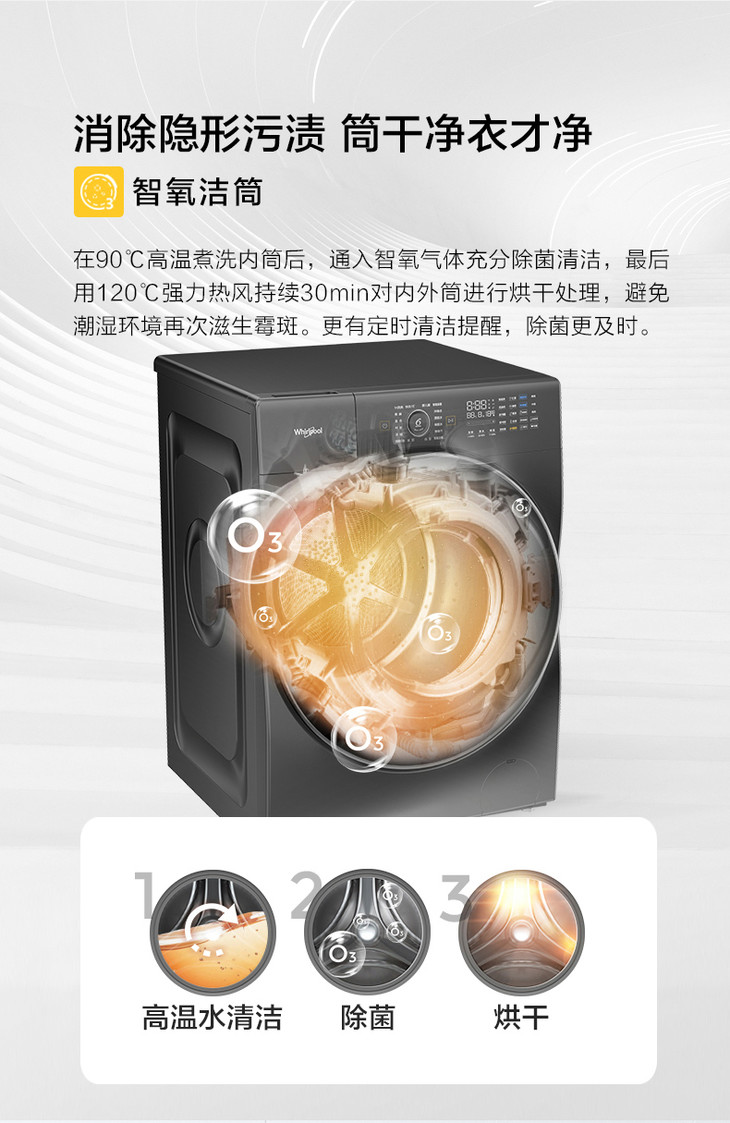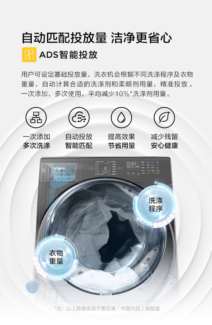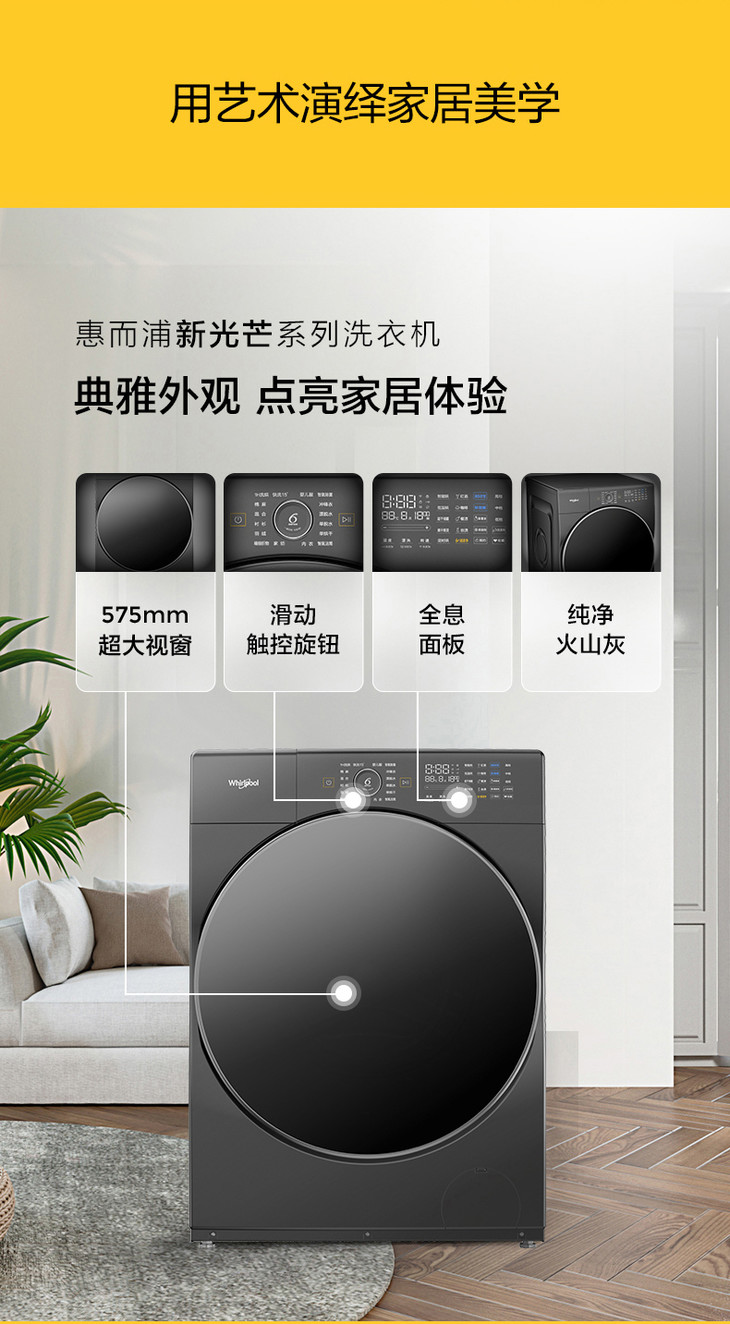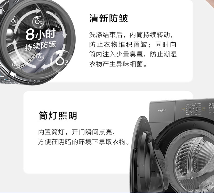 惠而浦WDD100834AORT新光芒光芒10公斤全自动直驱滚筒洗衣机洗烘洗衣机
