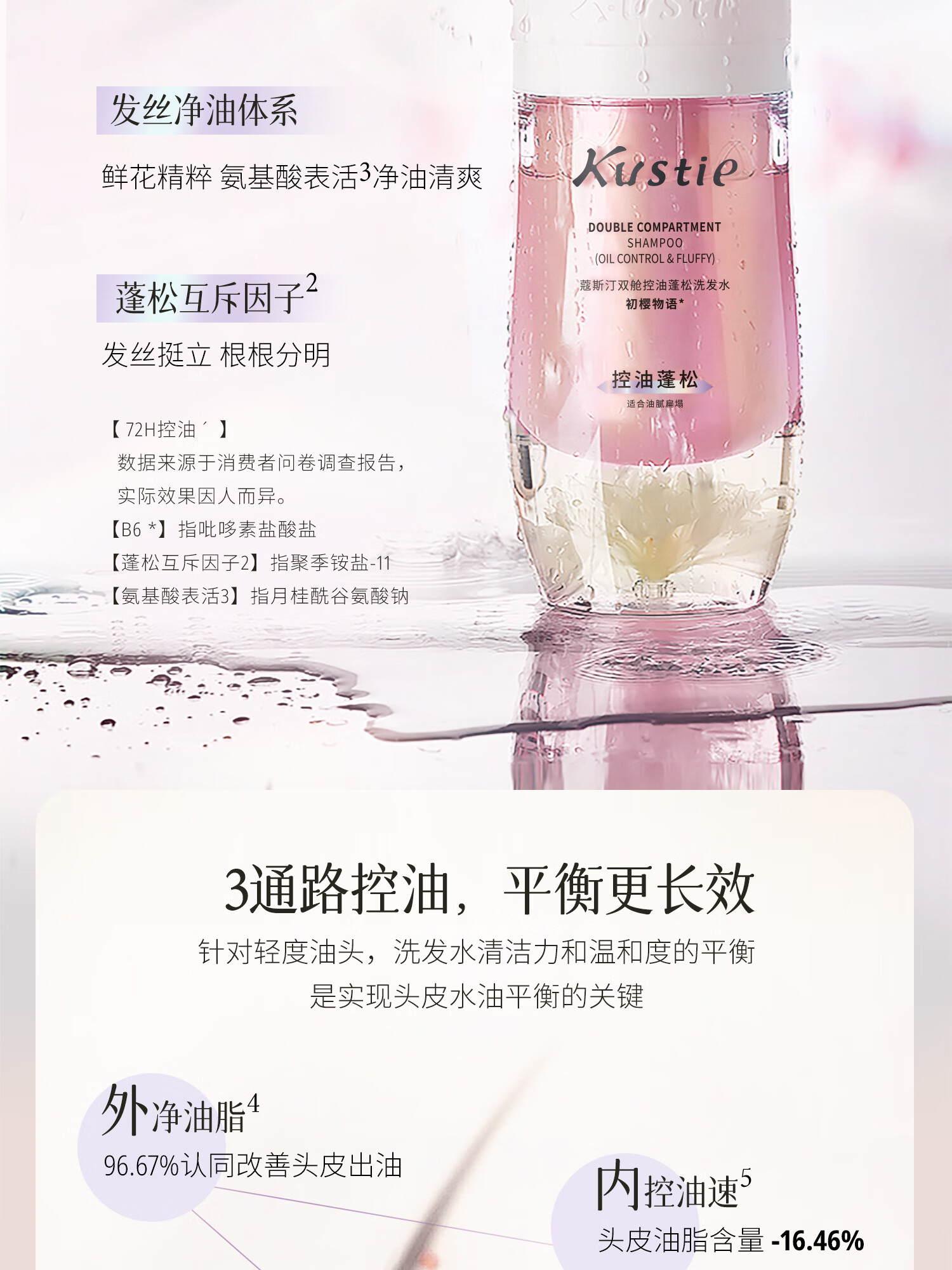 蔻斯汀樱花双舱花瓣控油蓬松洗发水500ml
