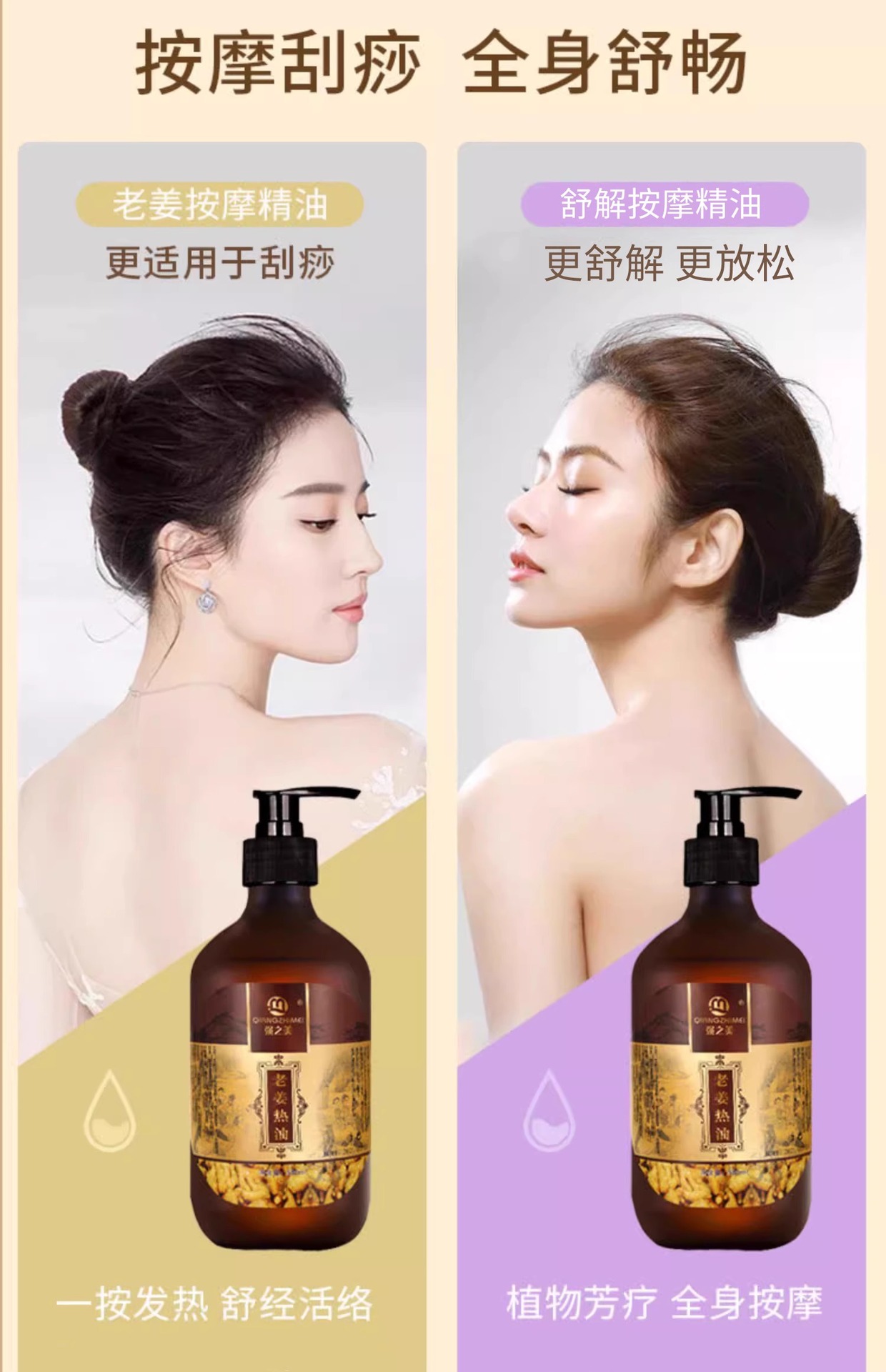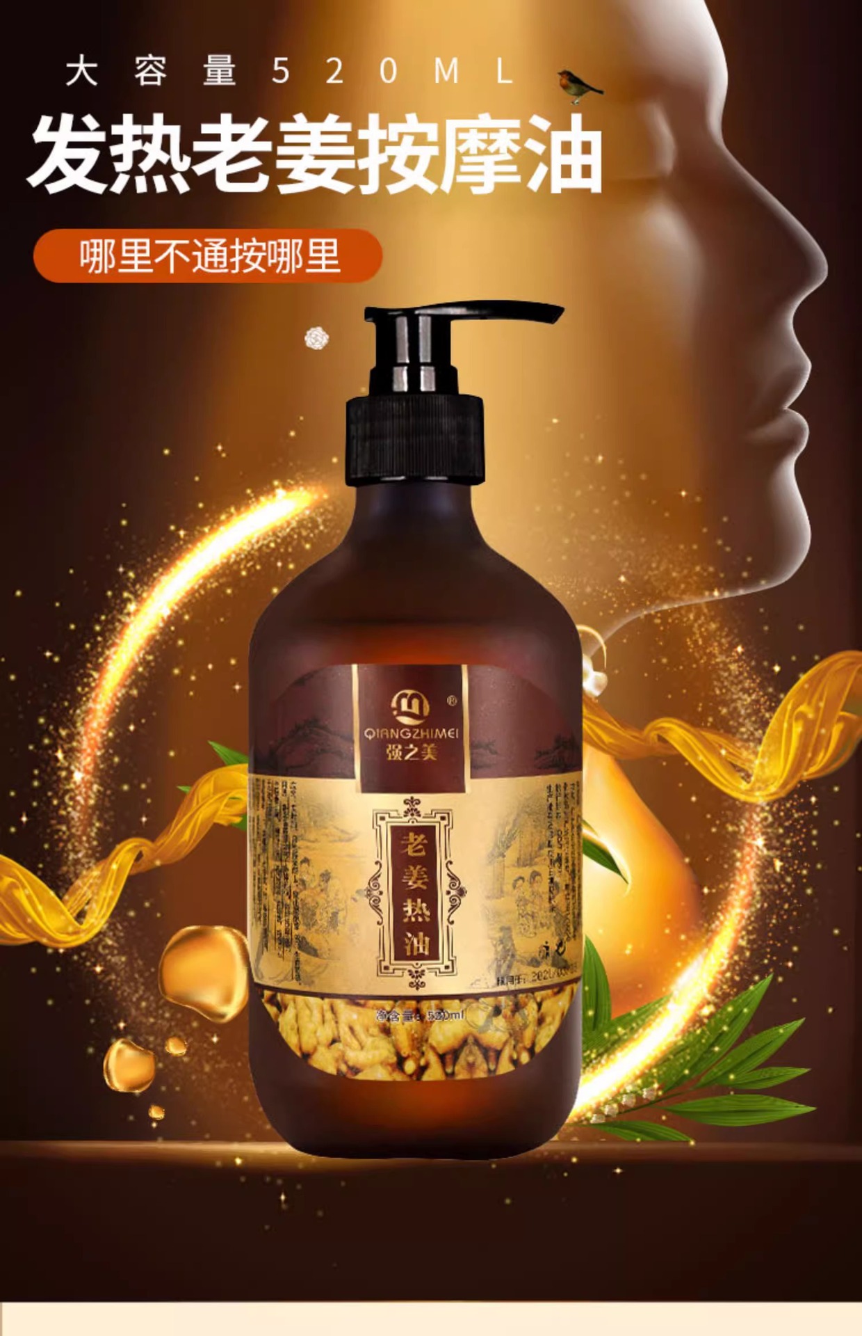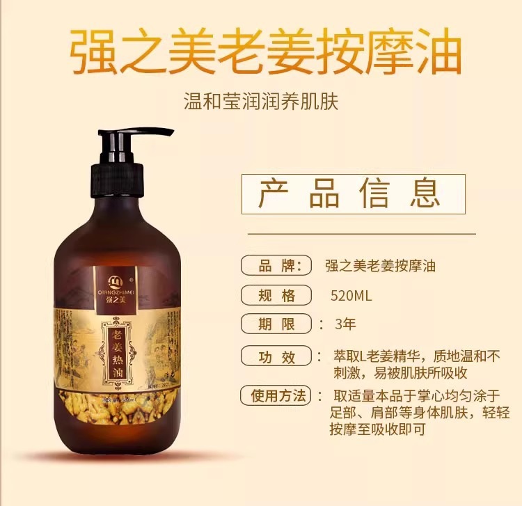 老姜精油发热疏通经络刮痧开背推拿舒筋活络肩颈全身体按摩生姜油