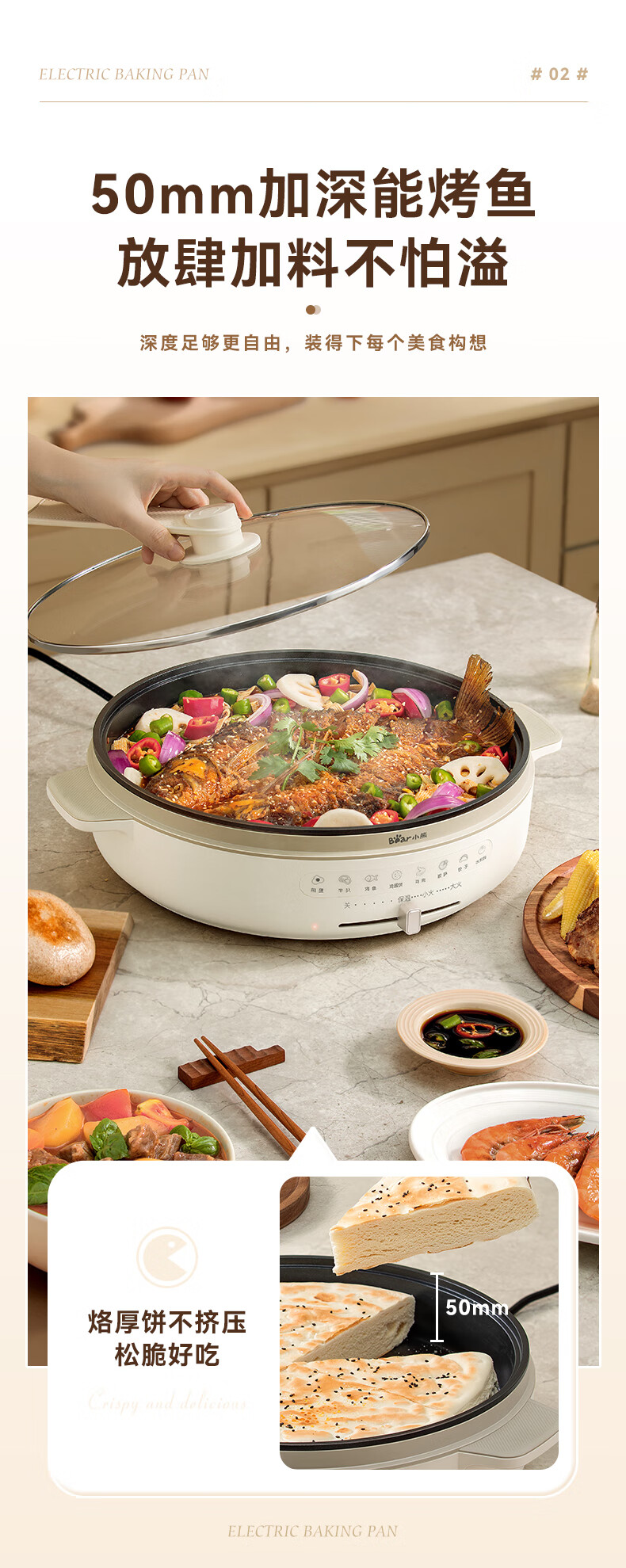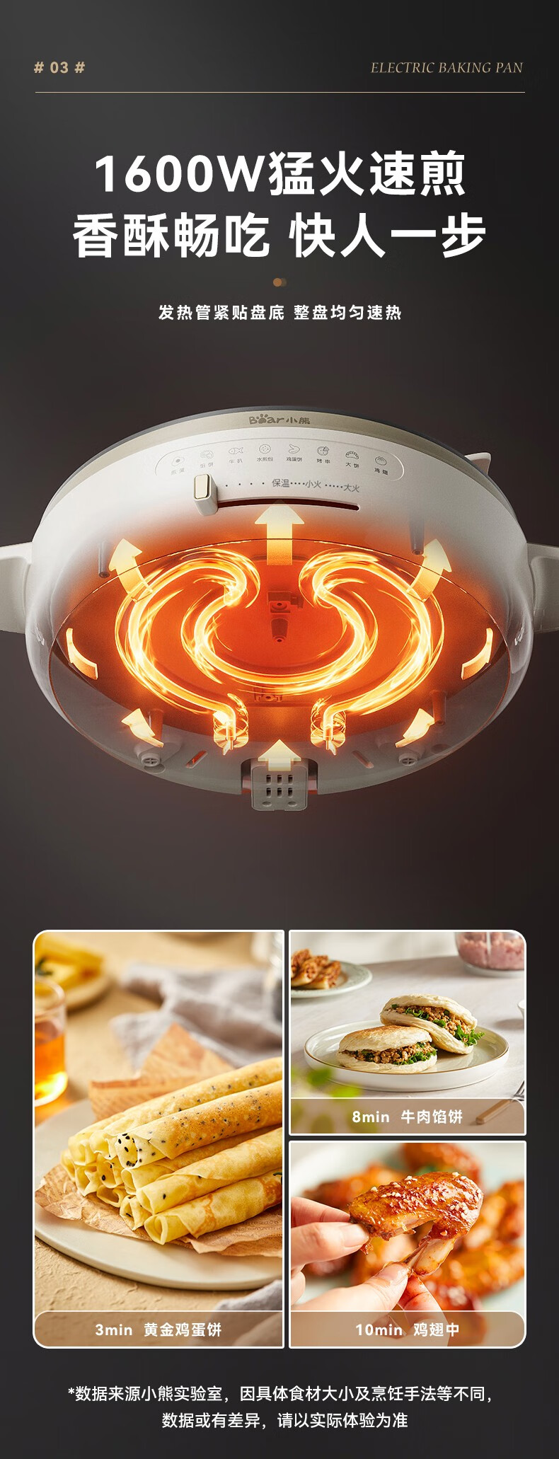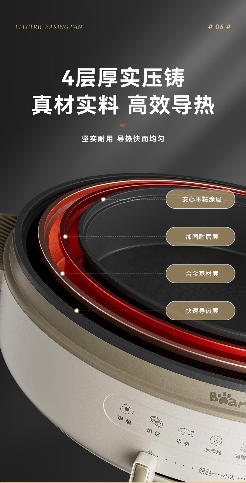 小熊(Bear)电饼铛电饼档家用单面煎饼锅加大烙饼锅早餐机蛋饼机煎烤机多功能3档火力 50mm加深 DBC-H16U5 淘气