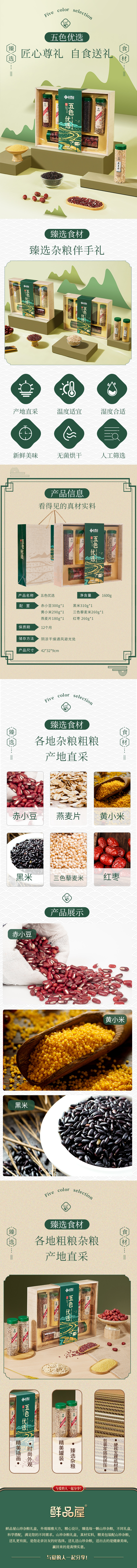 鲜品屋-1.6kg五色优选礼盒 杂粮礼盒粥米八宝米燕麦片黄小米玉米糁