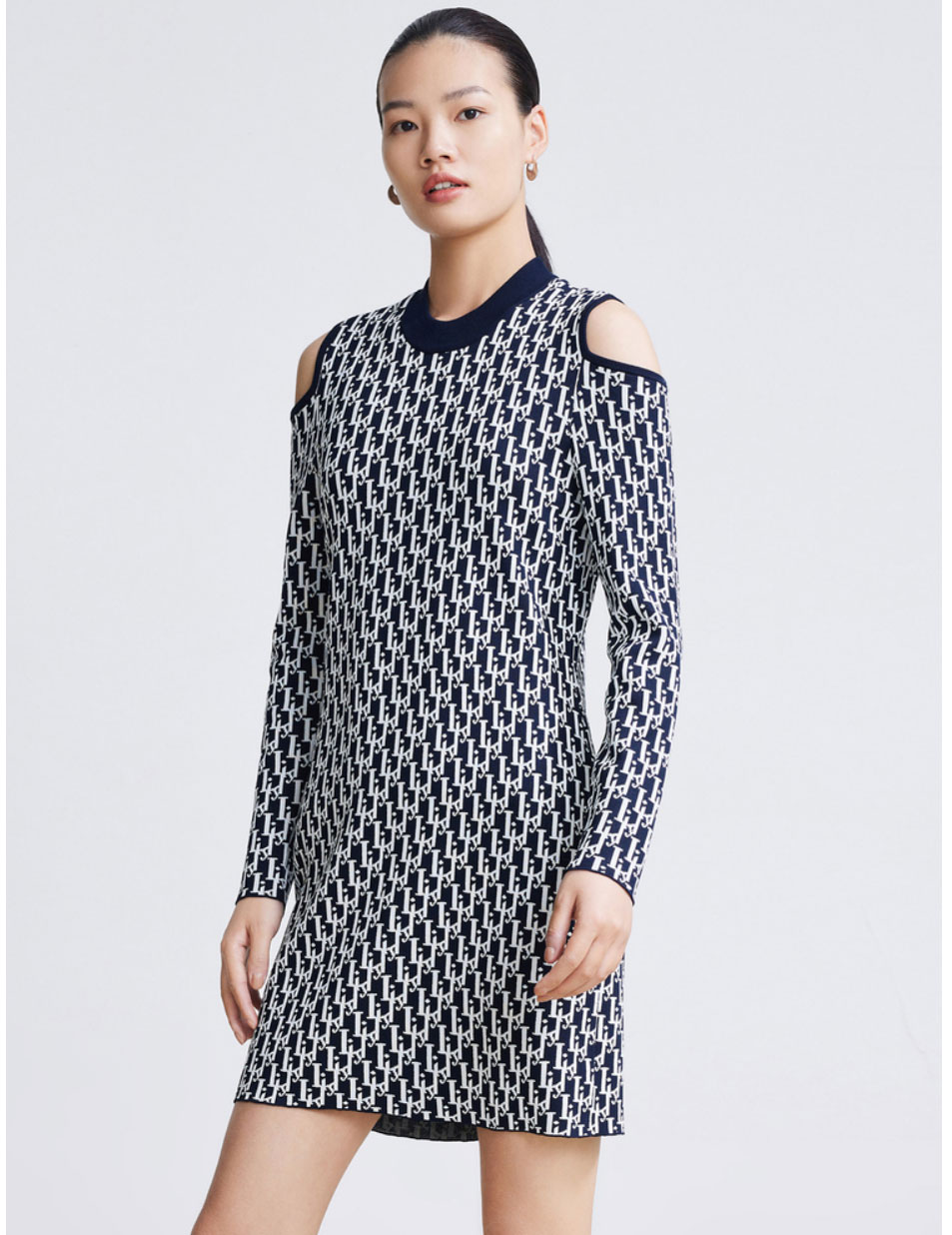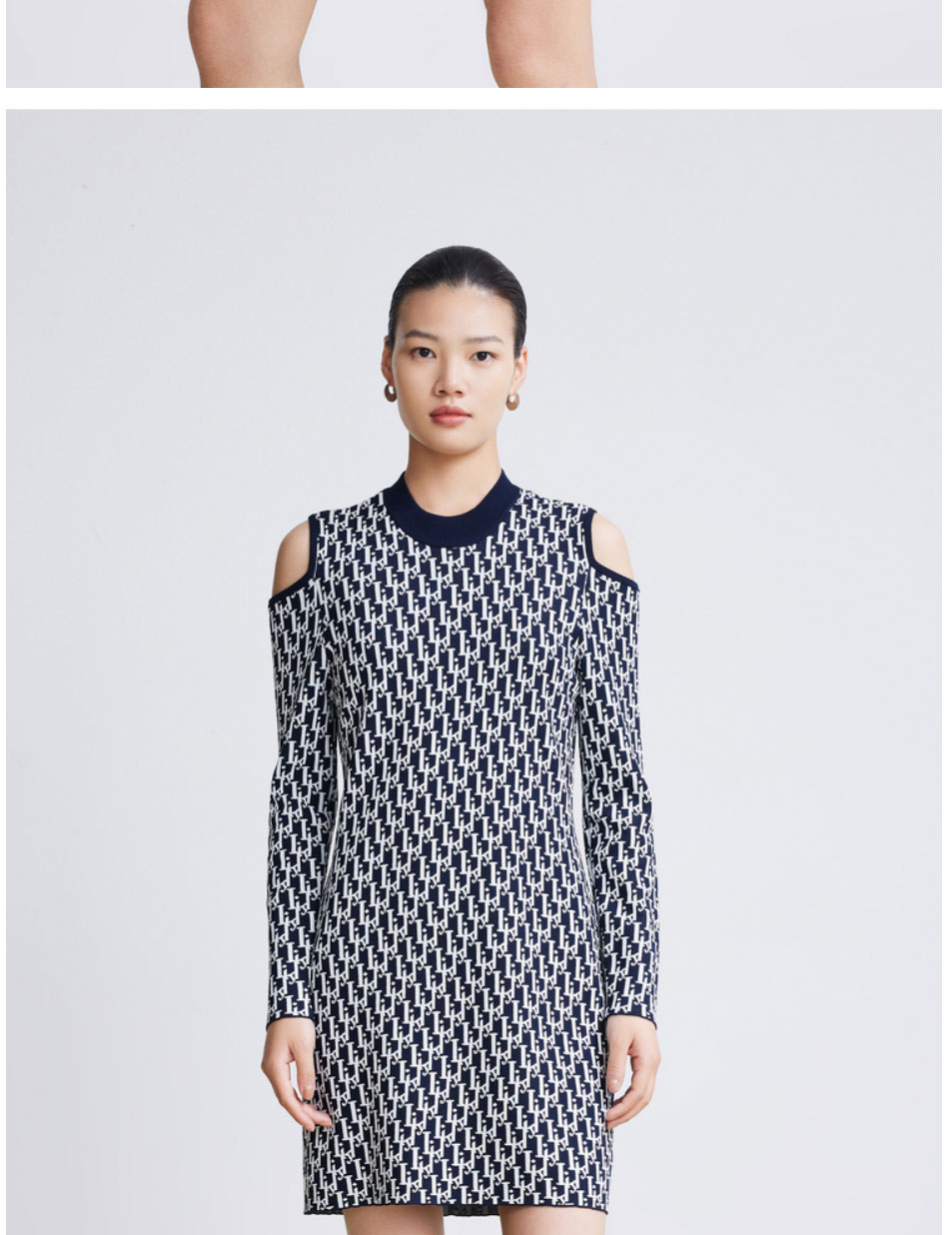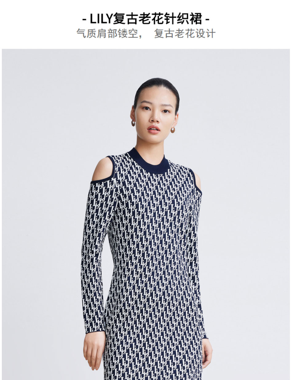 LILY2022春新款女装复古老花时尚镂空修身针织连衣裙122120T7321