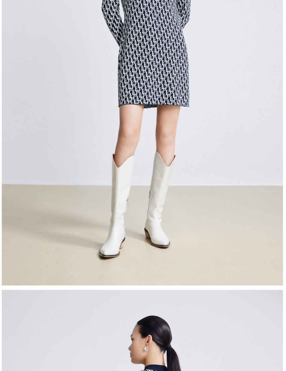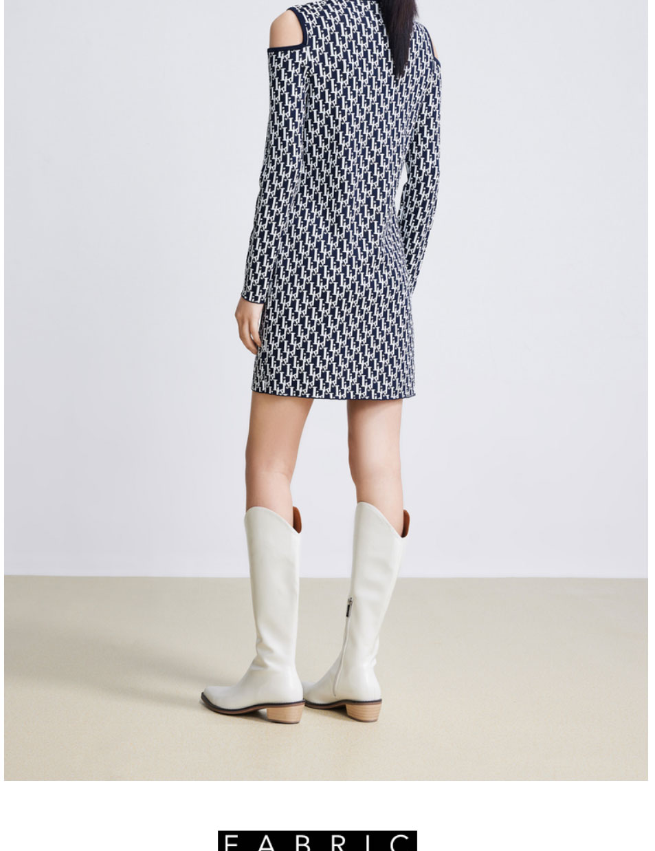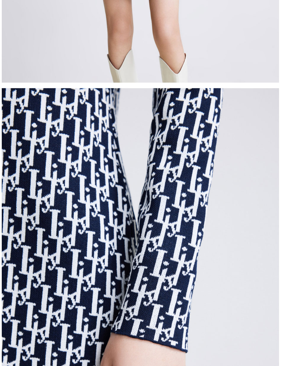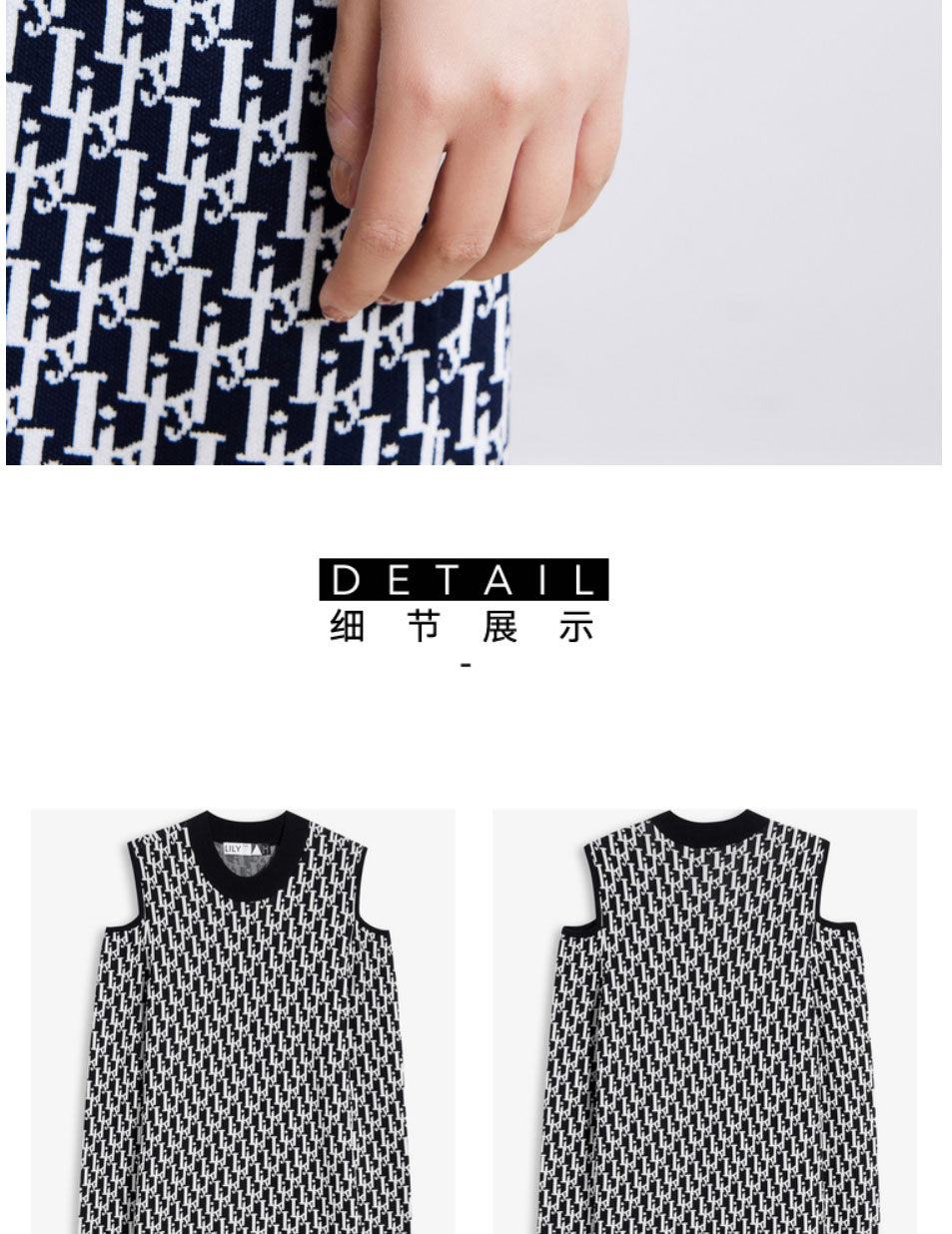 LILY2022春新款女装复古老花时尚镂空修身针织连衣裙122120T7321