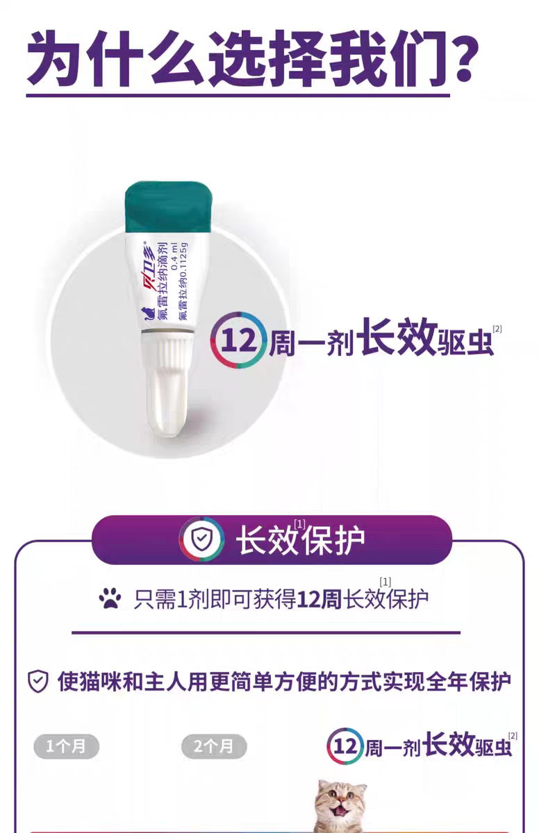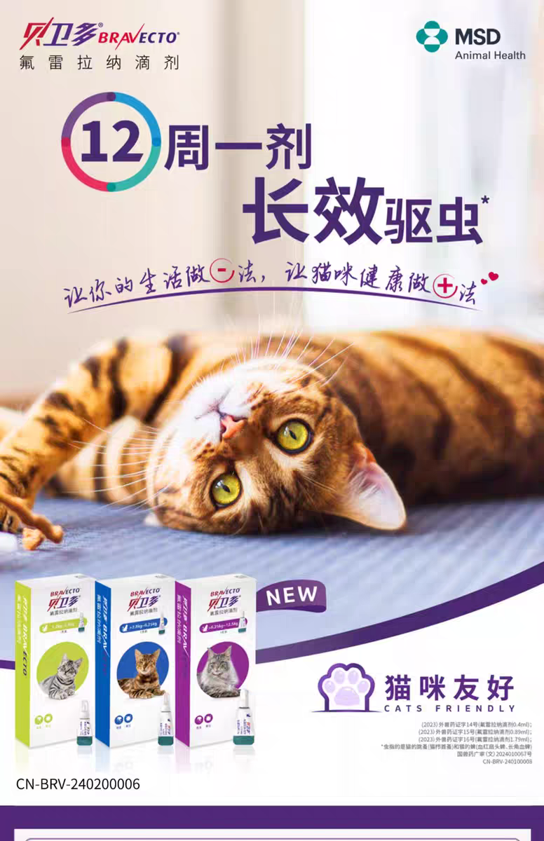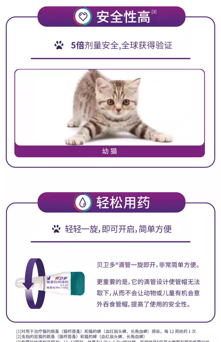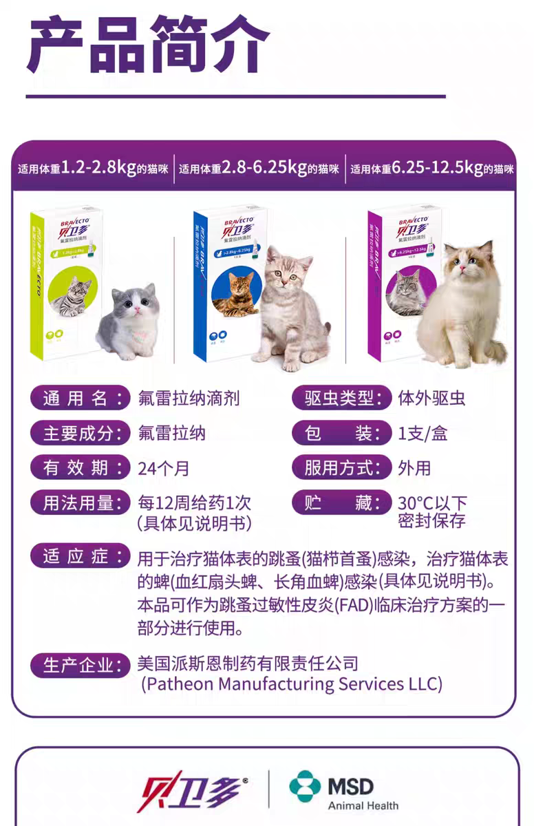 进口贝卫多猫用驱虫药体外驱虫氟雷拉纳滴剂寄生蜱虫跳蚤宠物猫咪专用