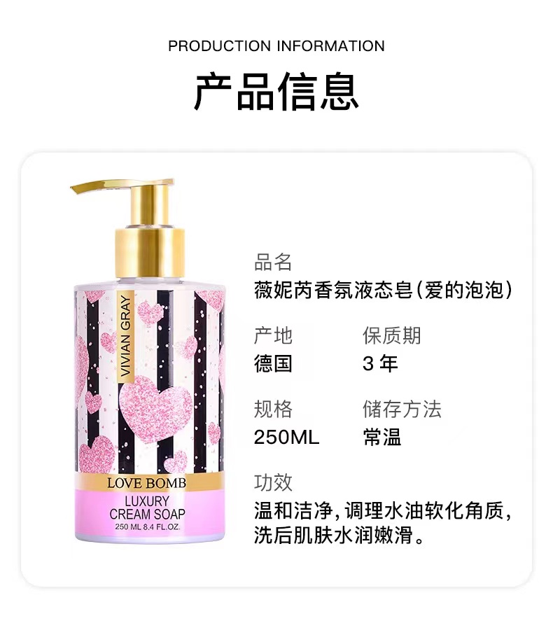 【中欧班列】德国薇妮芮香氛液态皂(山野烂漫) 原装进口香氛清洁保湿液态皂(爱的泡泡)留香补水沐浴露 250ml/瓶
