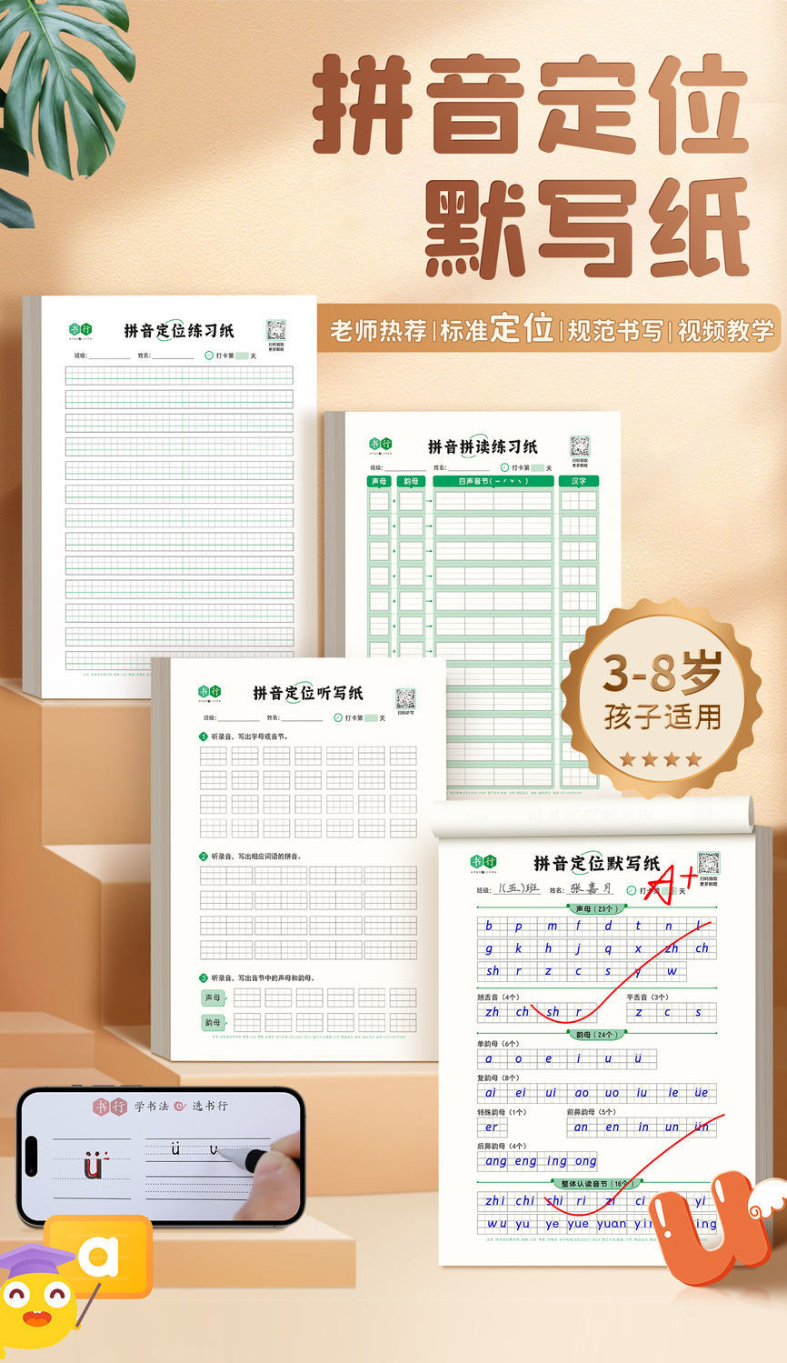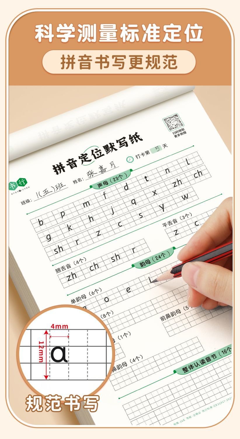 幼小学生【拼音定位练习纸】听写默写拼读练习拼音规范书写练习纸