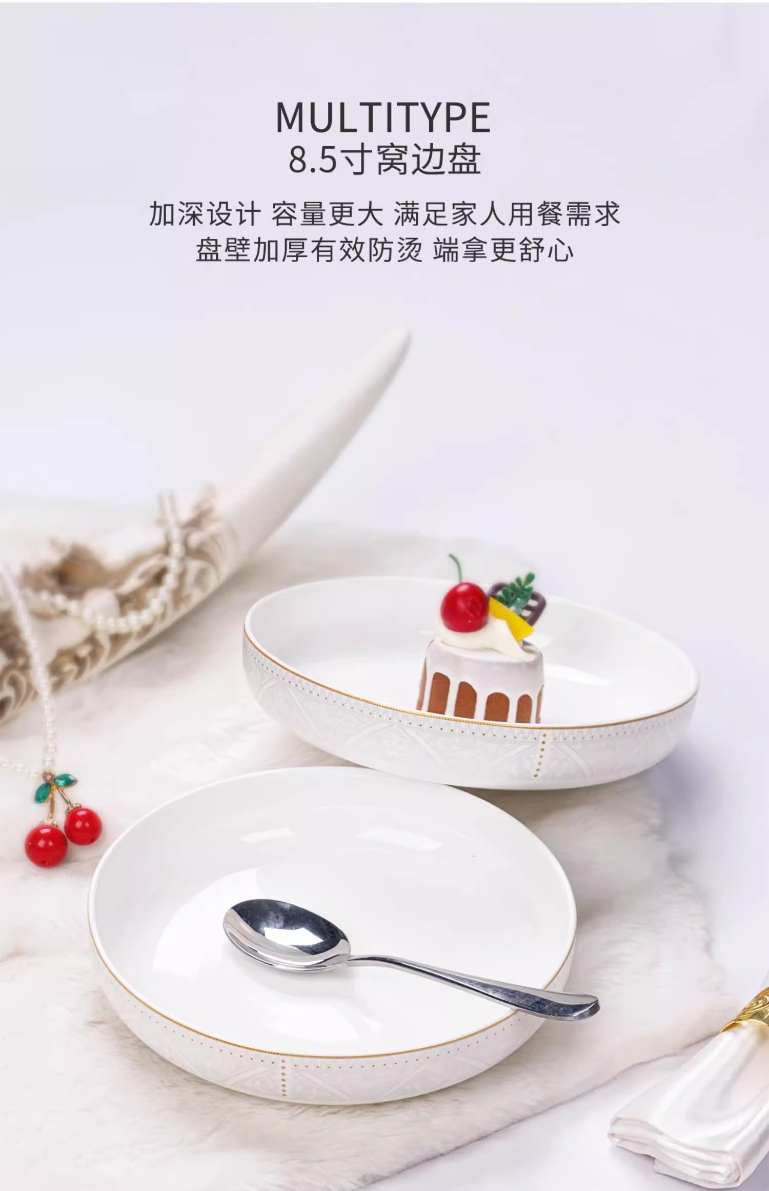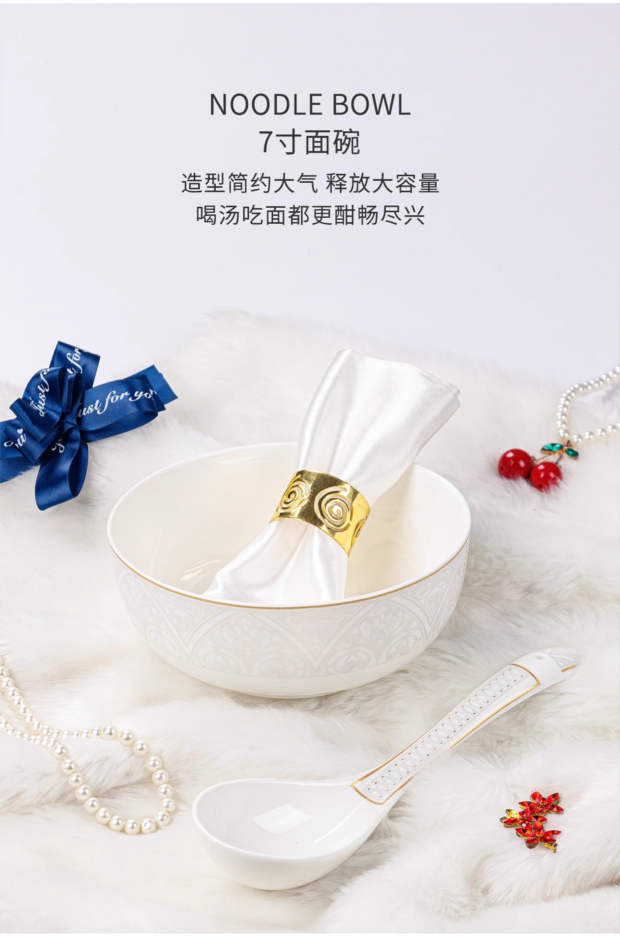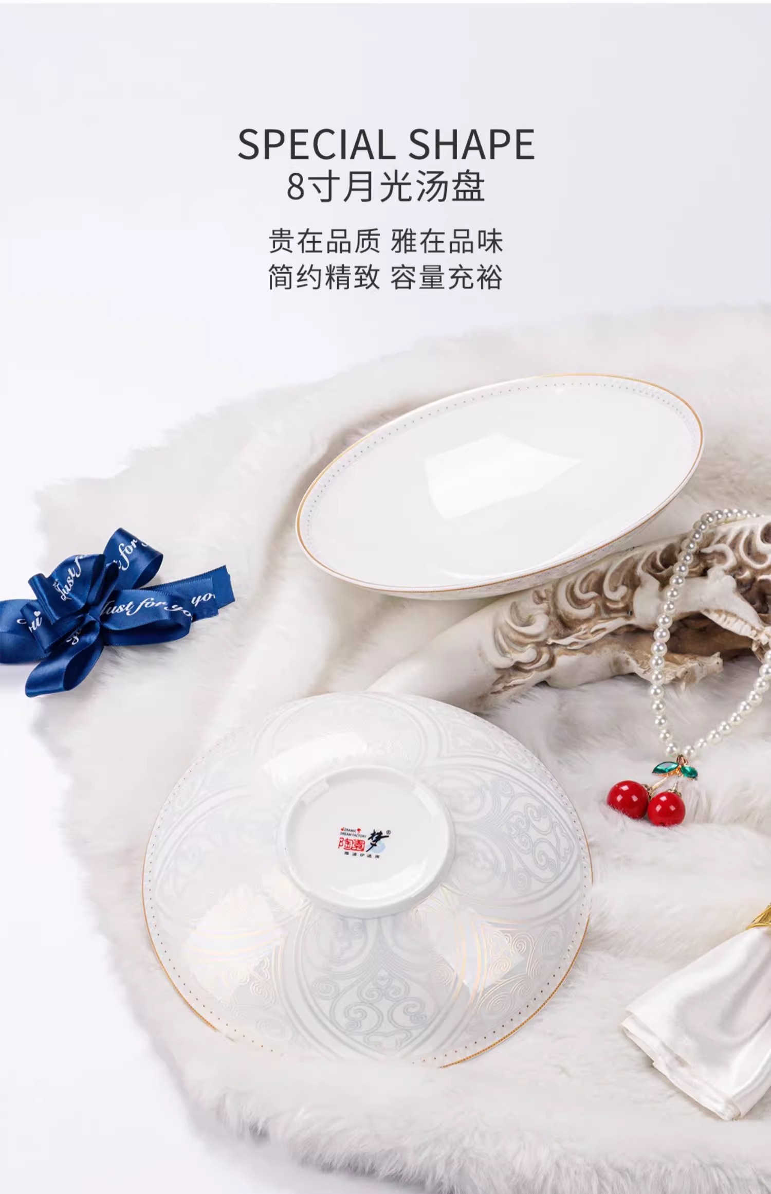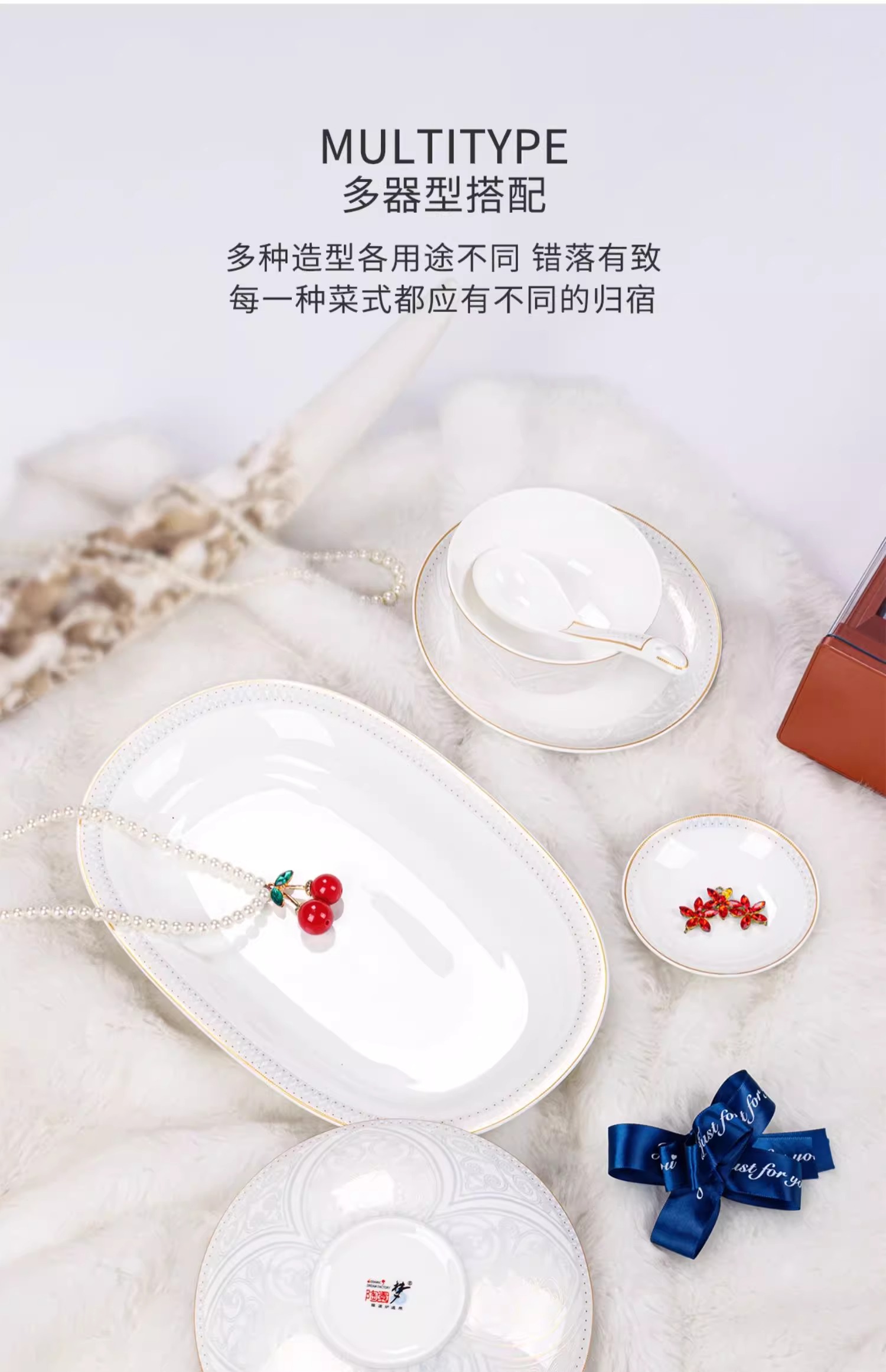 陶园梦碗碟套装家用骨瓷餐具2024年新款高档欧式碗盘乔迁新居餐具组合碗心海映辉10人用52头骨质瓷餐具【不支持补差,非质量问题不退不换】S