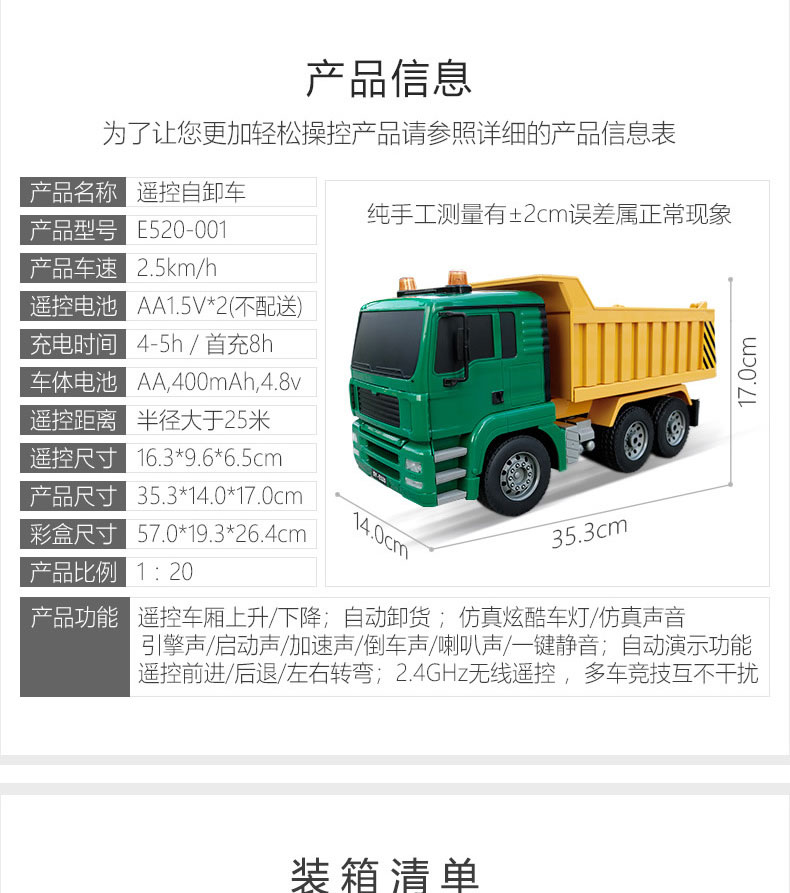 双鹰 遥控工程车(1:20遥控自卸车) E520-001