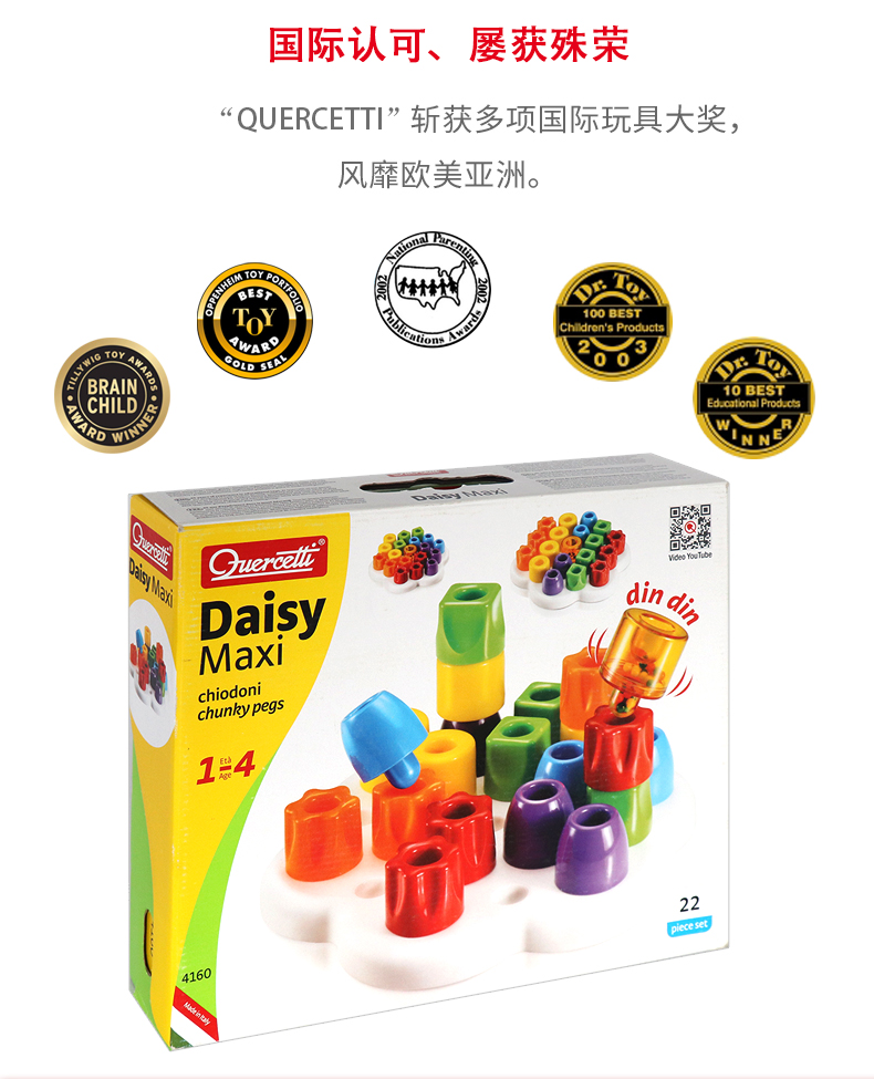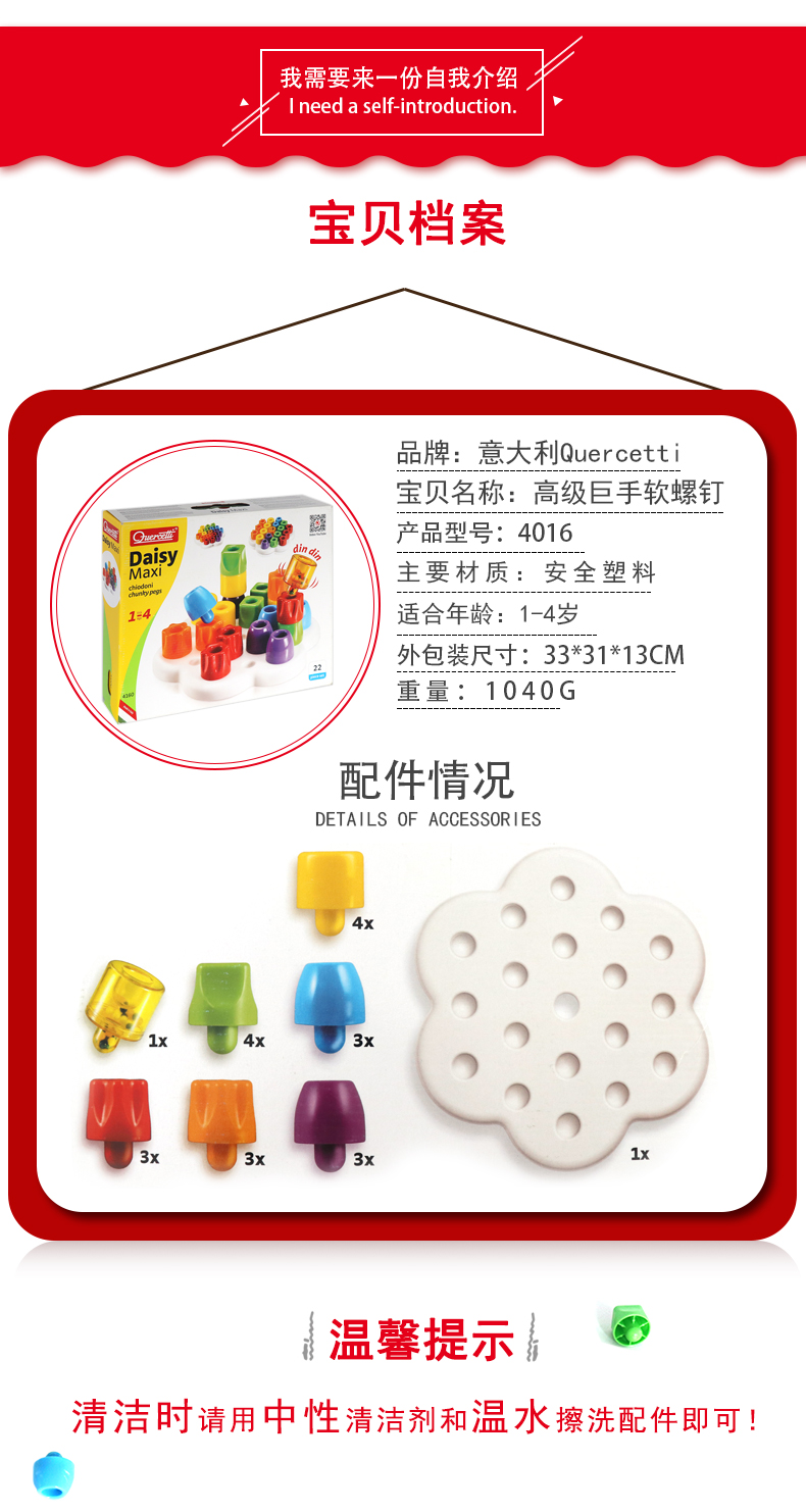 Quercetti启迪 早教系列 巨手软螺钉 Q4160 1+岁 意大利