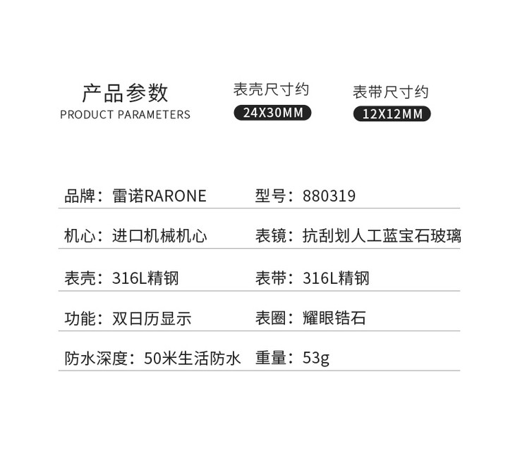 RARONE雷诺表永恒系列机械对表88031