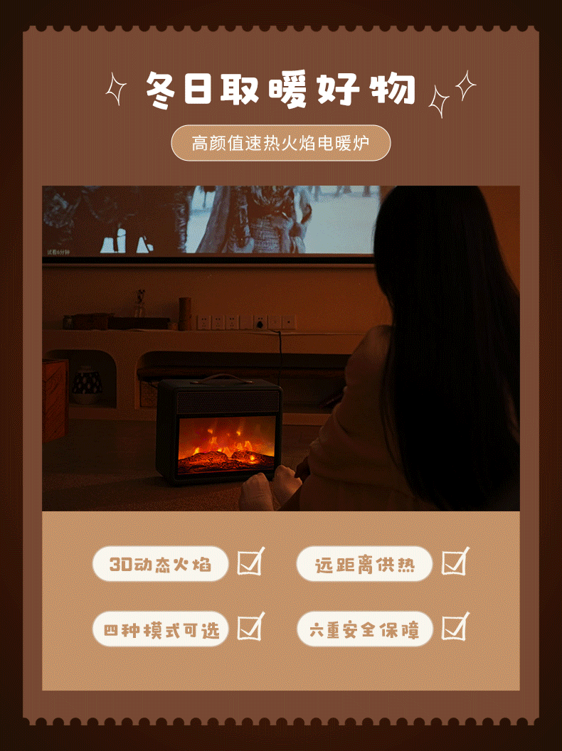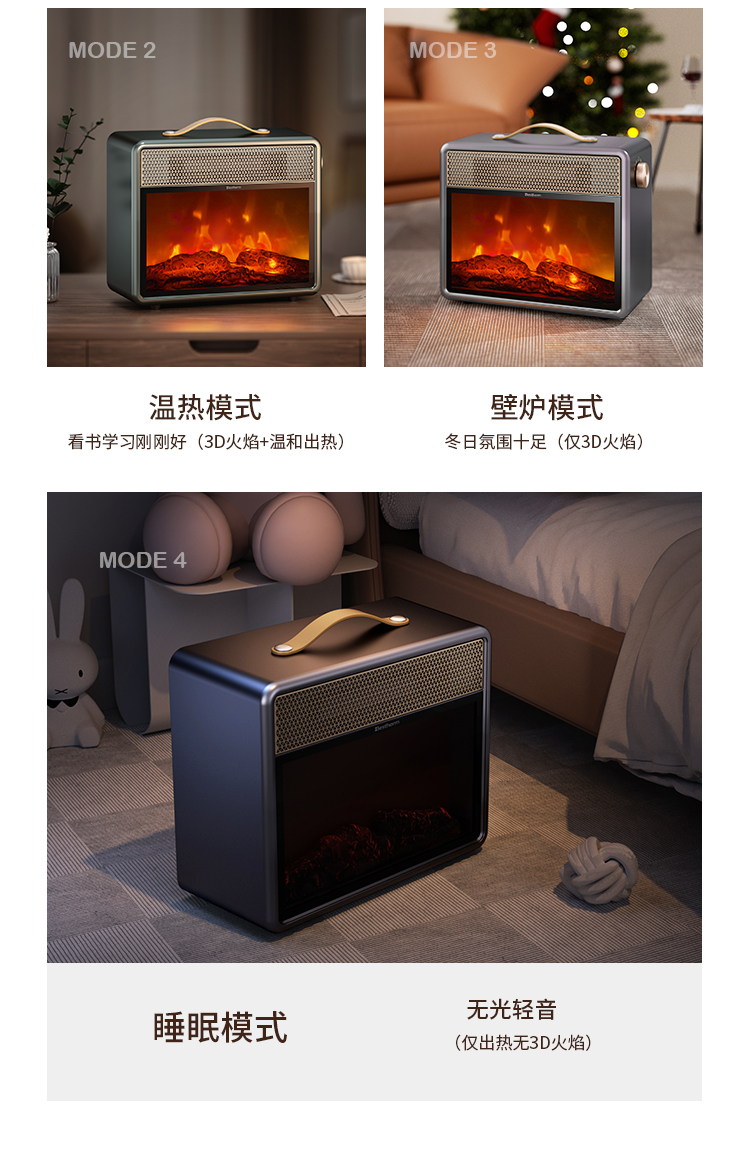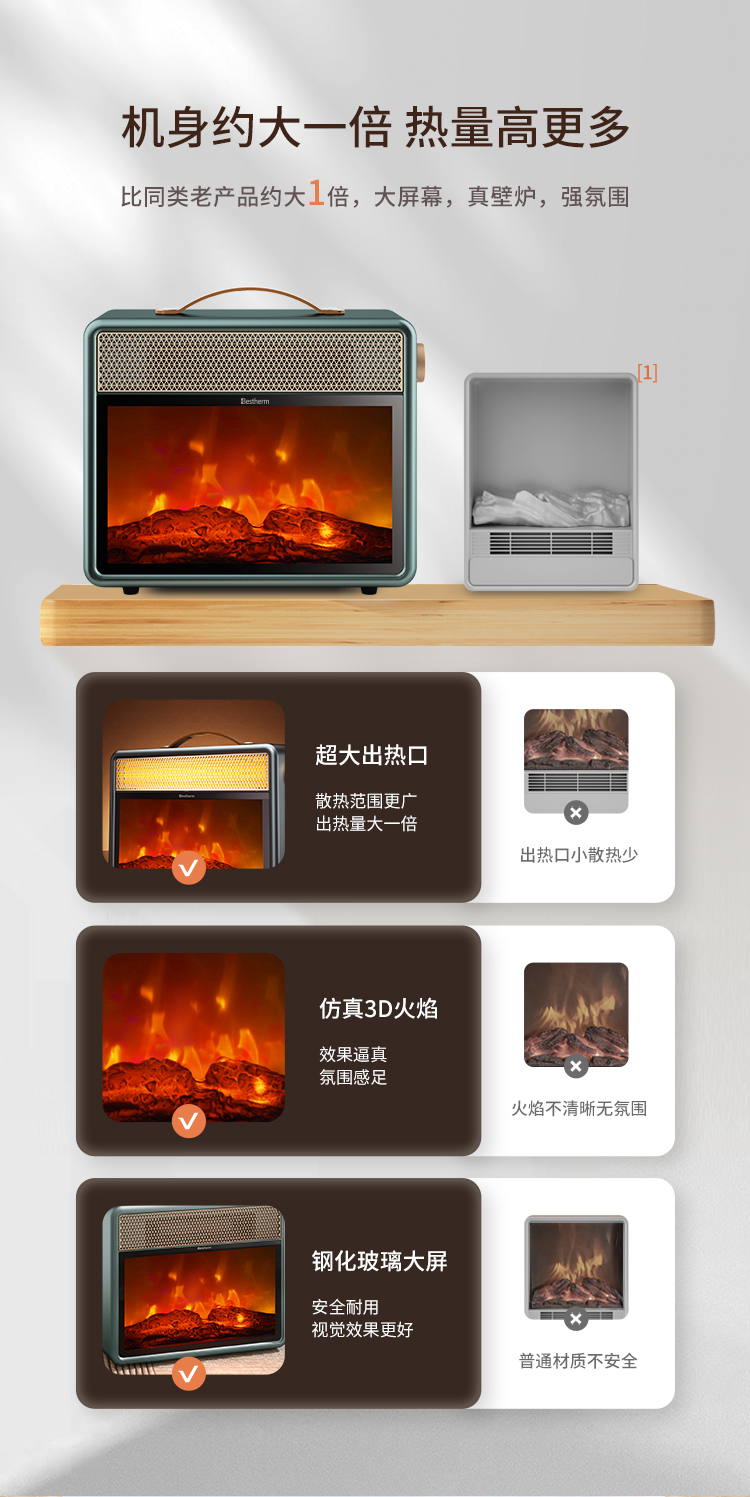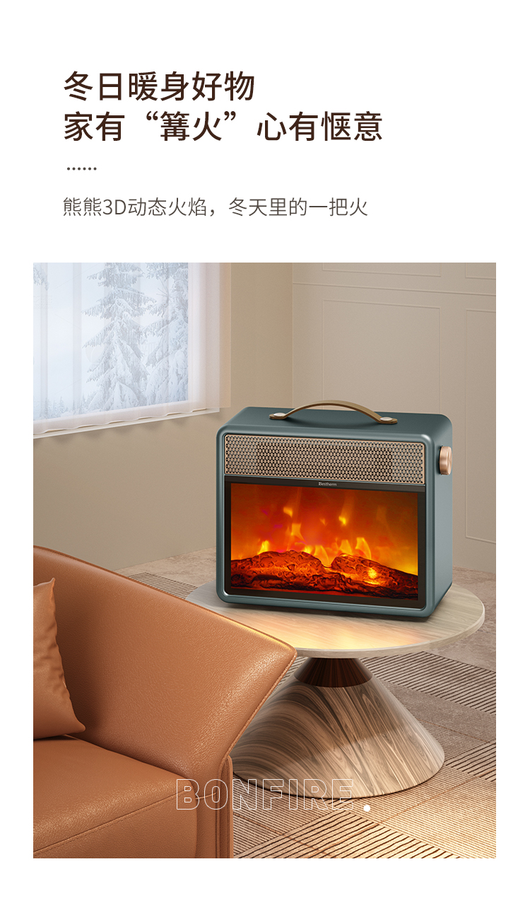 【百斯腾取暖器】仿真火焰壁炉电暖家用暖风机桌面卧室速热围炉省电F1