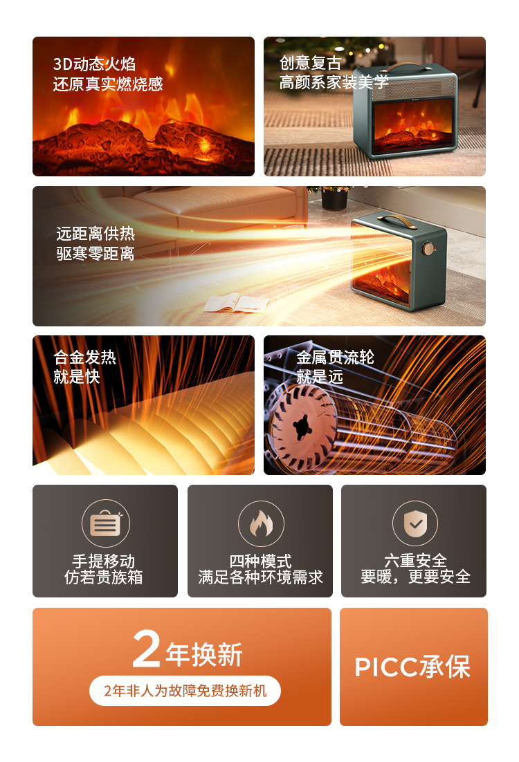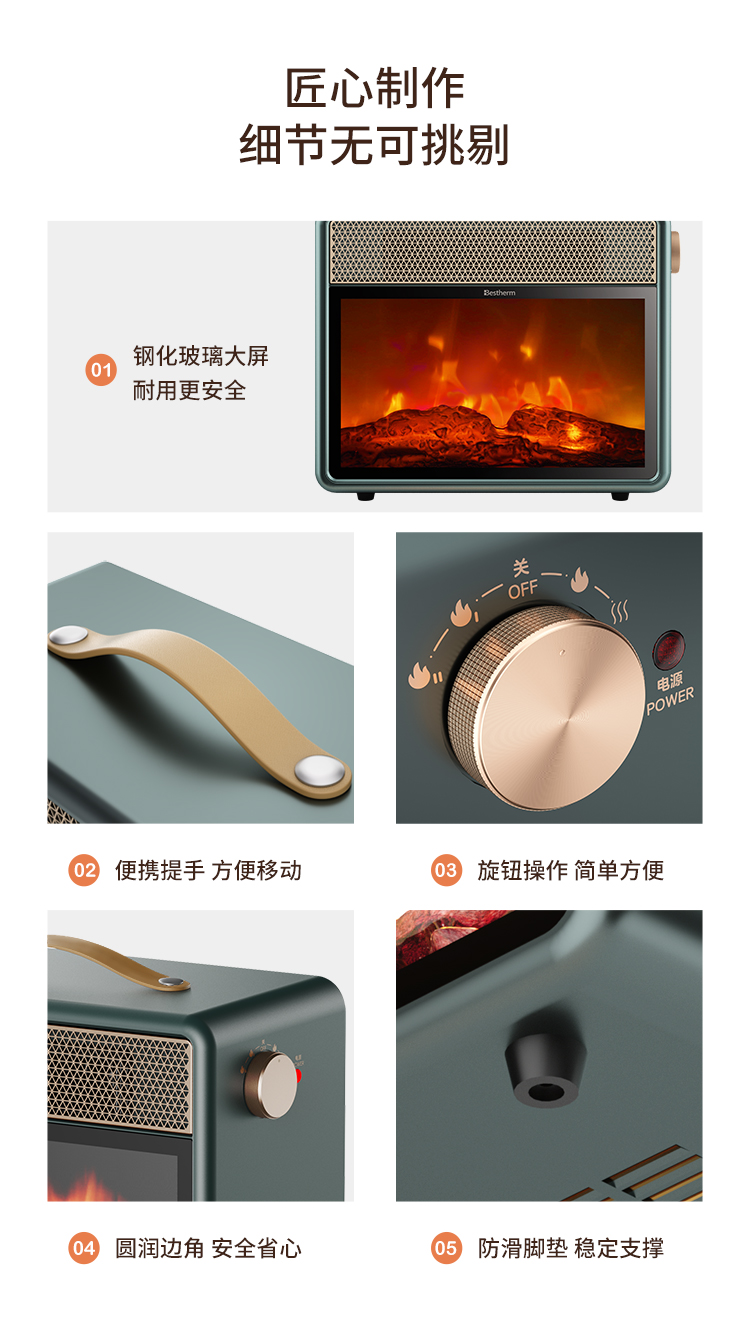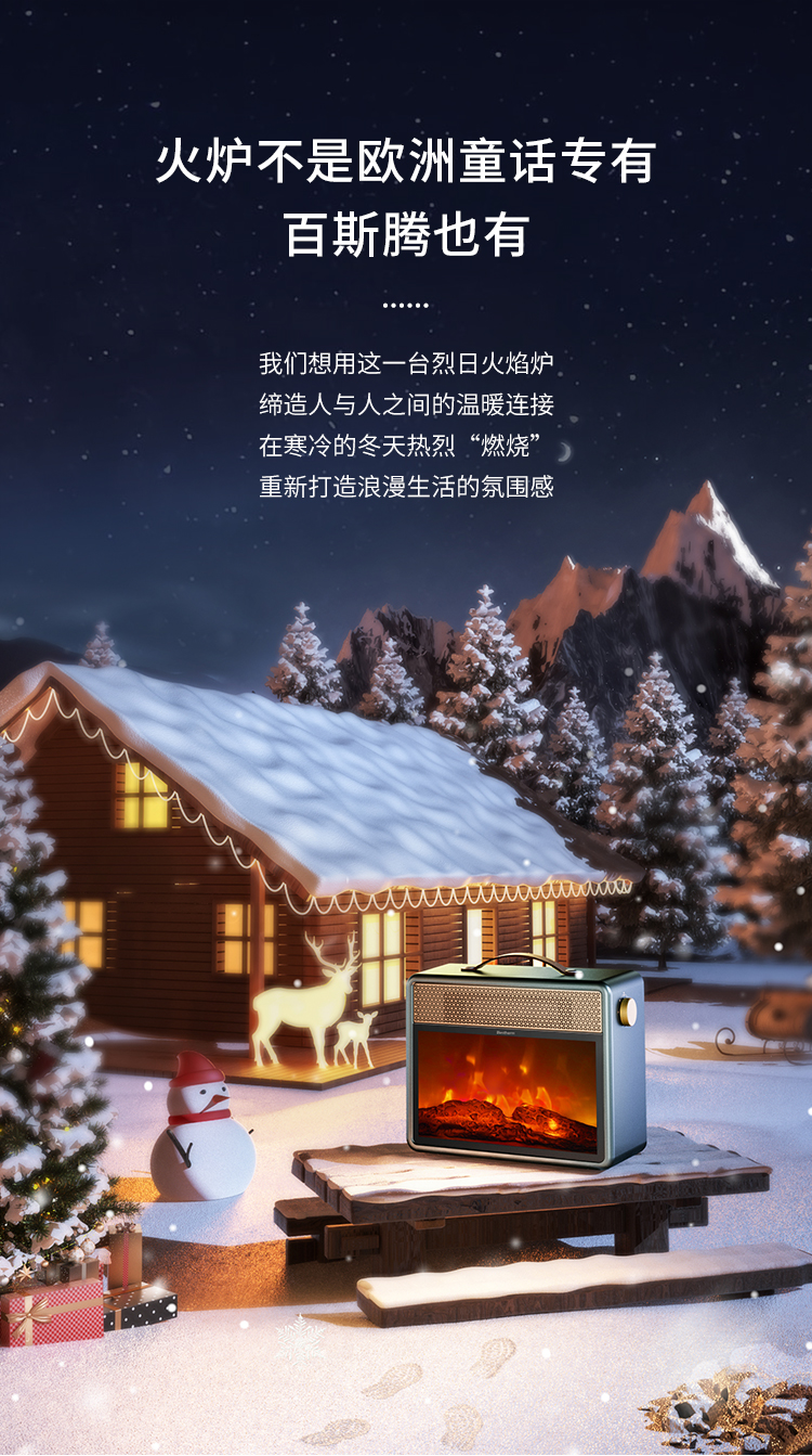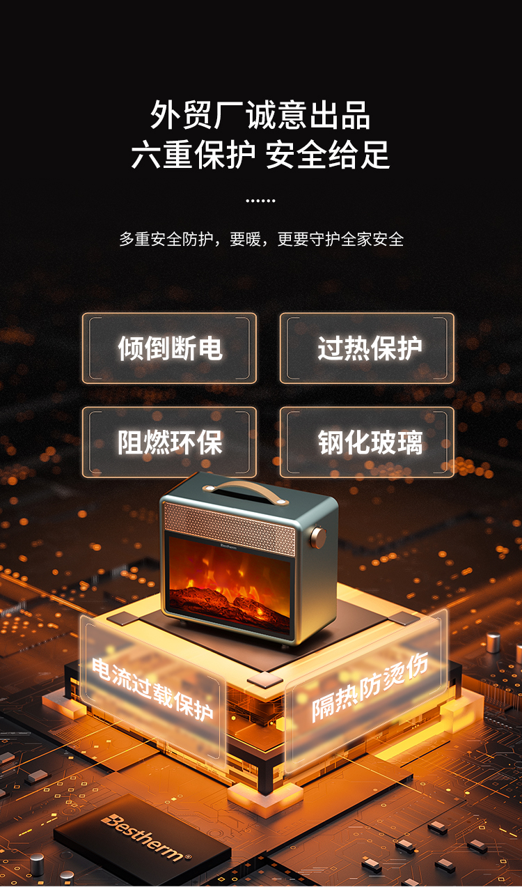 【百斯腾取暖器】仿真火焰壁炉电暖家用暖风机桌面卧室速热围炉省电F1