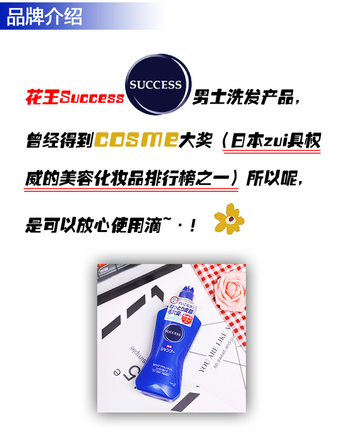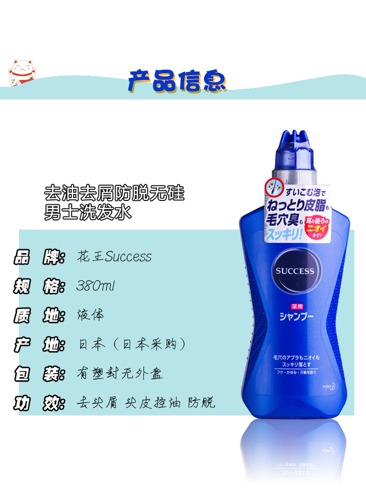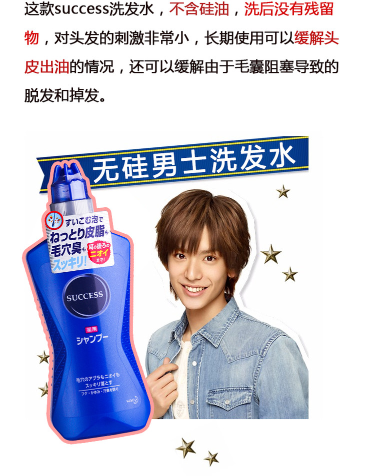 日本直邮 花王Success男士无硅油劲爽去油生发洗发水 S1 380ml/瓶