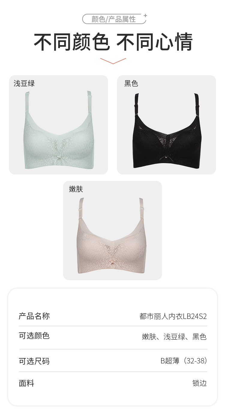 都市丽人薄适贴合B杯常规内衣锁边超薄3/4杯文胸三排扣树脂胶圈LB24S2