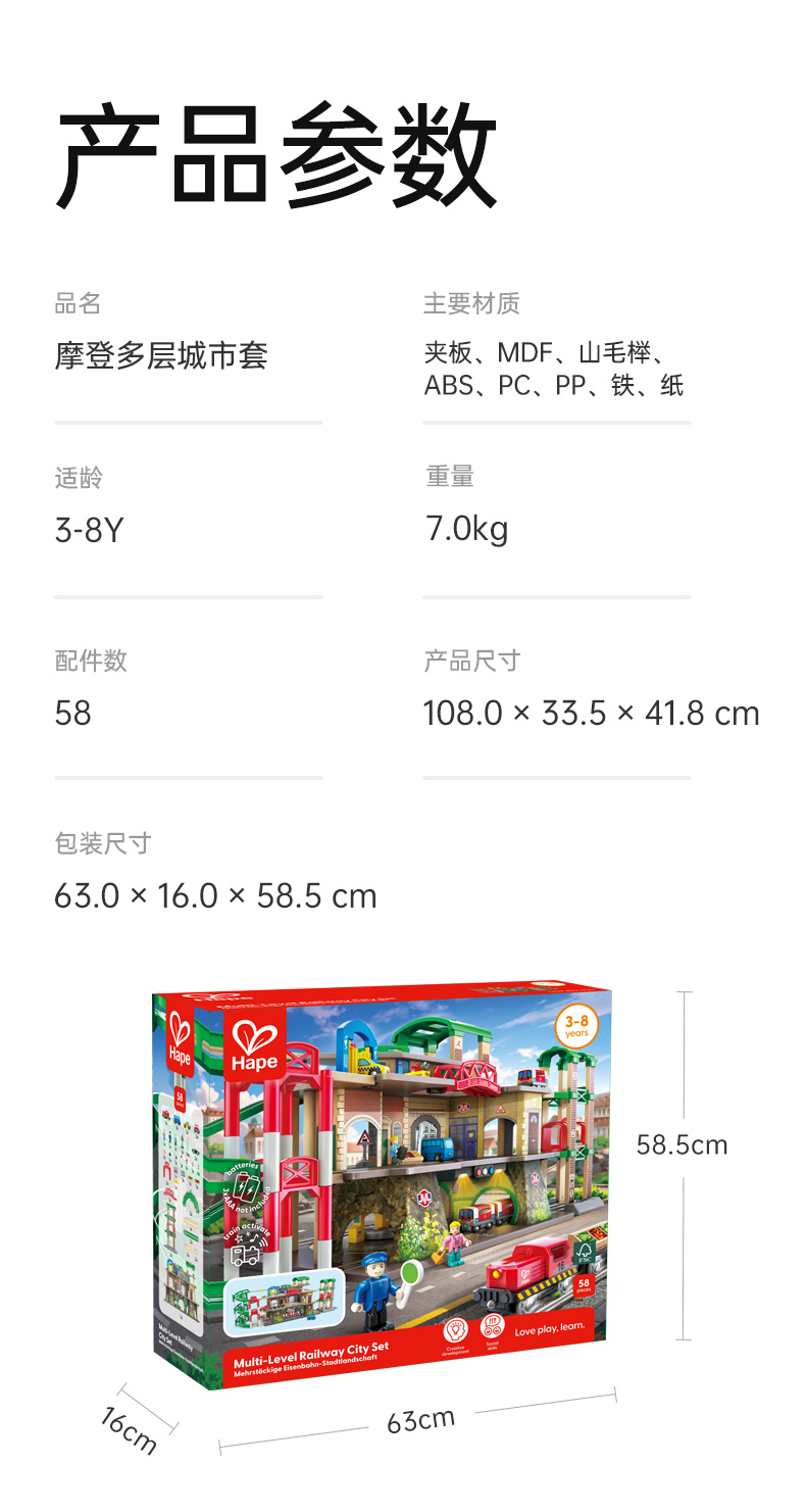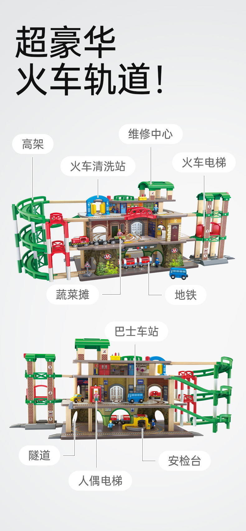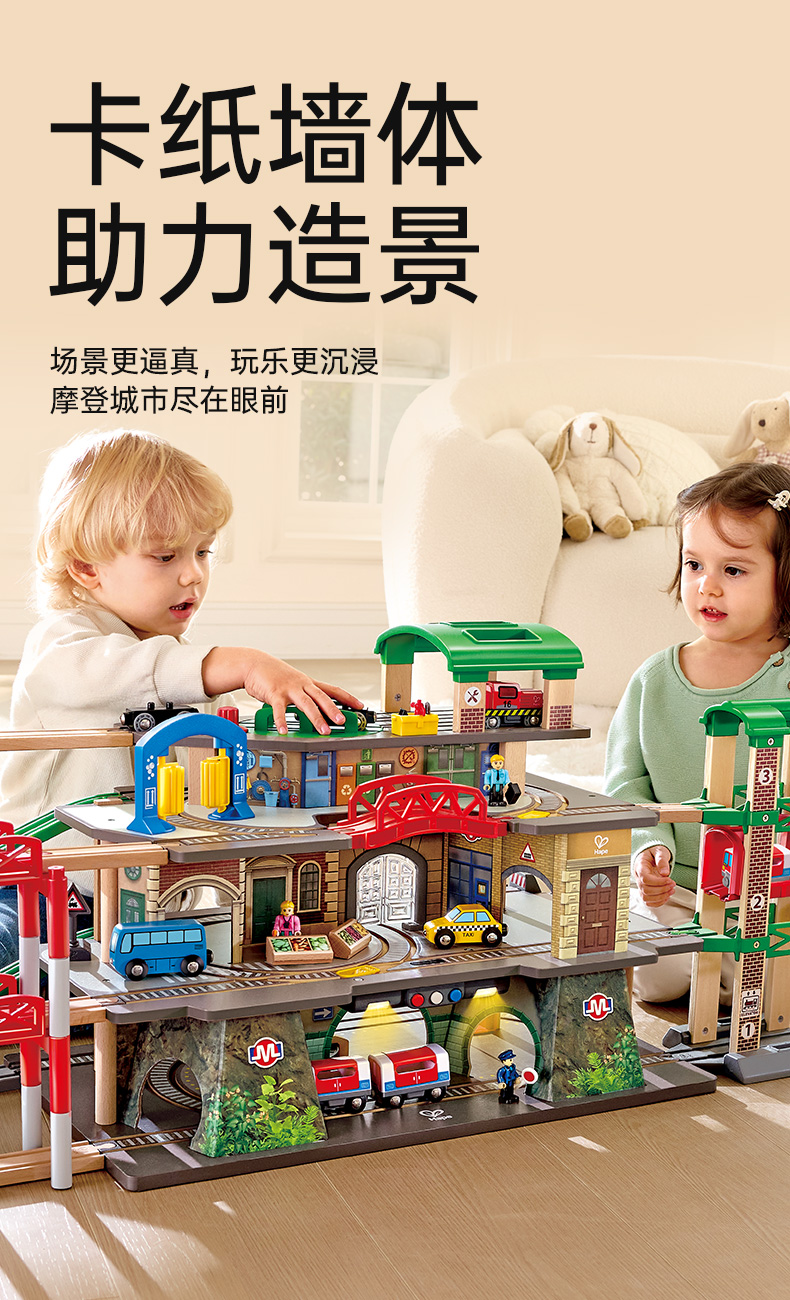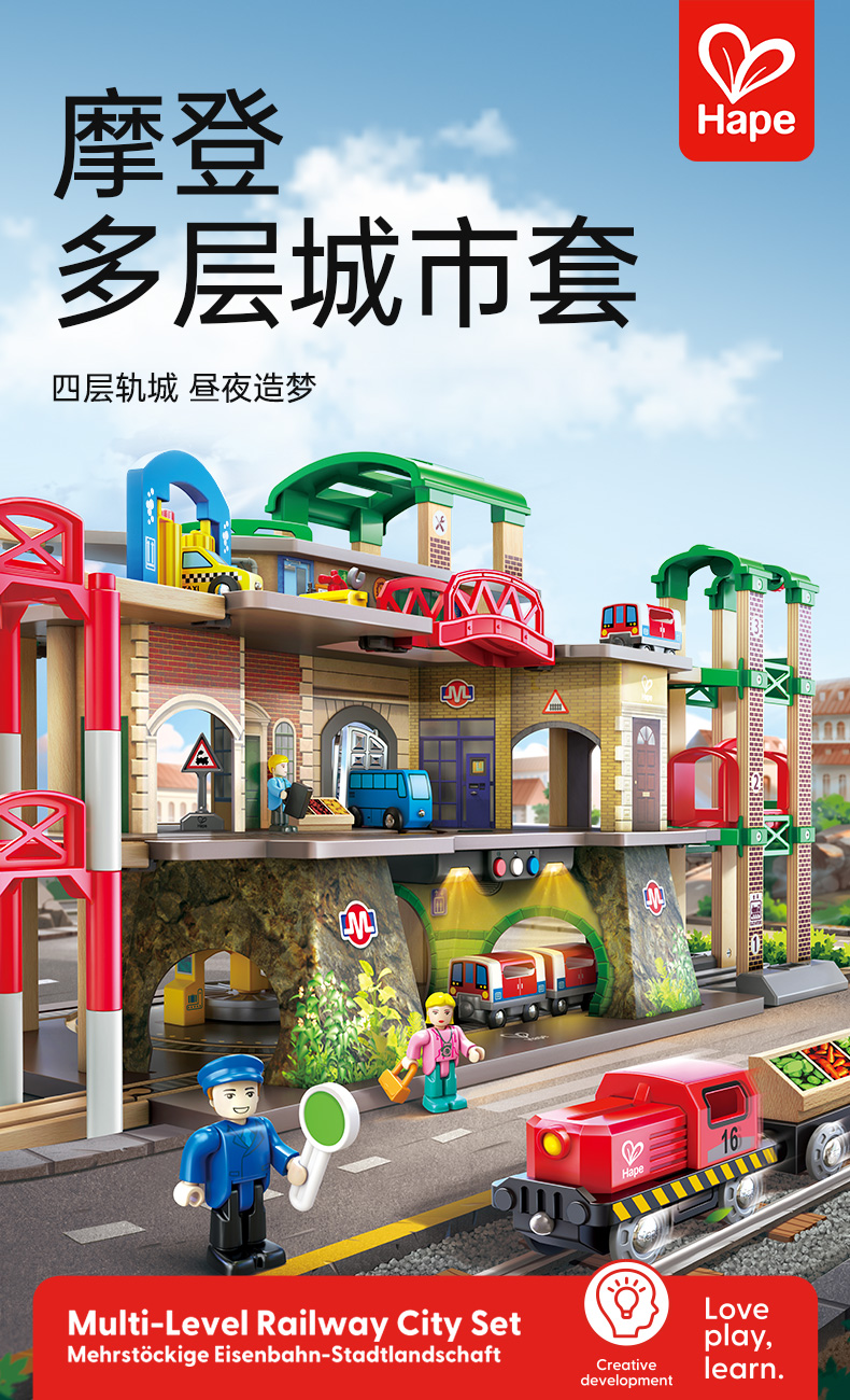 Hape摩登多层城市火车轨道套儿童早教益智玩具木制男女孩生日礼物