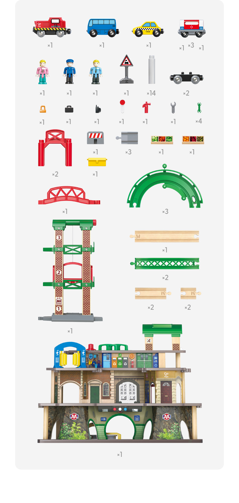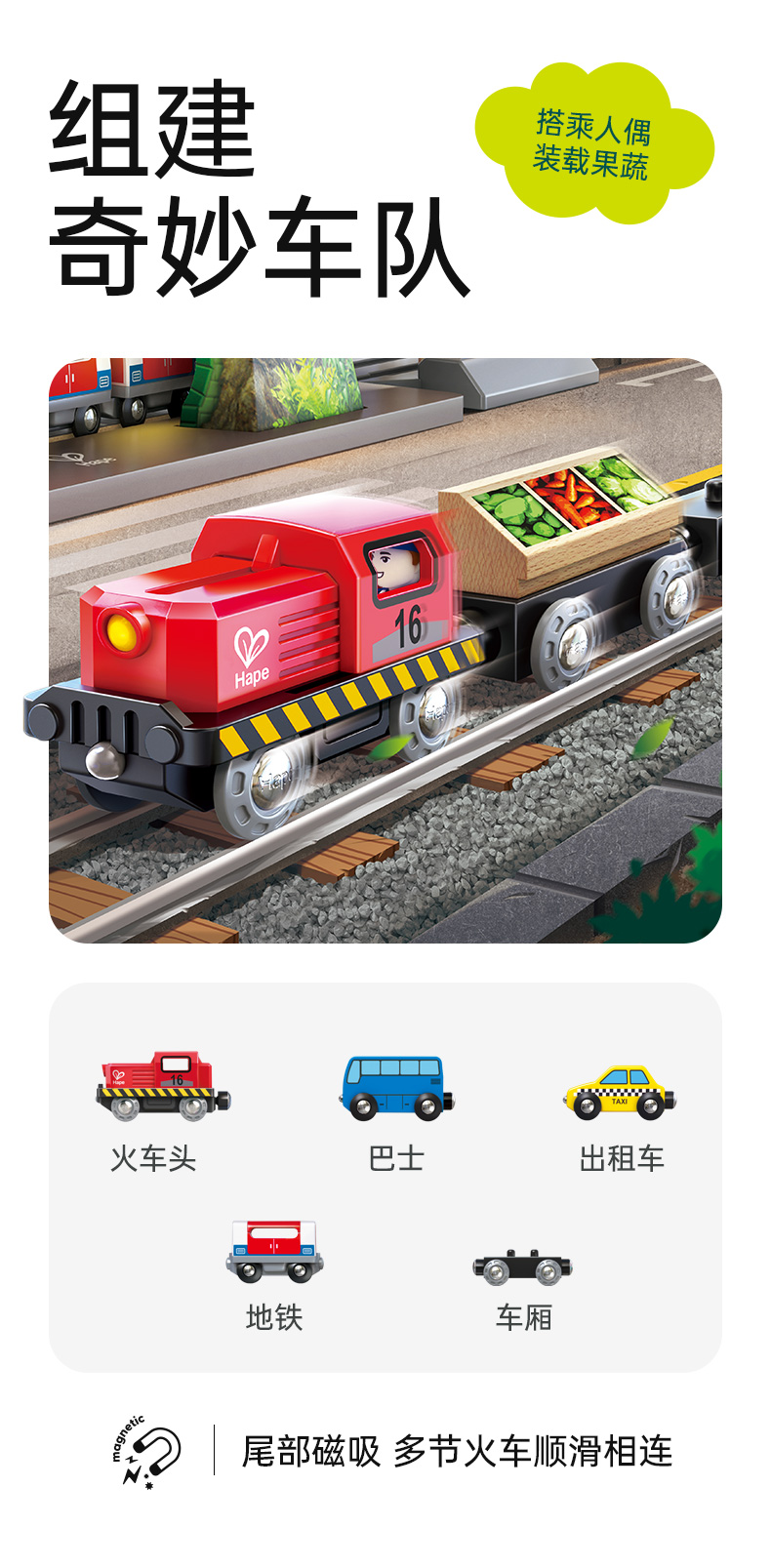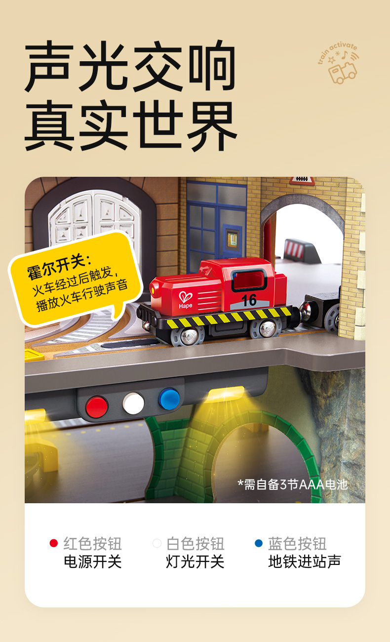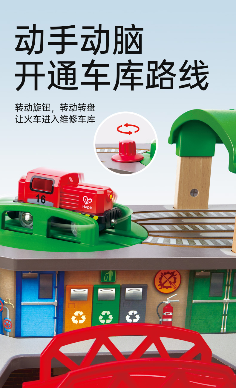 Hape摩登多层城市火车轨道套儿童早教益智玩具木制男女孩生日礼物