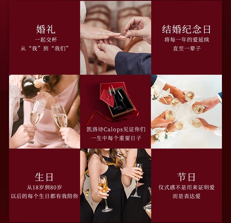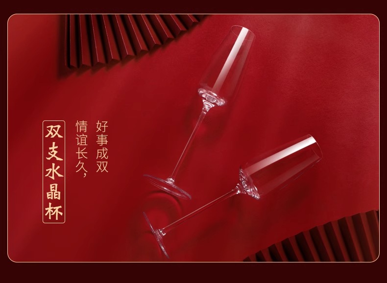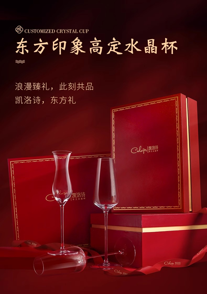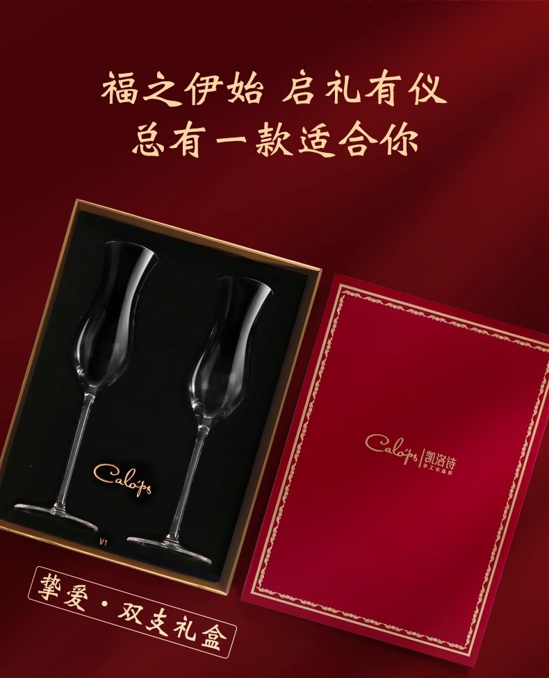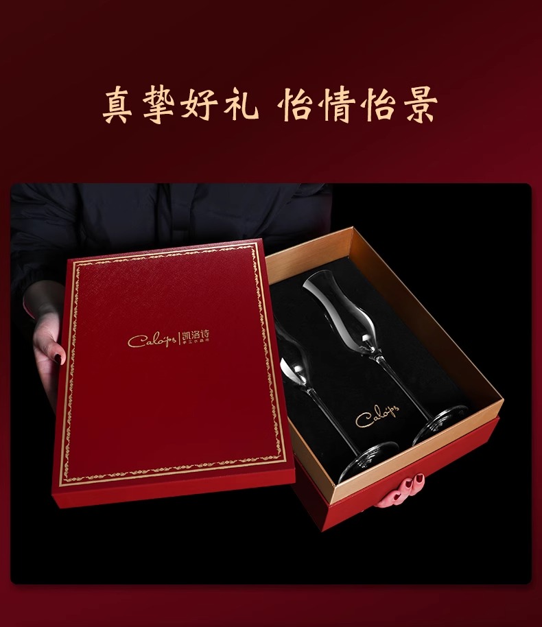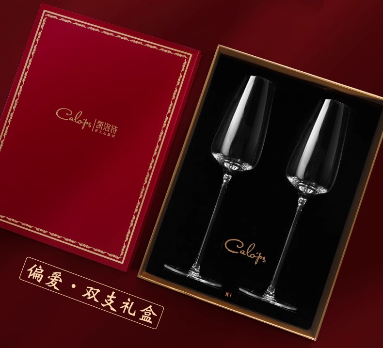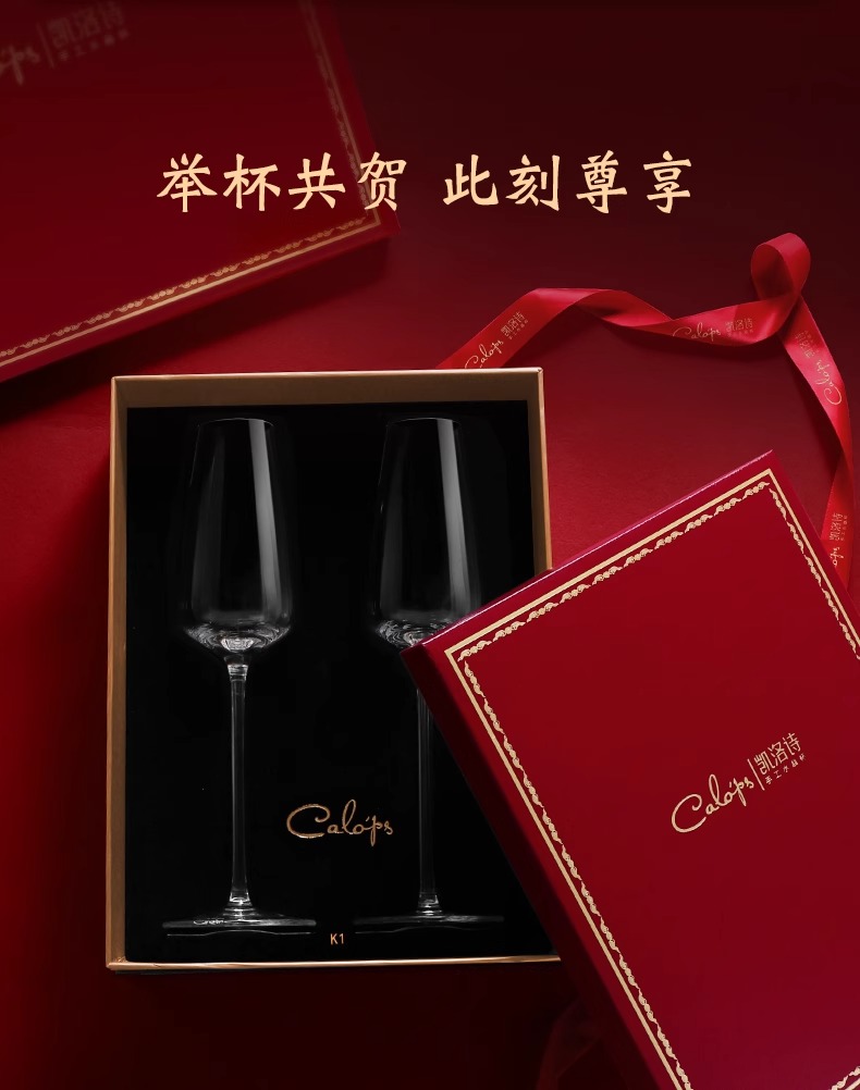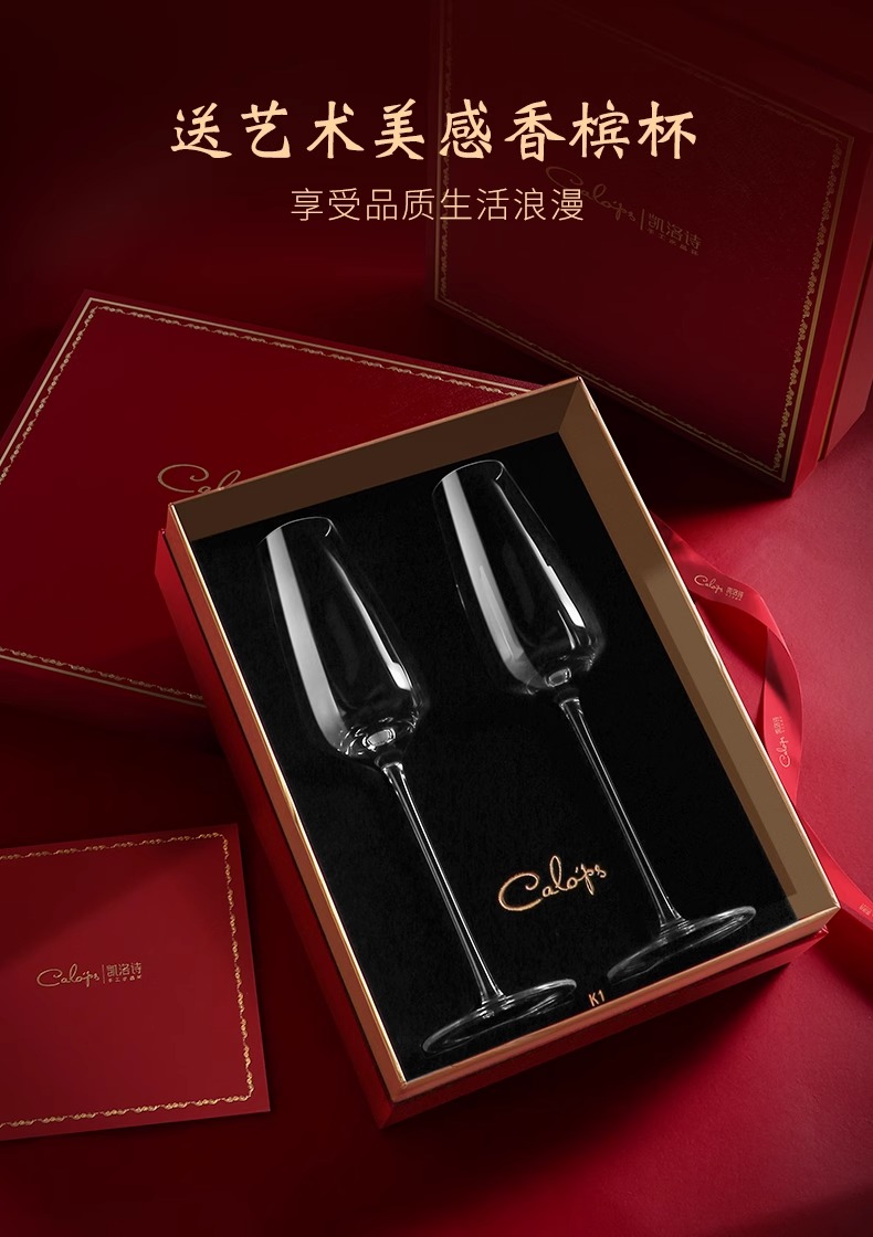 凯洛诗新婚礼物香槟杯套装水晶高脚杯礼品一对轻奢高档礼盒香槟杯K1双支礼盒