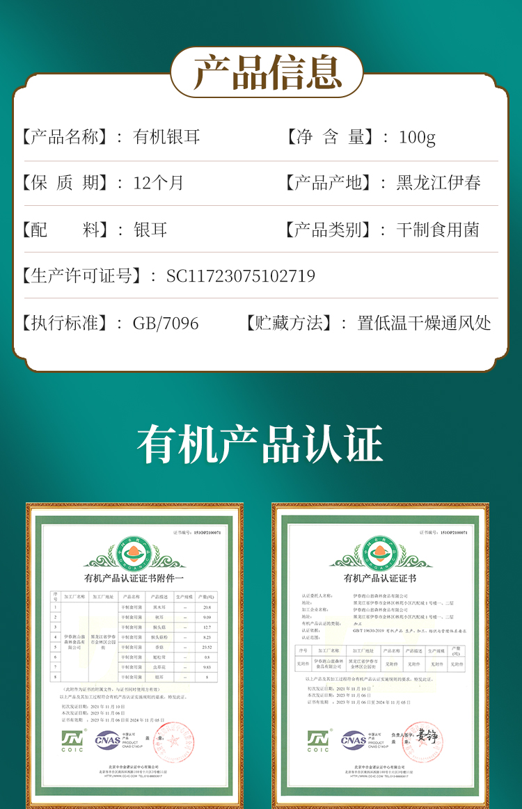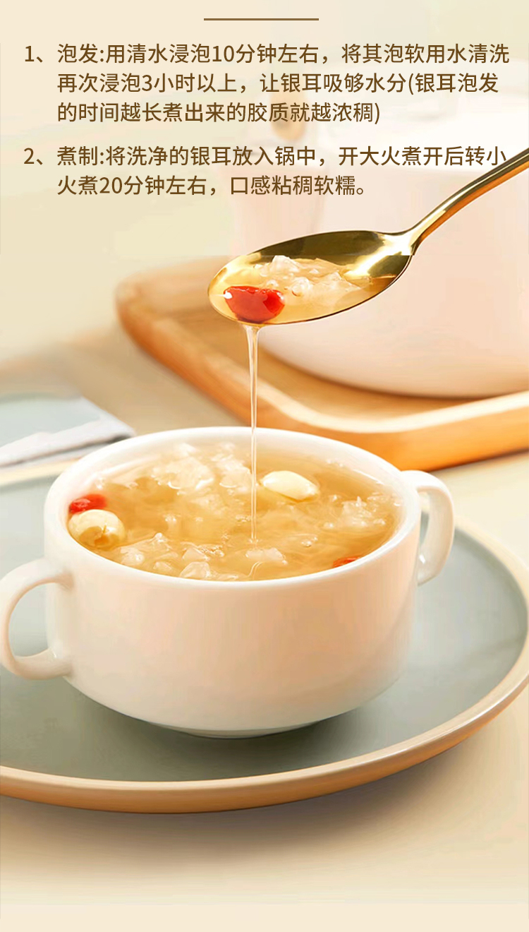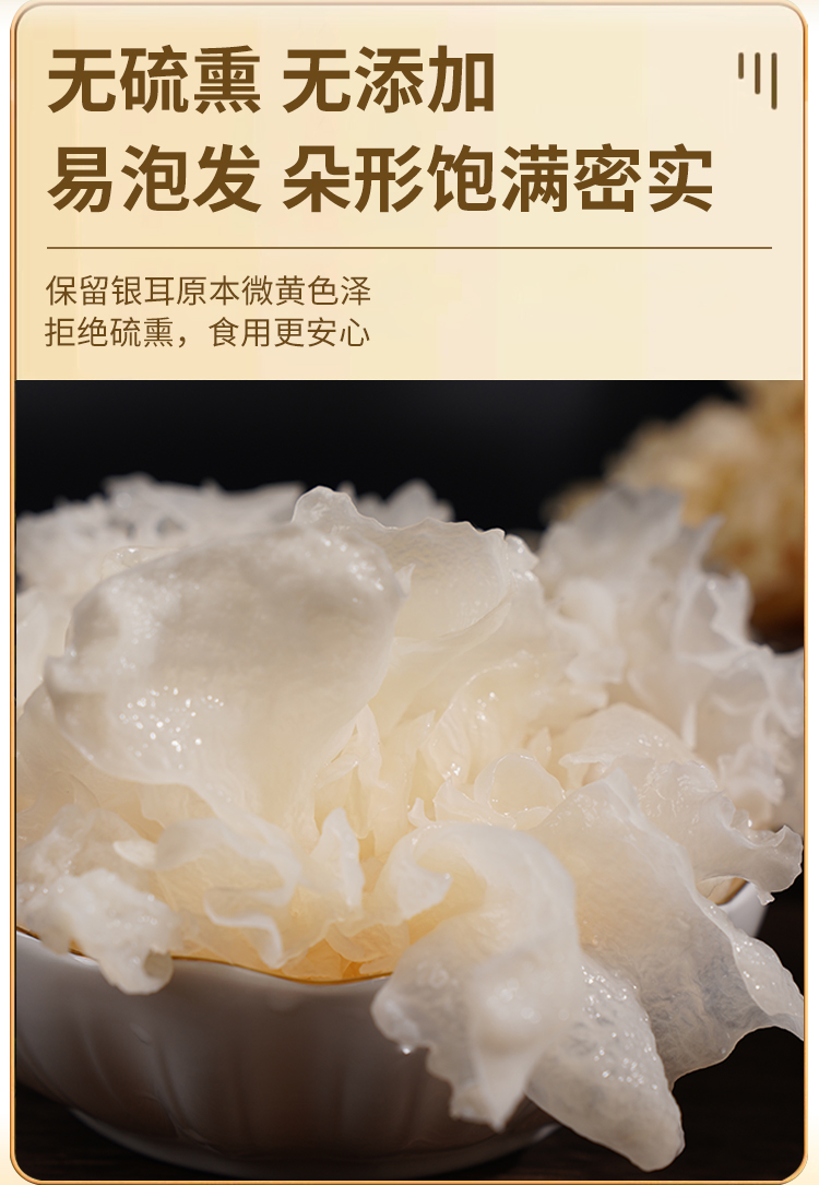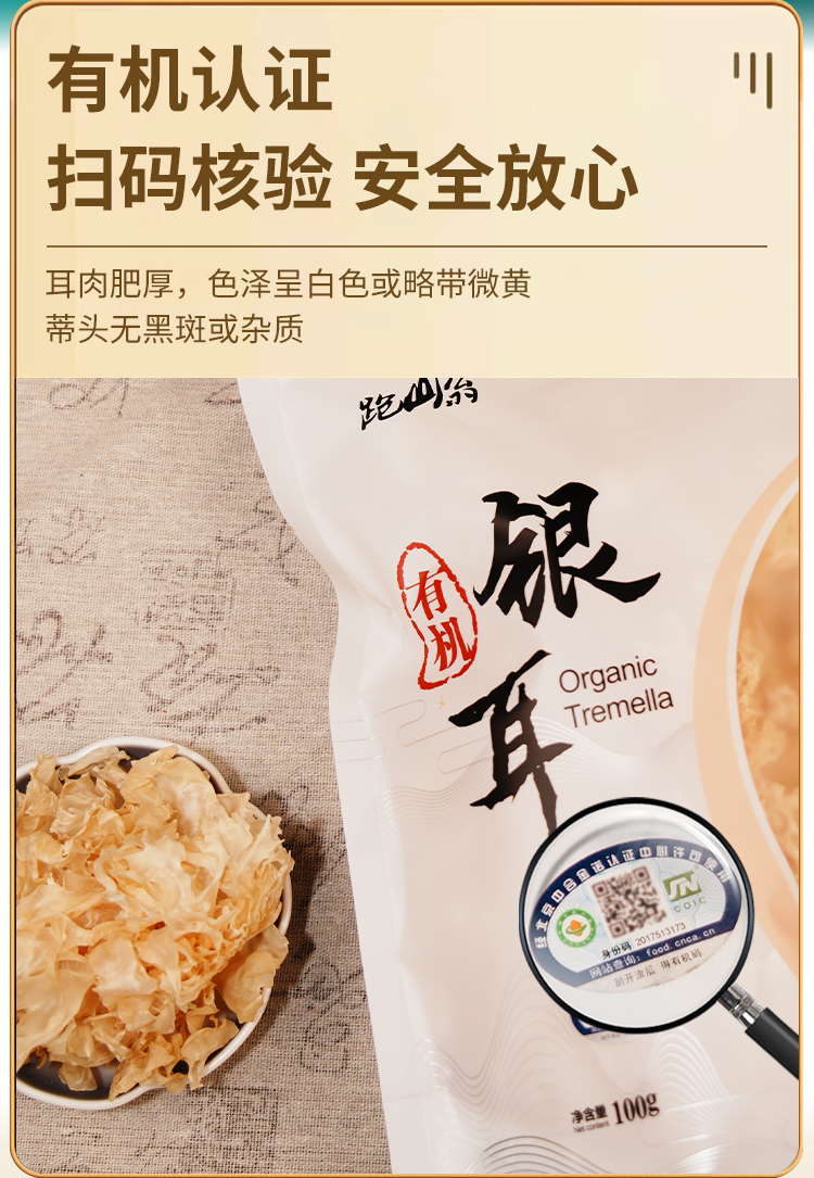 【产品规格】有机银耳 100g/袋(每箱都是独立的包装,如购买多件分多个包裹发出,可能会前后陆续到货)。
