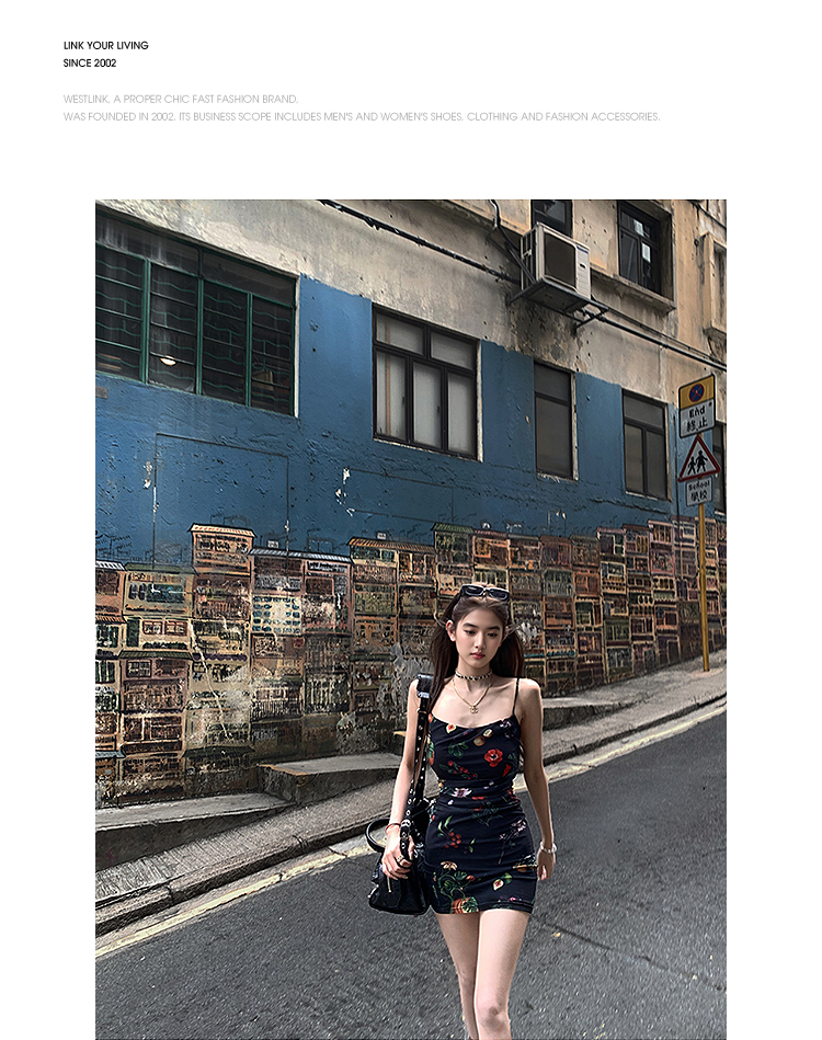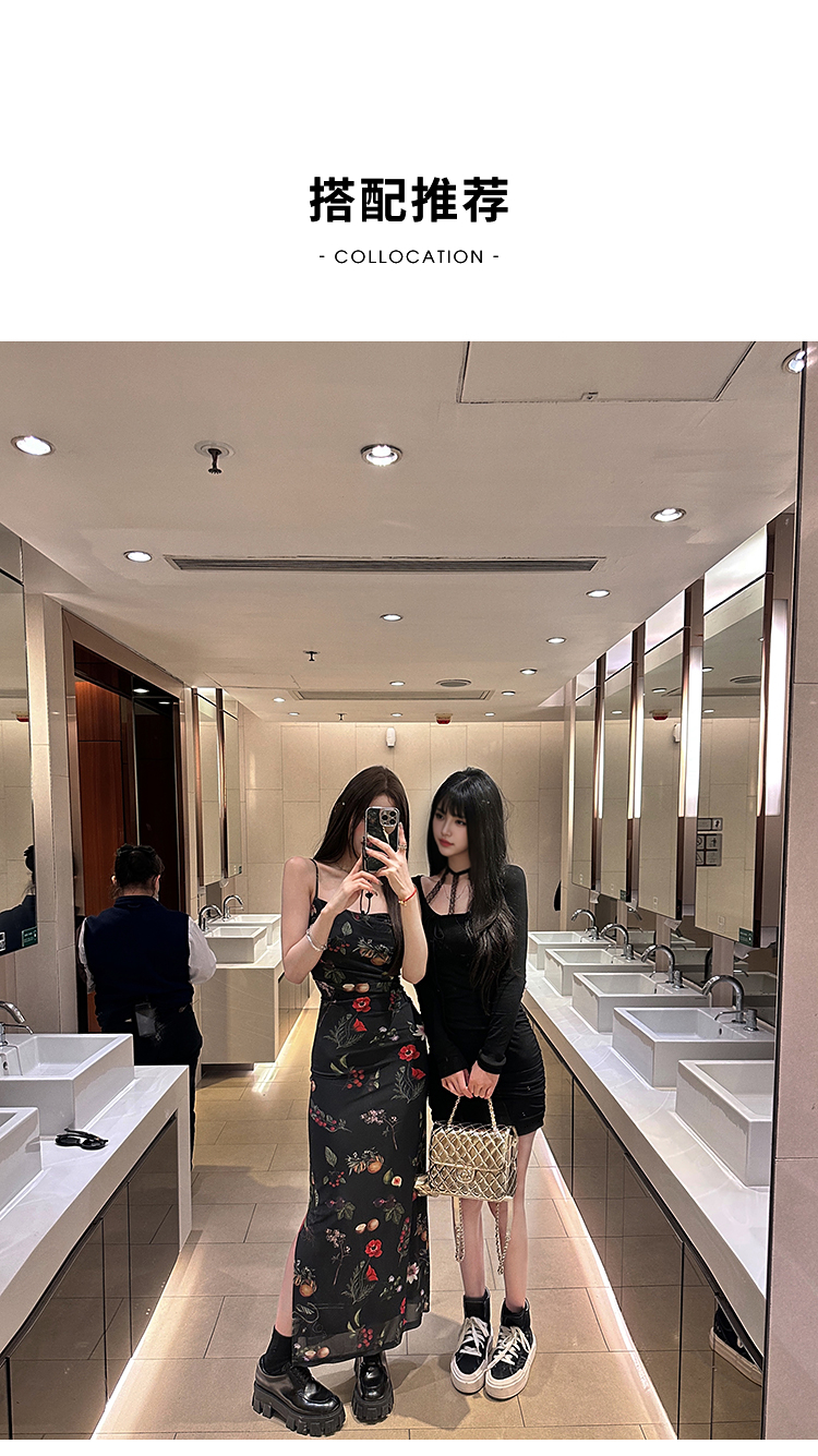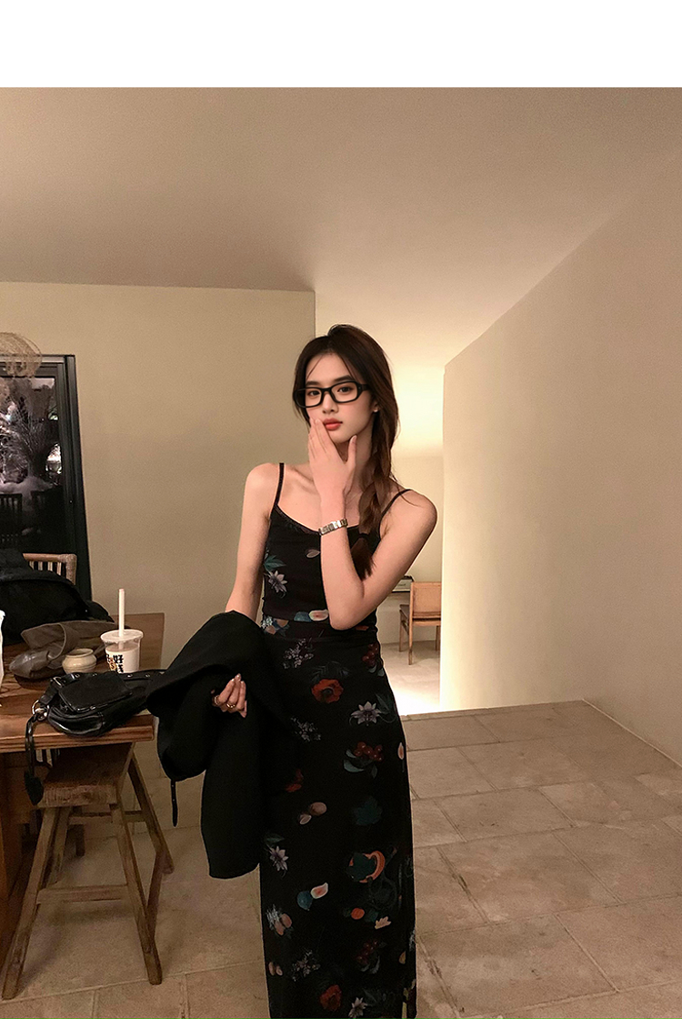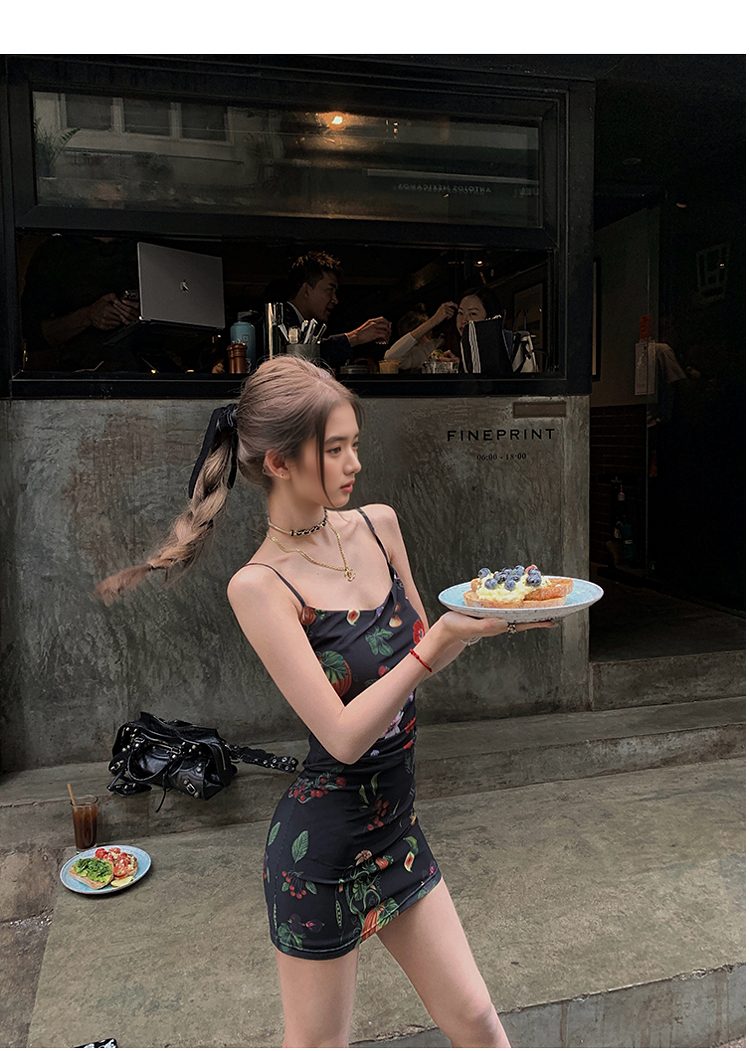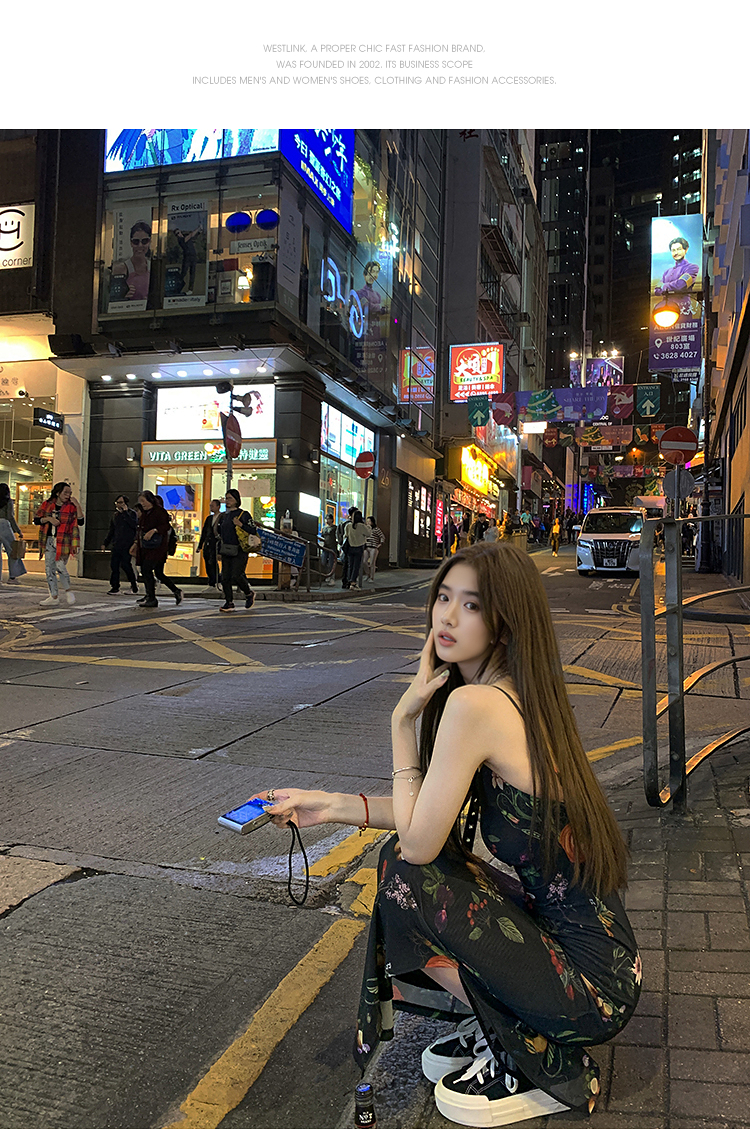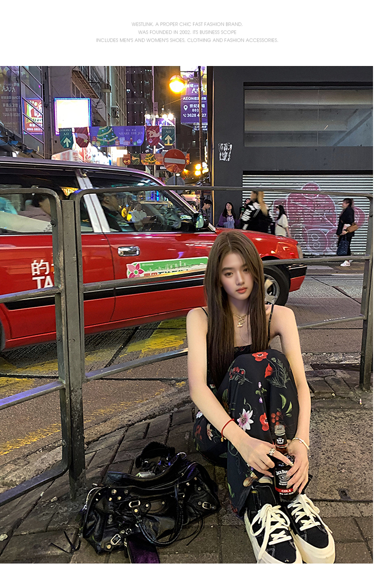 西遇碎花吊带连衣裙女夏季新款黑色法式收腰旅游度假风裙子SS150339/SS150340