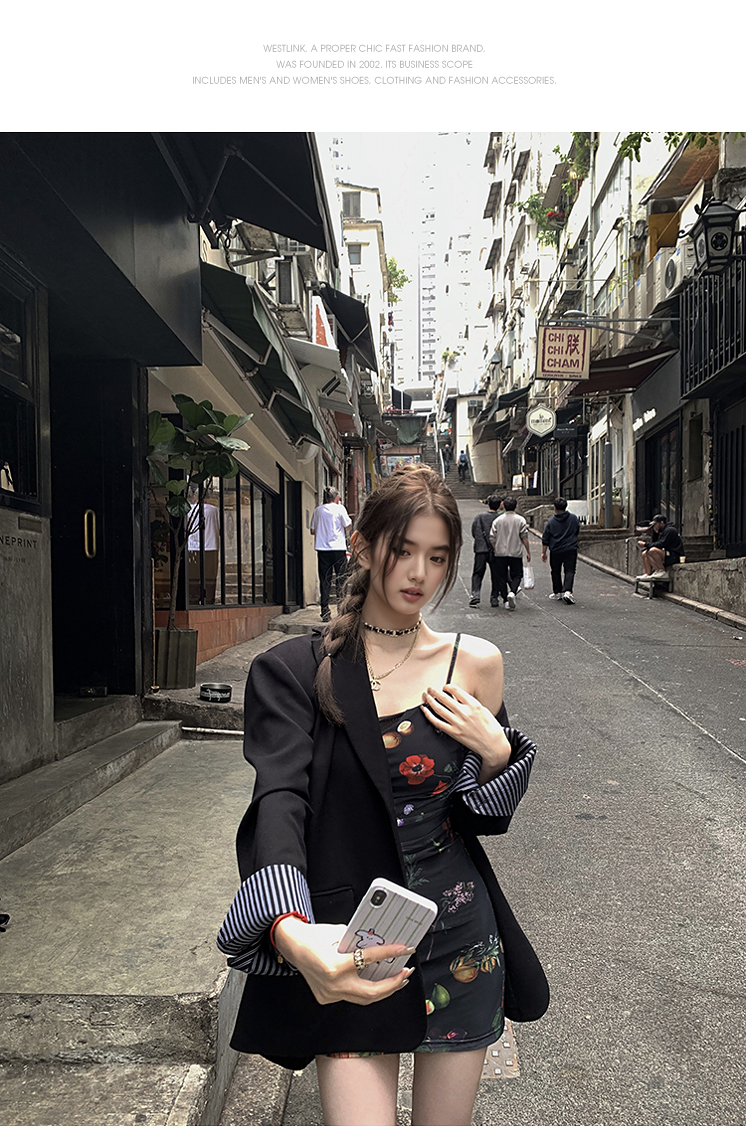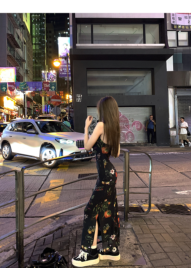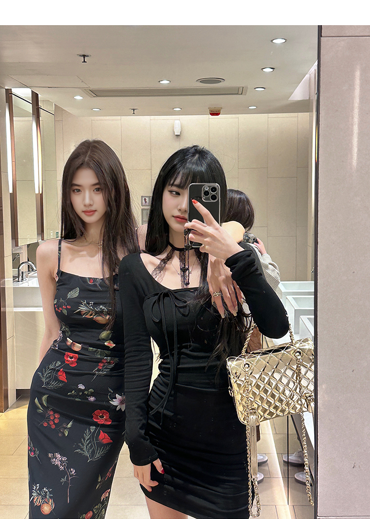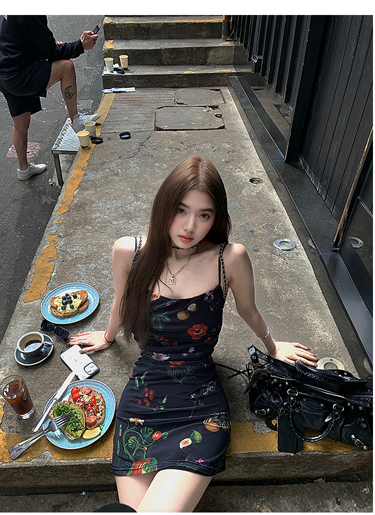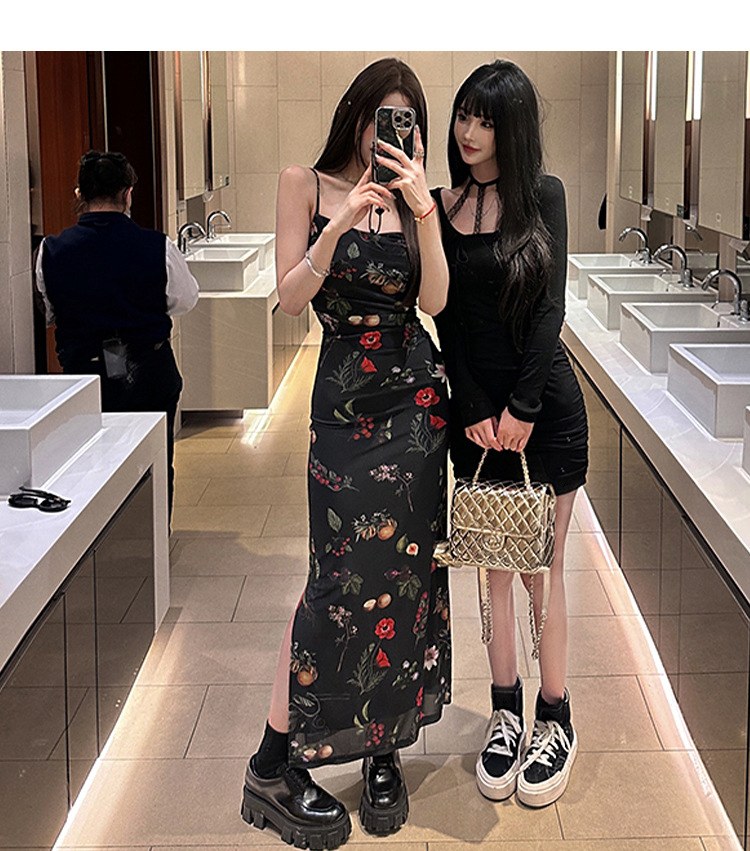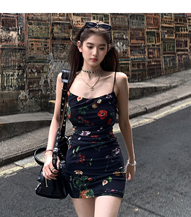 西遇碎花吊带连衣裙女夏季新款黑色法式收腰旅游度假风裙子SS150339/SS150340
