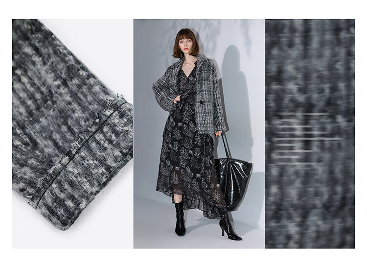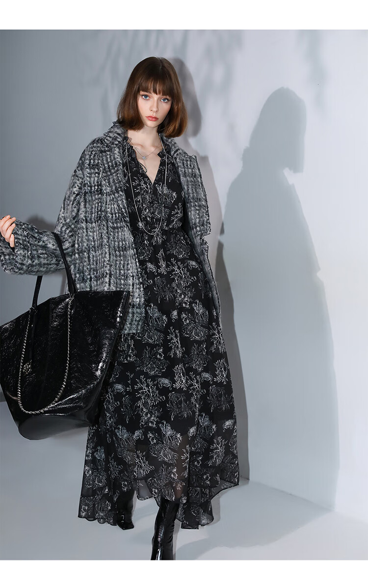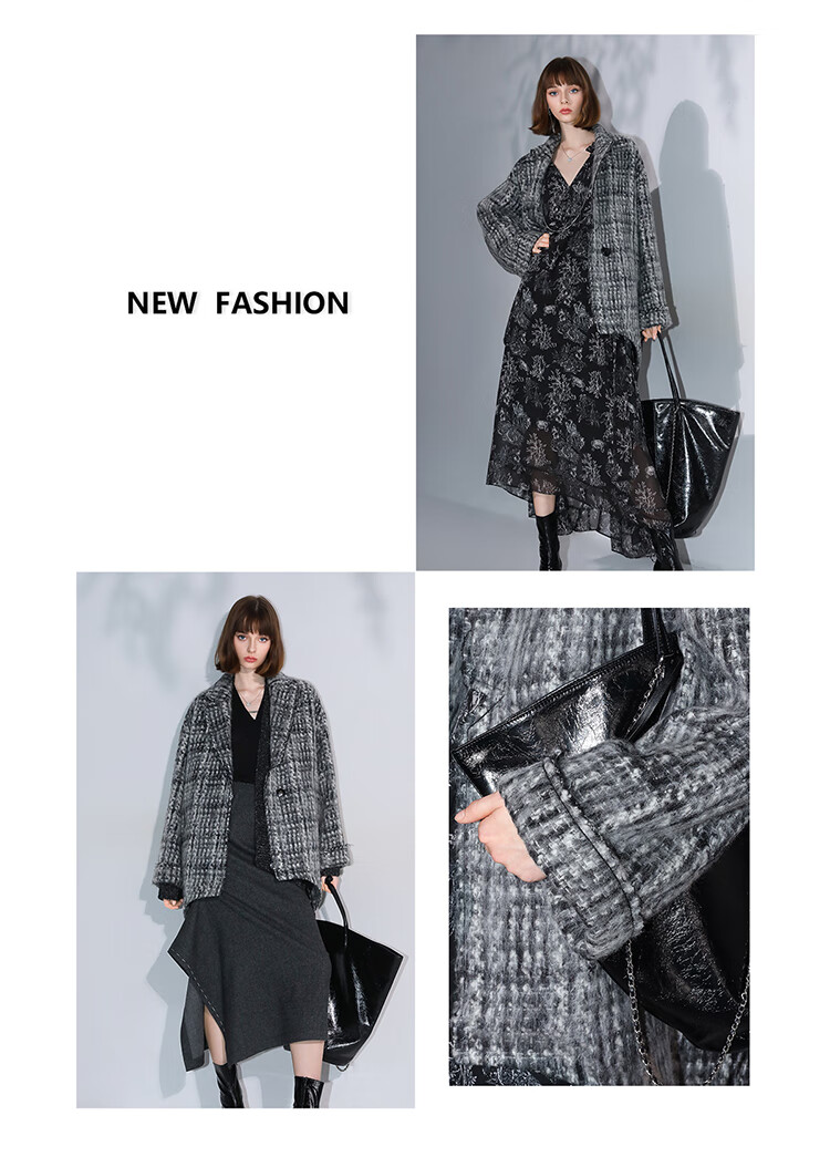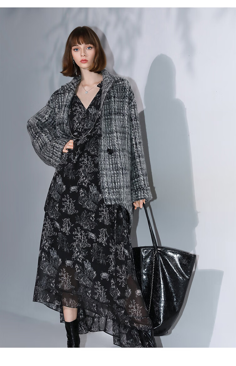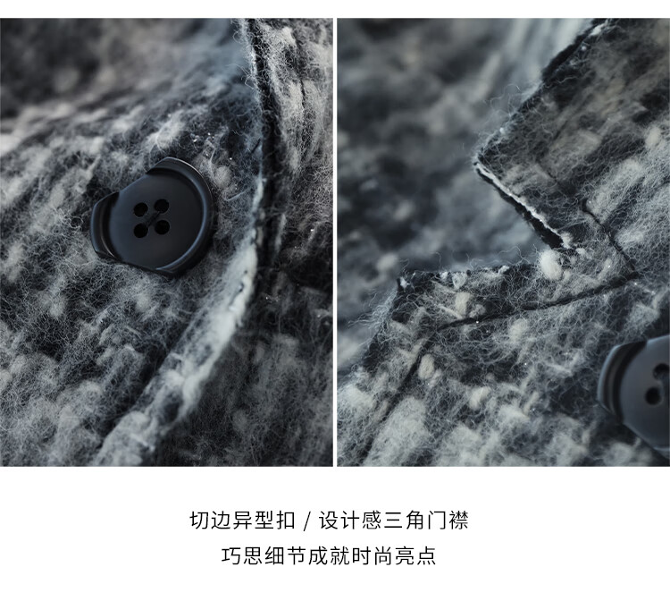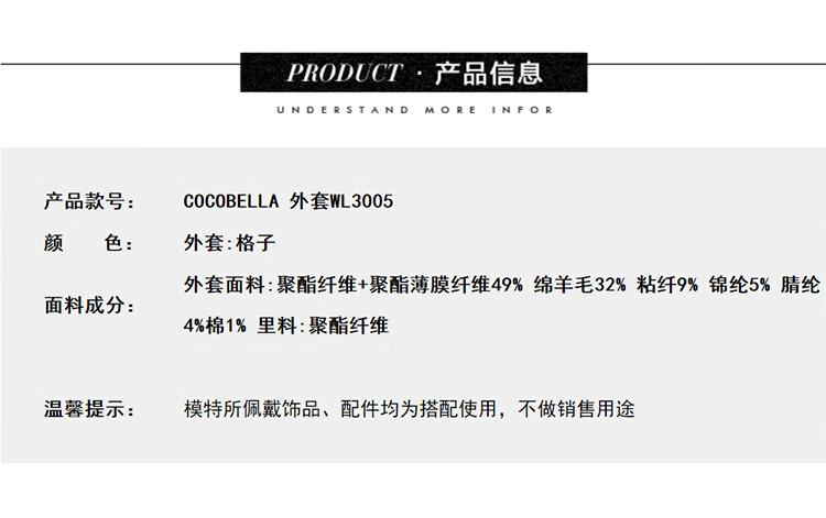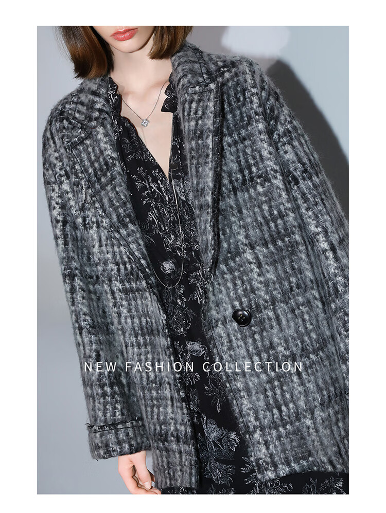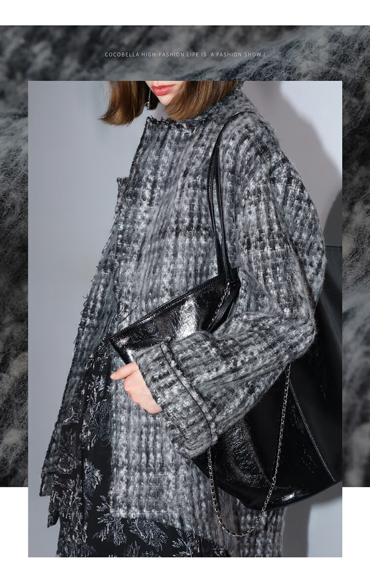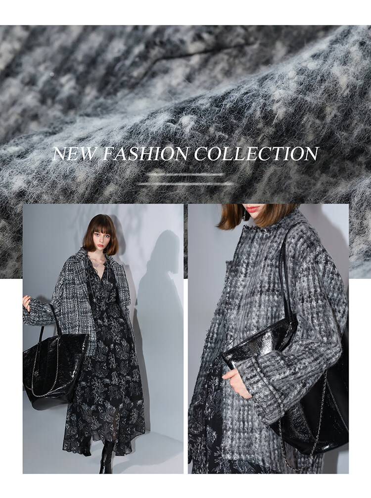 COCOBELLA[MIU系穿搭]毛绒格纹羊毛大衣女秋冬毛呢外套WL3005