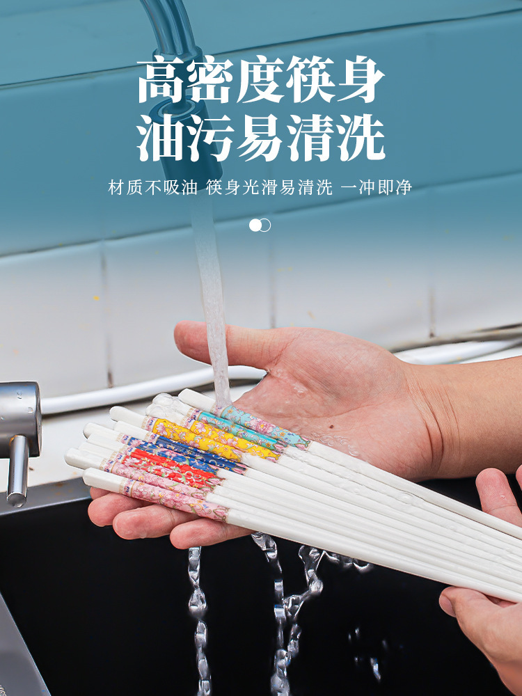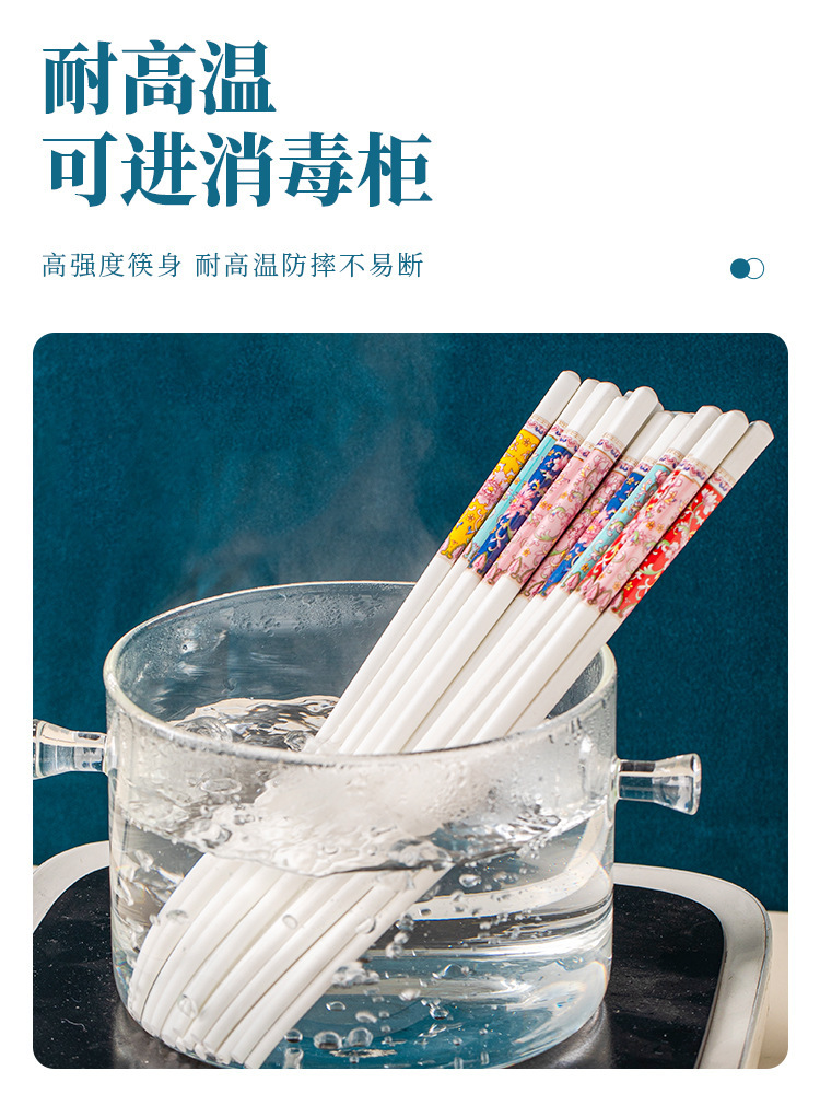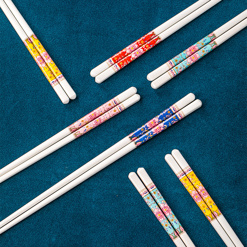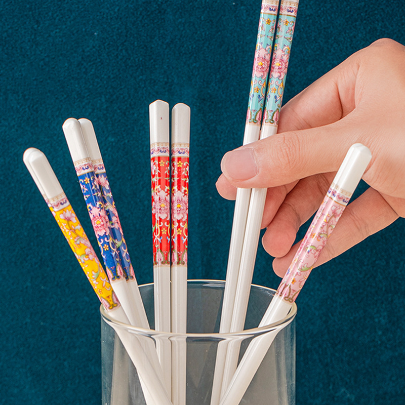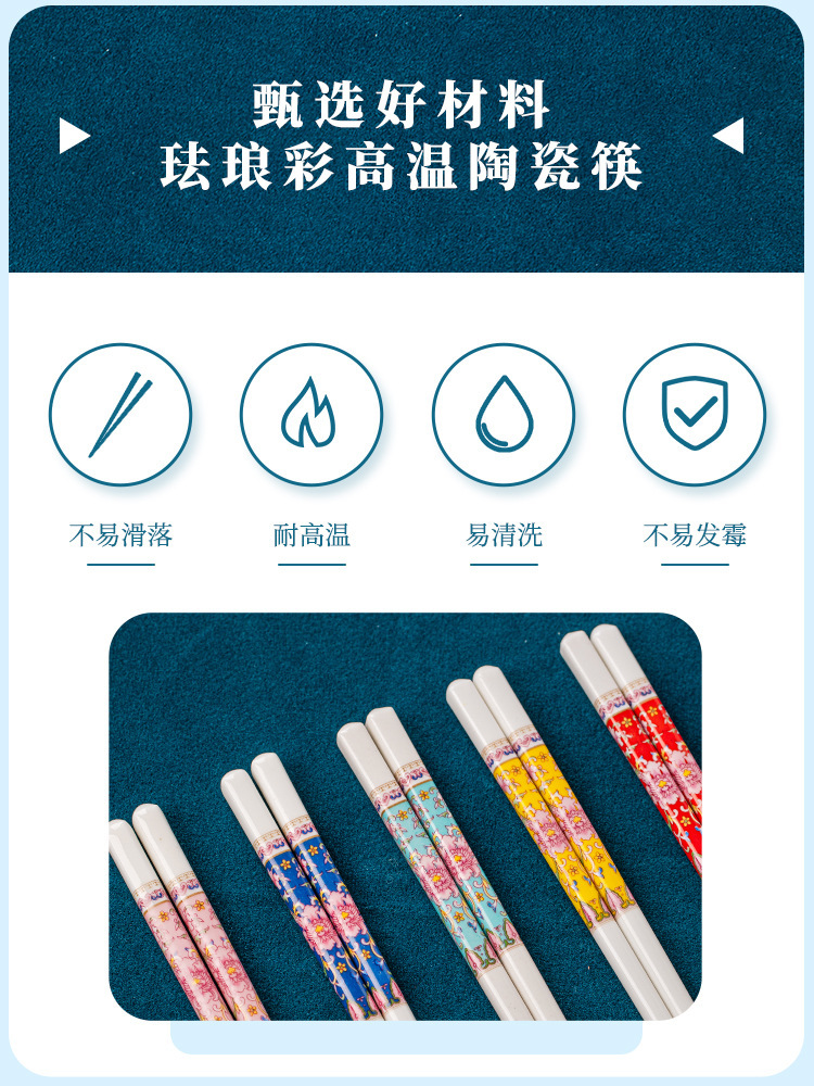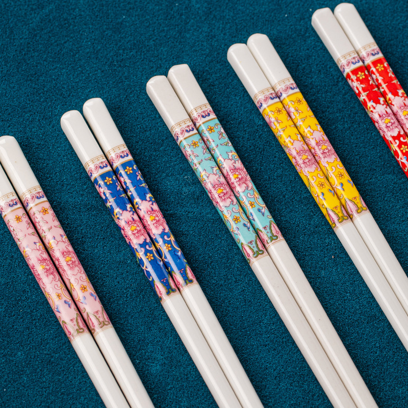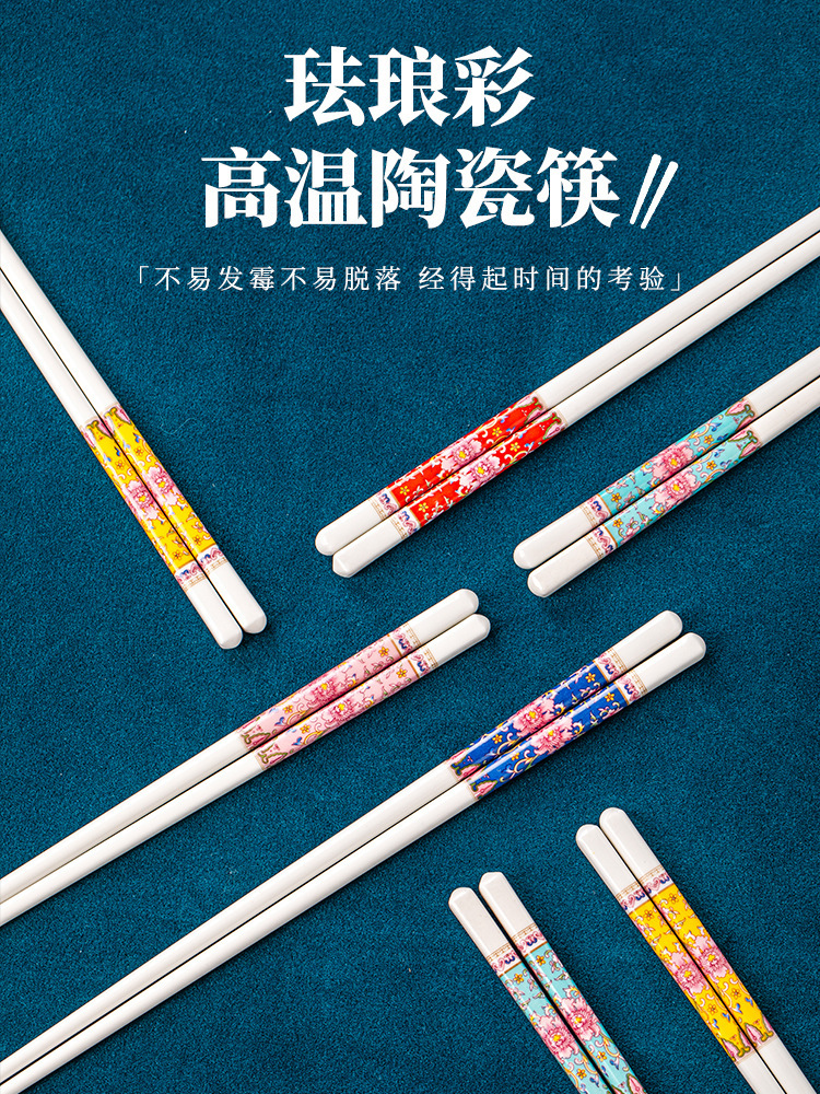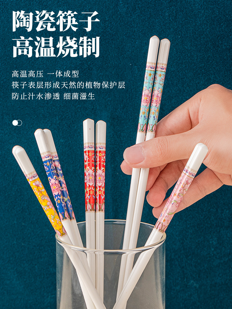 【 珐琅彩 高温抗菌防霉陶瓷筷子】 景德镇家用陶瓷筷 高奢抗菌防霉防摔防滑筷 油炸耐高温陶瓷筷子
