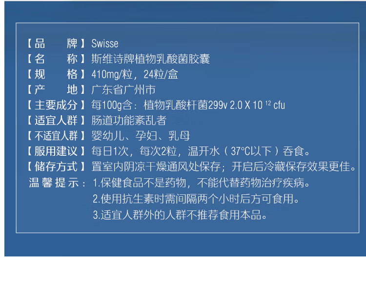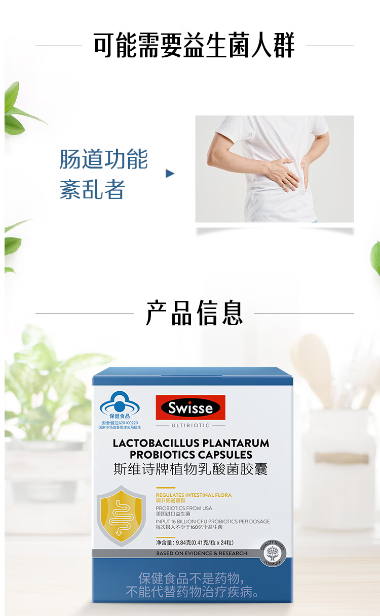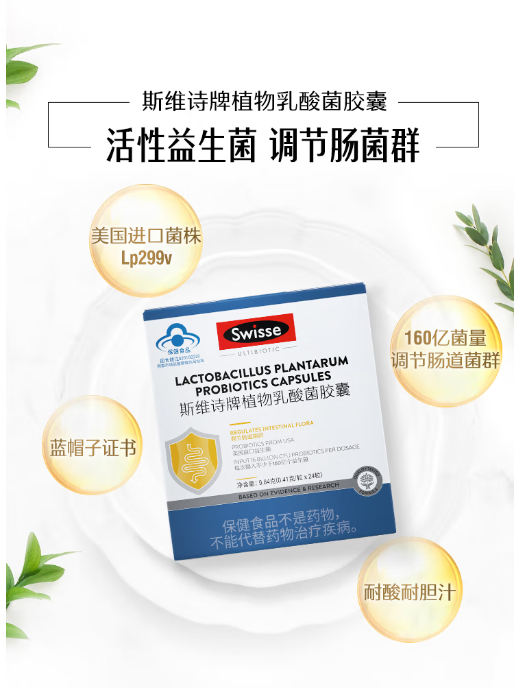 Swisse斯维诗牌 植物乳酸菌胶囊 0.41g*24粒 1盒