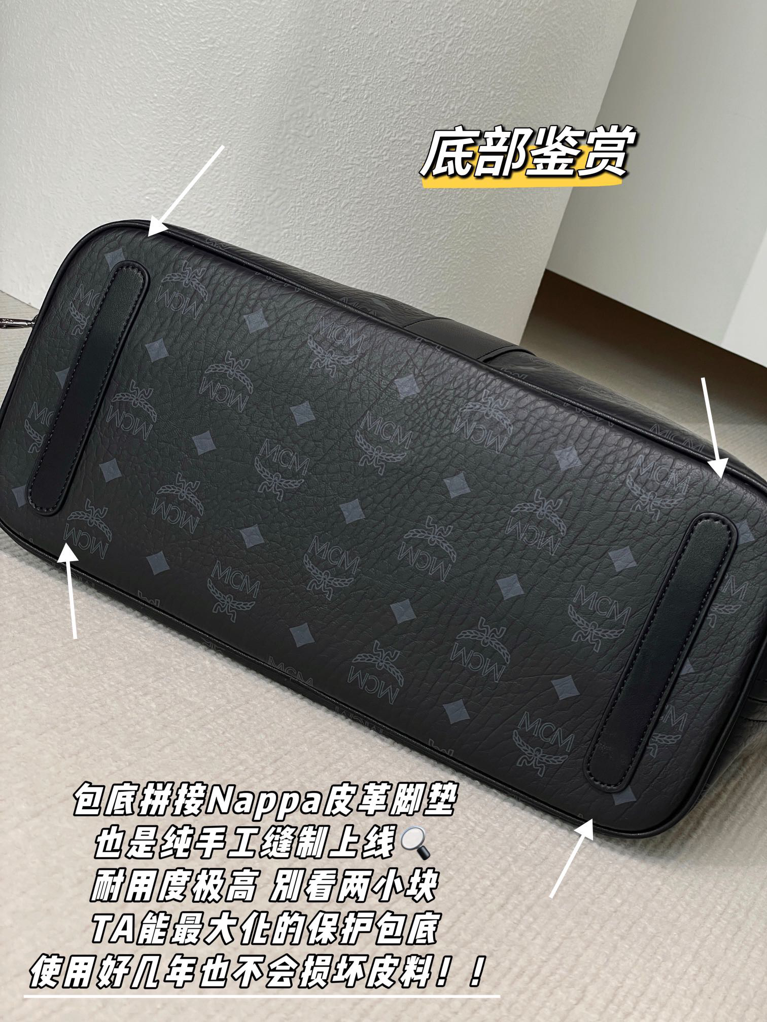 手拎、底部、正面、包边等处采用原厂Nappa小牛皮革拼接,确保环保♻️无害的同时兼顾美观、实用性,缝合处皆采用多重压线,紧实抗造