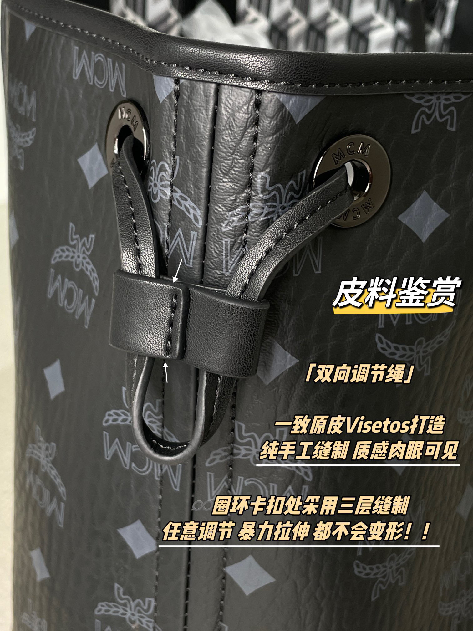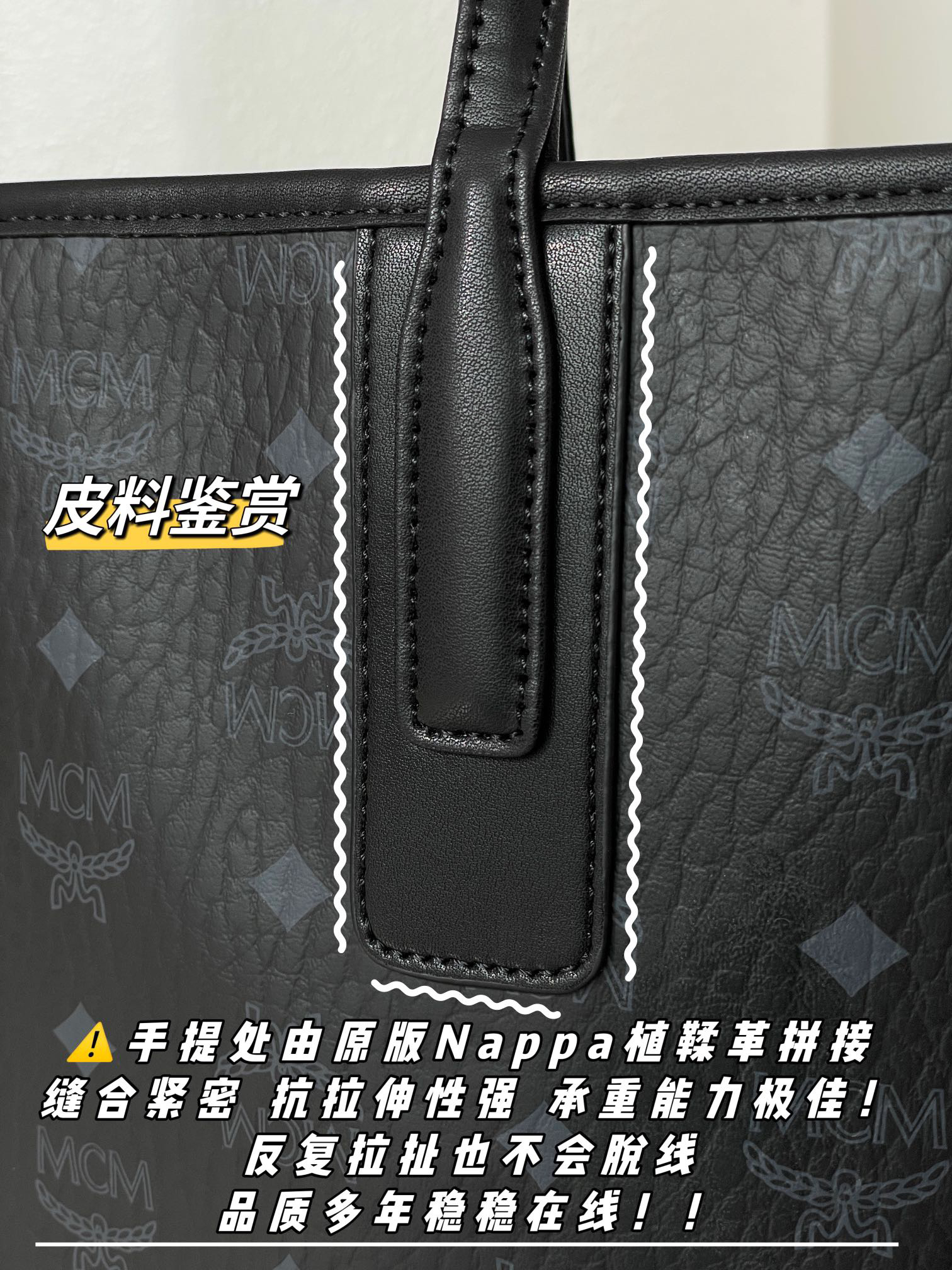 尤其是手提与包身拼接处,双重工整走线,一眼牢靠,暴力拉拽也不会脱线,承重能力稳稳在线!!!👍