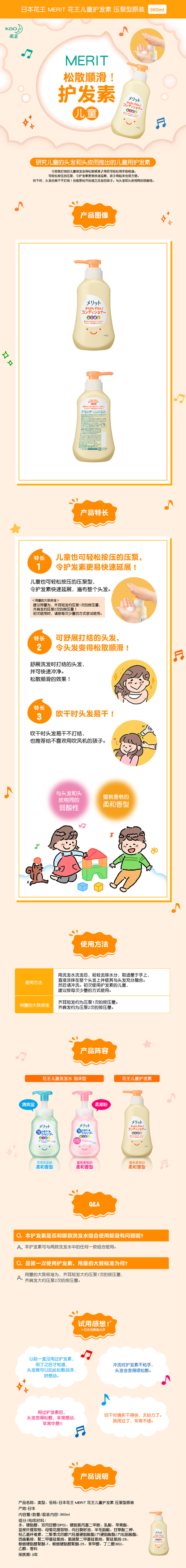 花王 新版水蜜桃味儿童护发素360ml