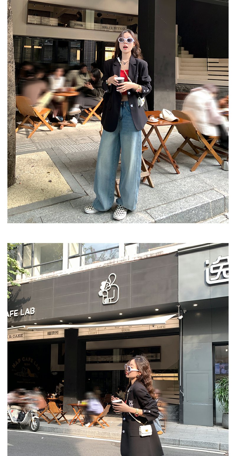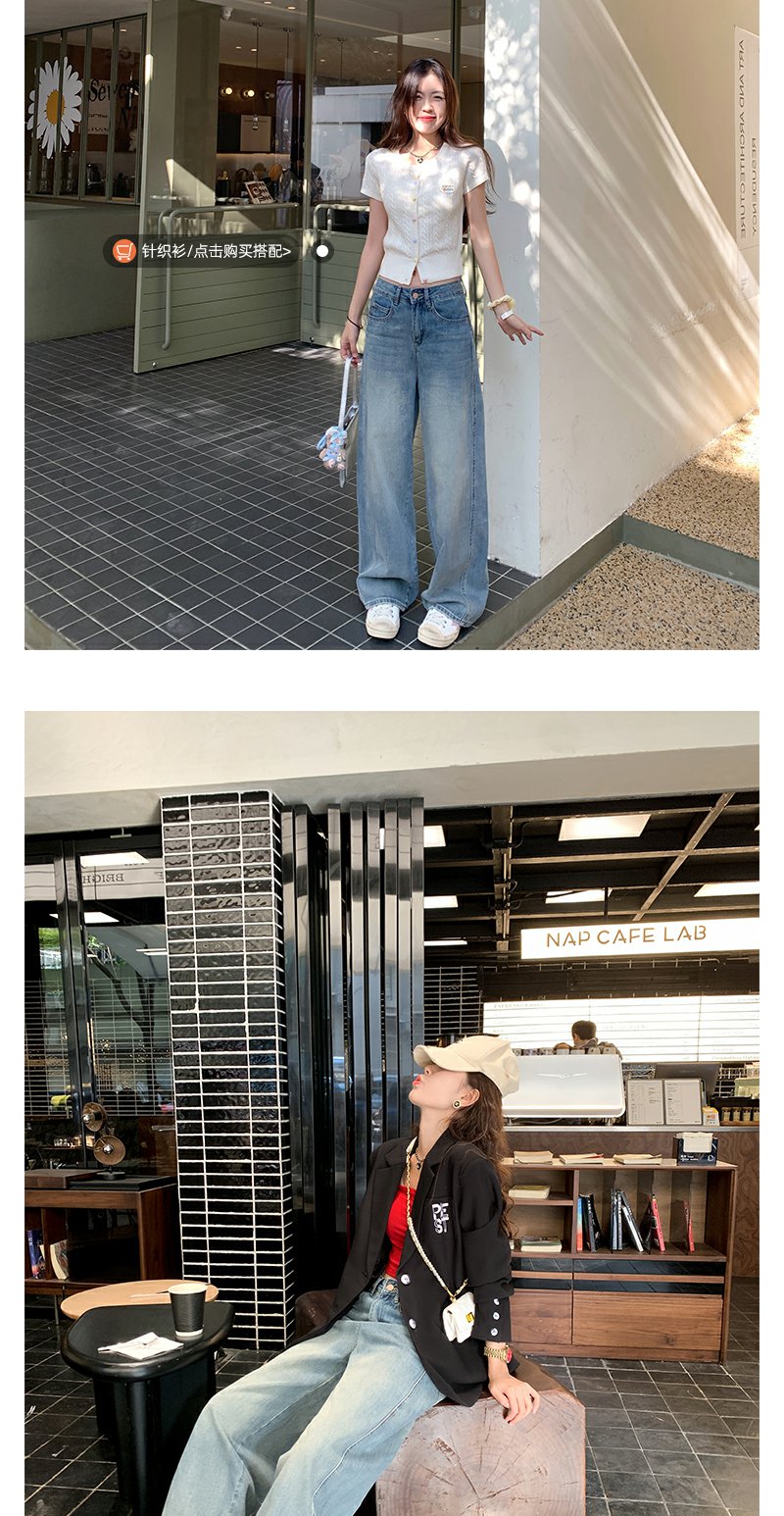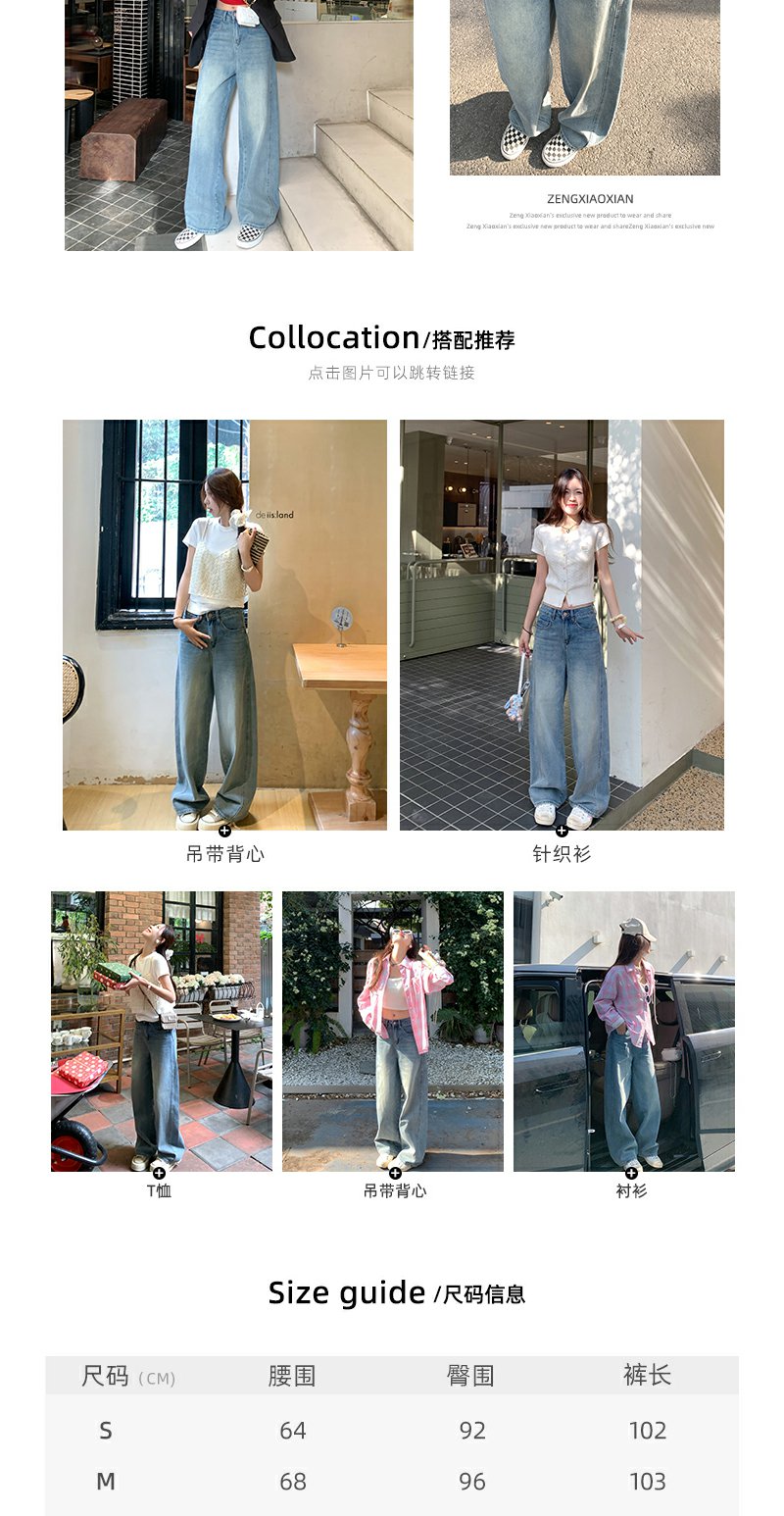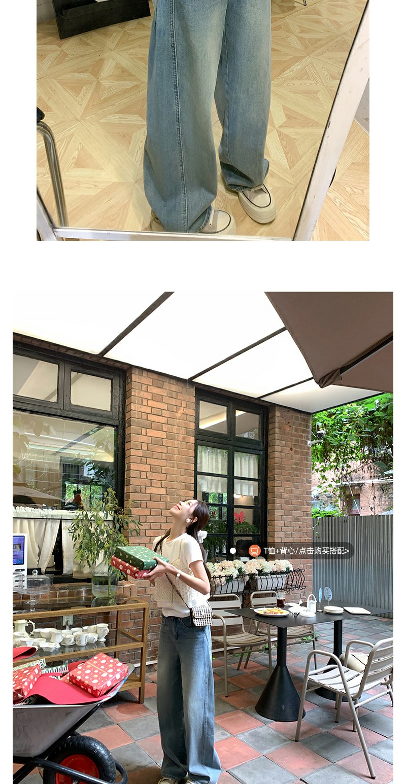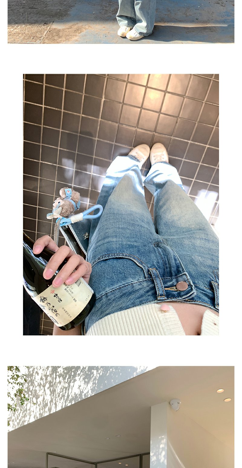 <曾小咸推荐>休闲百搭高腰显瘦弯刀牛仔裤