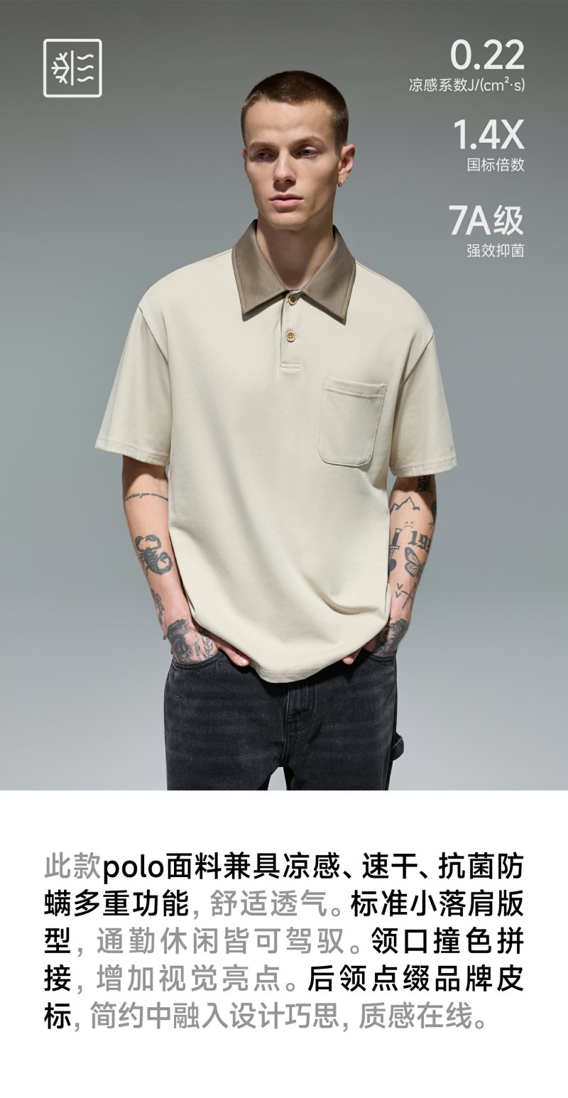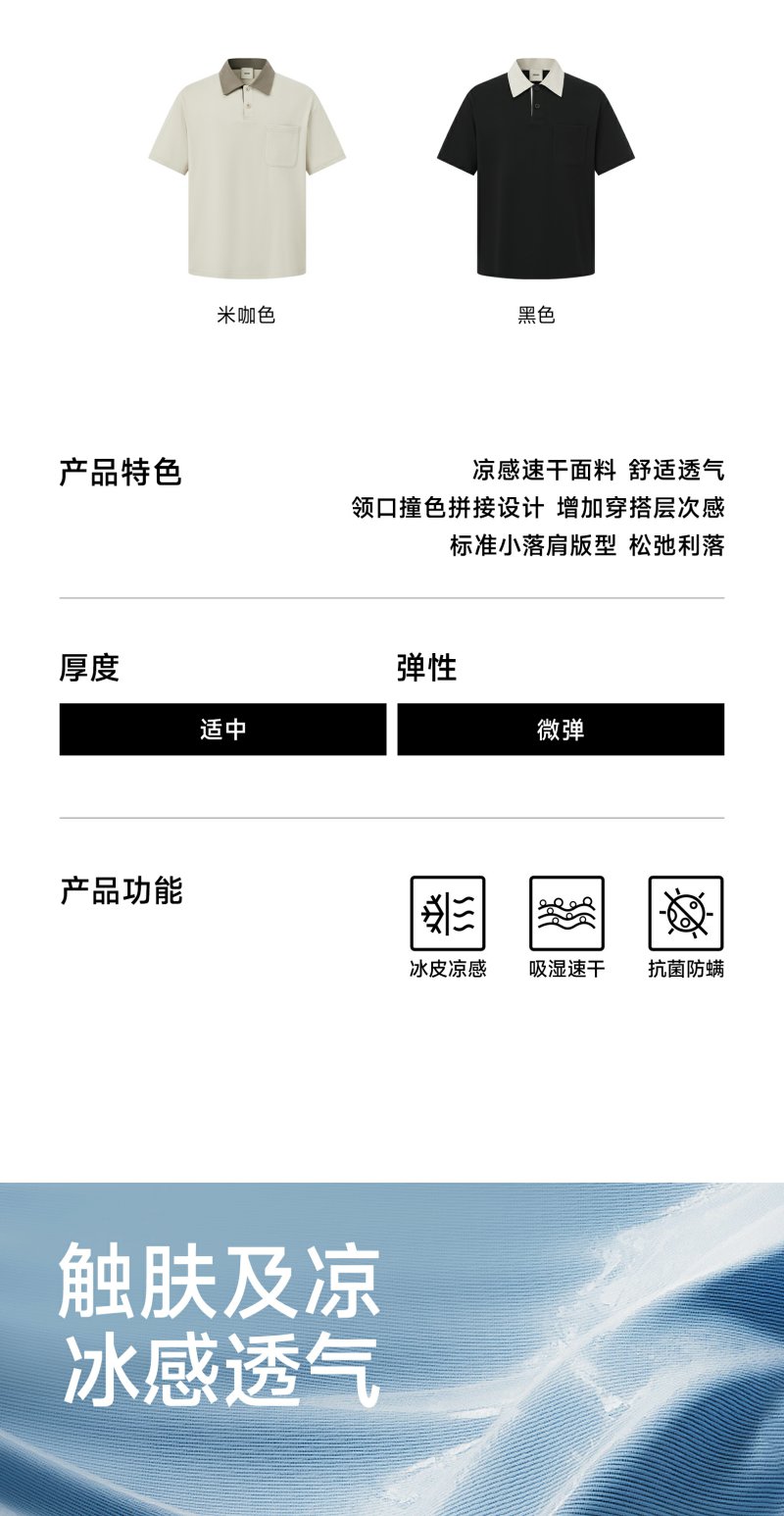 【凉感】CHINISM赤尘 撞色拼接polo衫男2025夏季抗菌速干短袖上衣