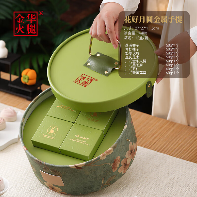 金华火腿中秋月饼礼盒中秋送礼 花好月圆金属手提