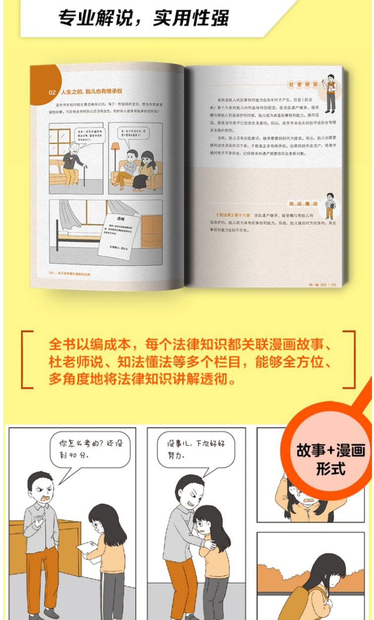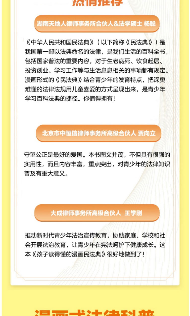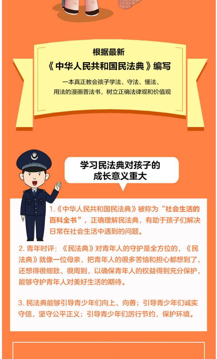孩子读得懂的漫画民法典 初中生小学生儿童普法漫画书家庭篇校园篇道德与法治把民法典讲成漫画故事社会生活的百科全书法律启蒙书