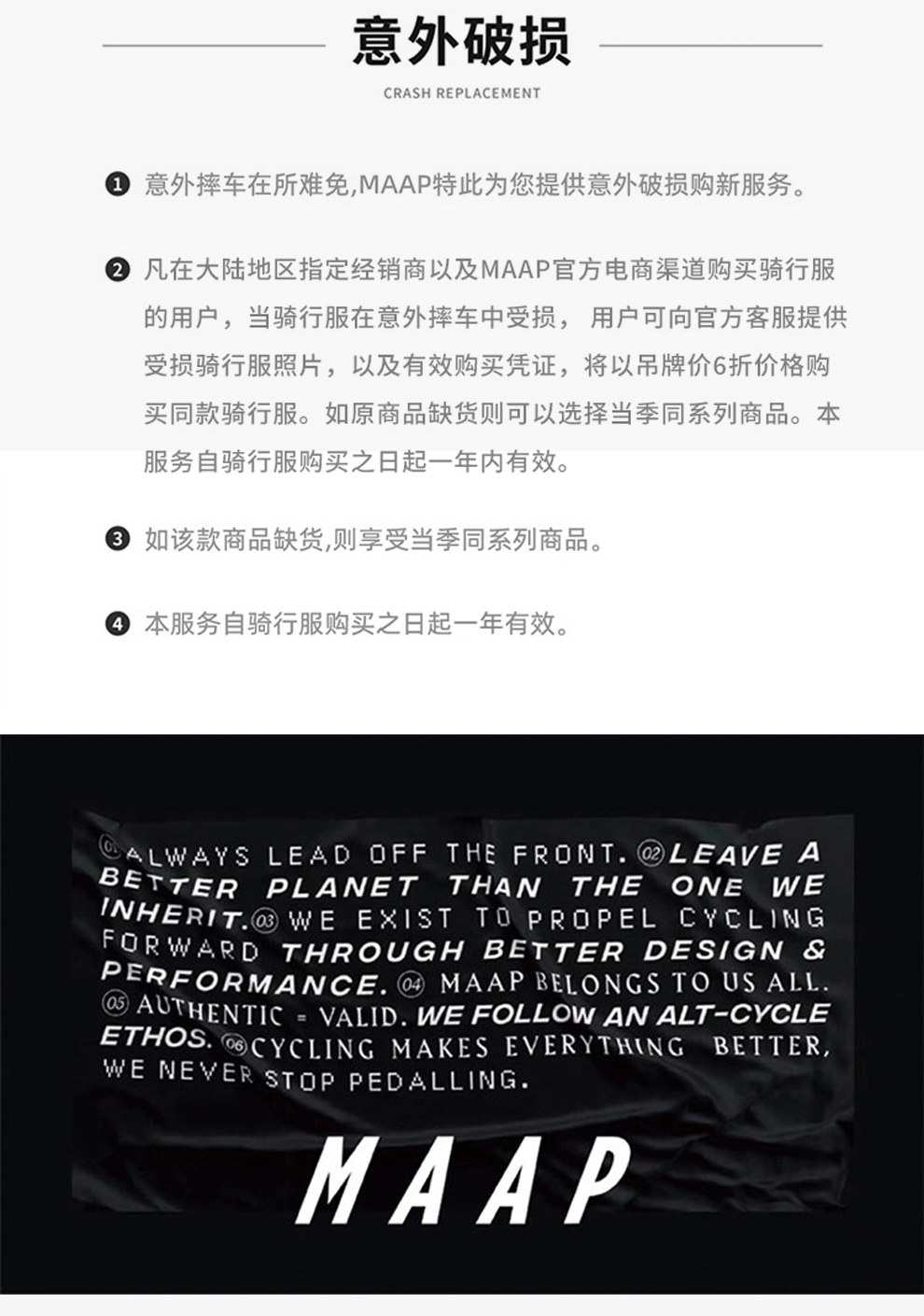 - MAAP作为澳洲功能性骑行服,其出色的时尚设计元素为骑行生活增添色彩。MAAP在为专业车手提升性能表现方面也毫不妥协。