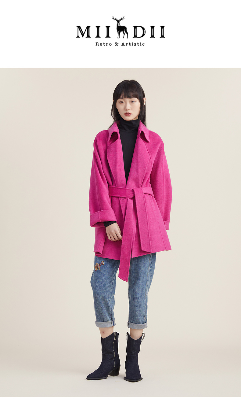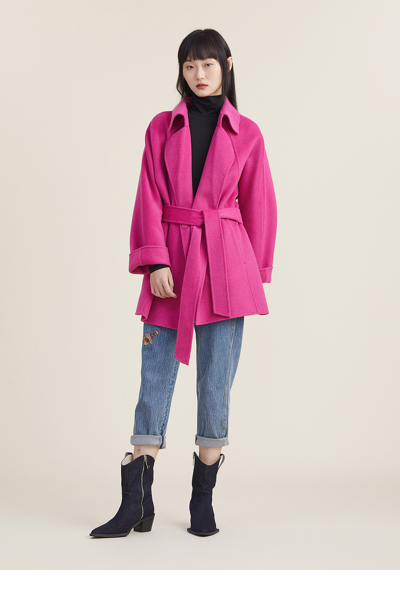 【高端系列】谜底2022秋新款时尚西装领宽松毛呢大衣女223GD1131