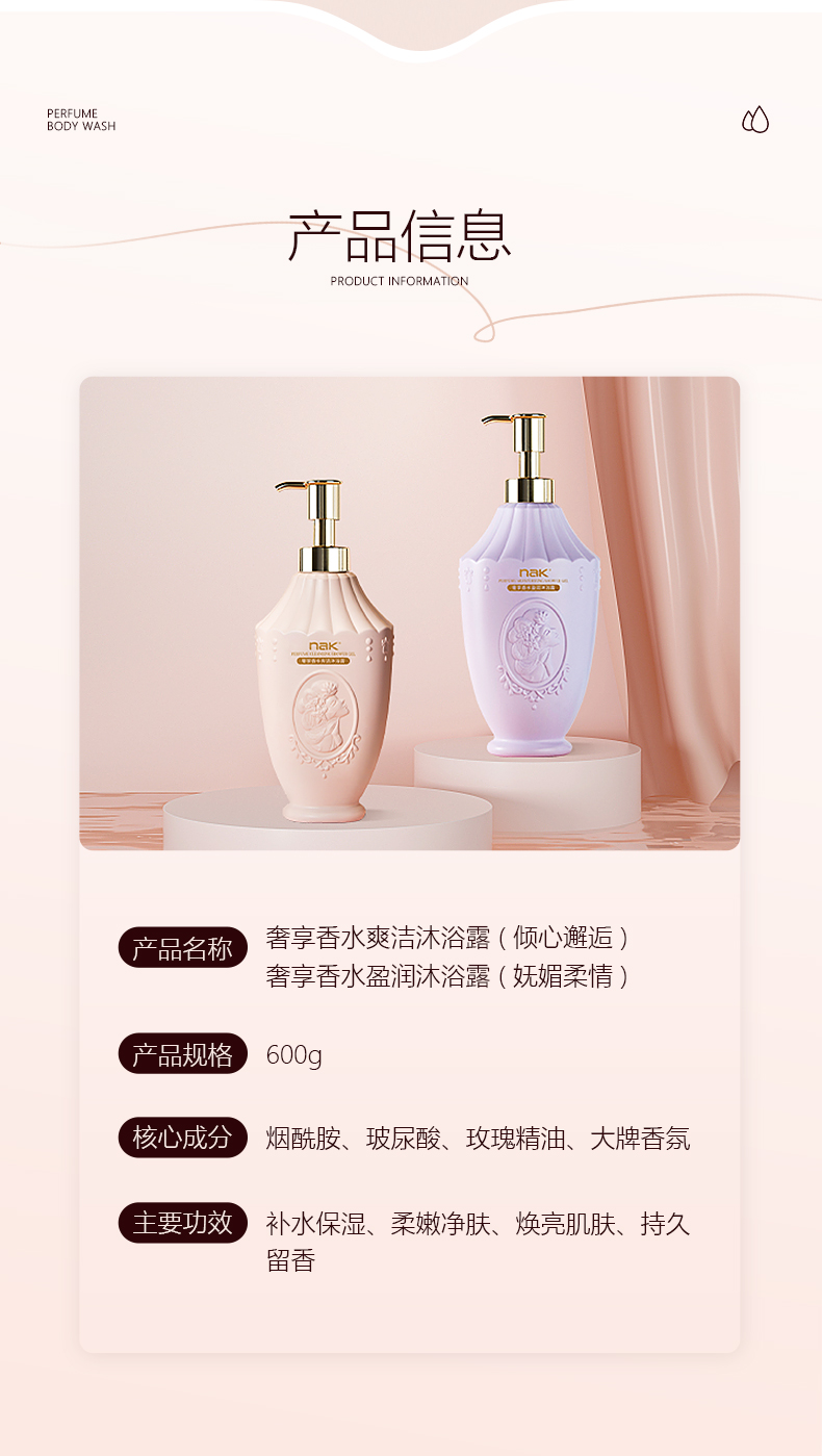 优选丨胖东来热卖 Nak沐浴露洗发水600g*2瓶 倾心邂逅/妩媚浓情 奢享茶树精油盈润去屑洗发乳液