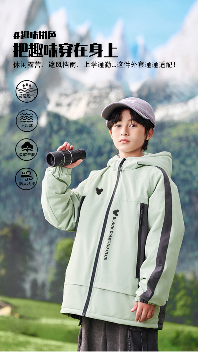 优选丨Disney/迪士尼男女童舒适户外搭子软壳夹棉防风外套TA53ZW201