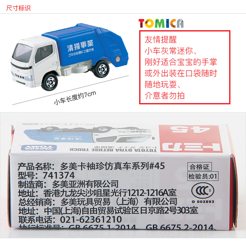 多美卡 袖珍仿真车系列#45 垃圾车模型 45号丰田清洁车