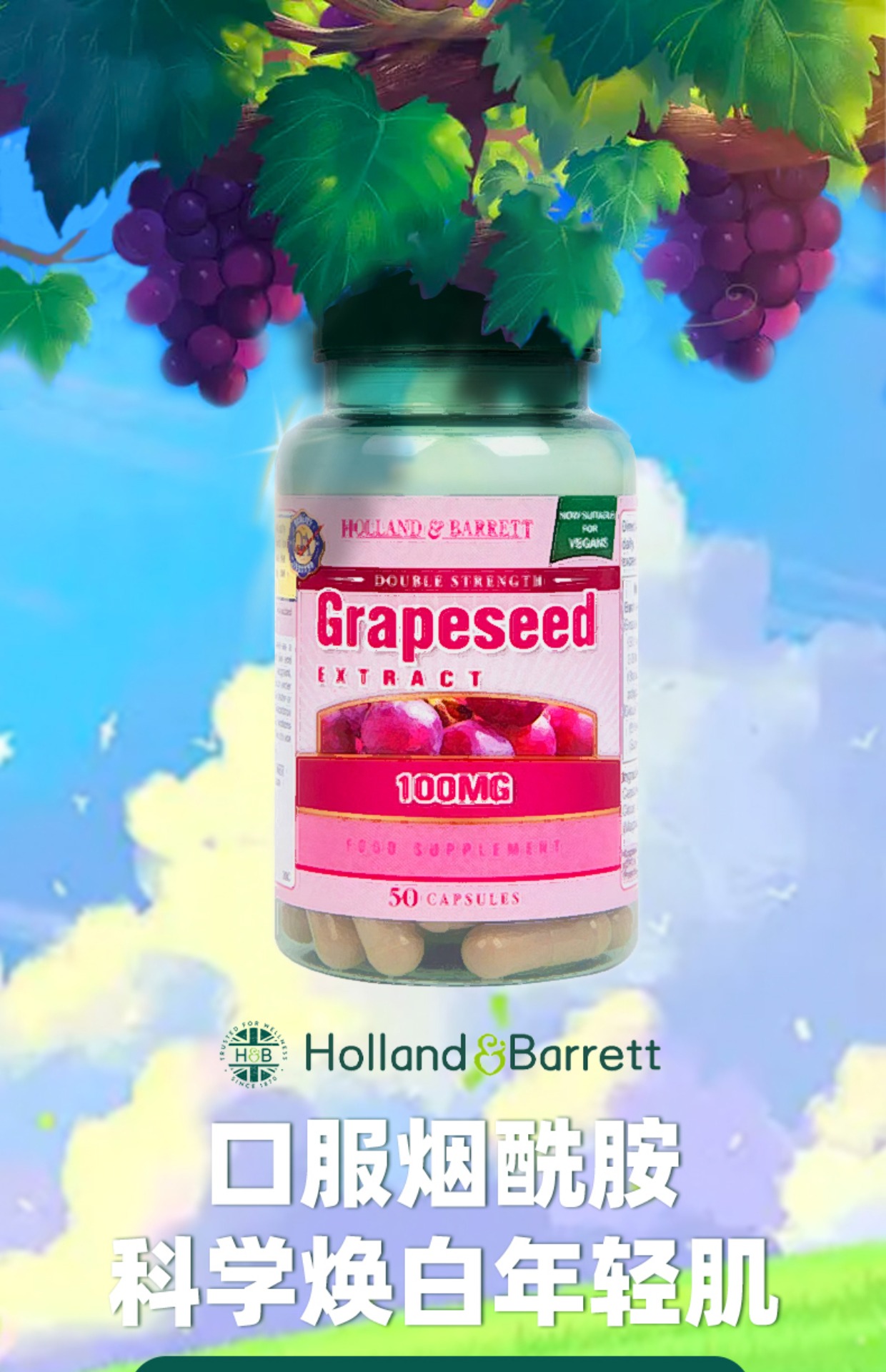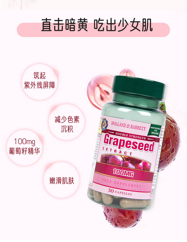【保税仓】荷柏瑞葡萄籽提取物精华胶囊100mg50粒