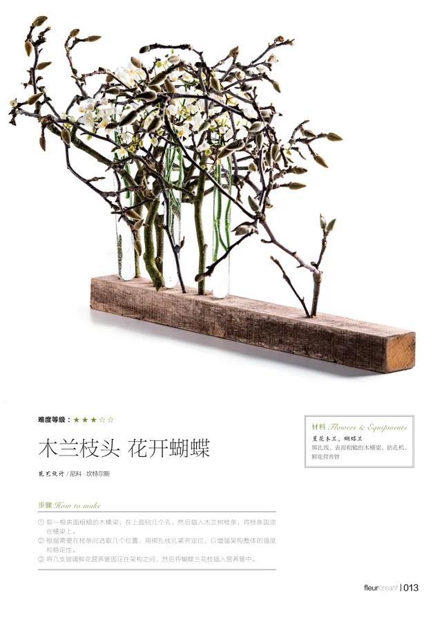 多彩的冬日玫瑰与干枯枝材的鲜明对比