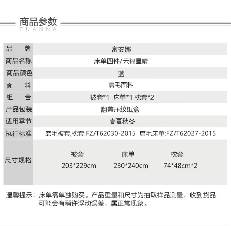 富安娜 磨毛四件套-云锦星晴